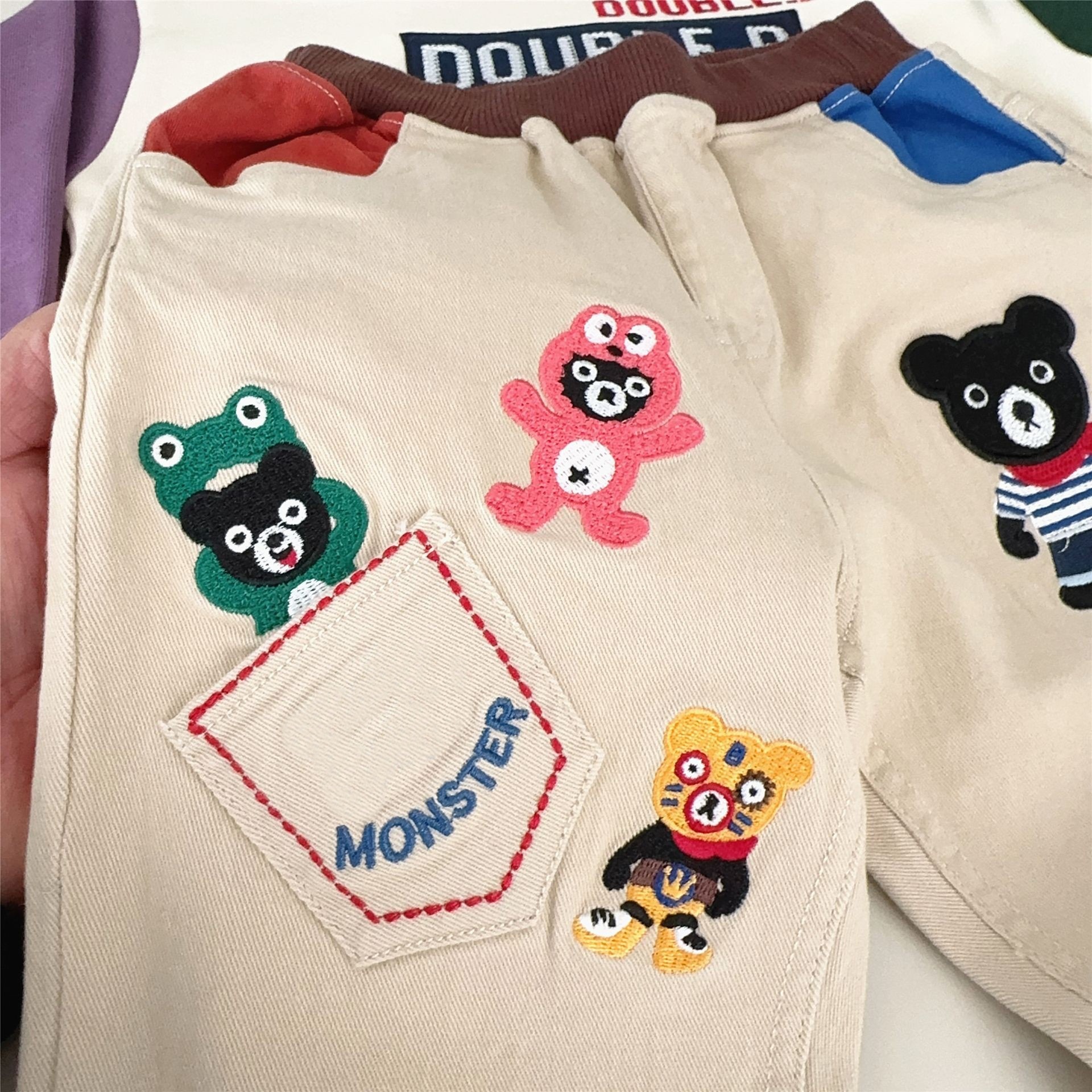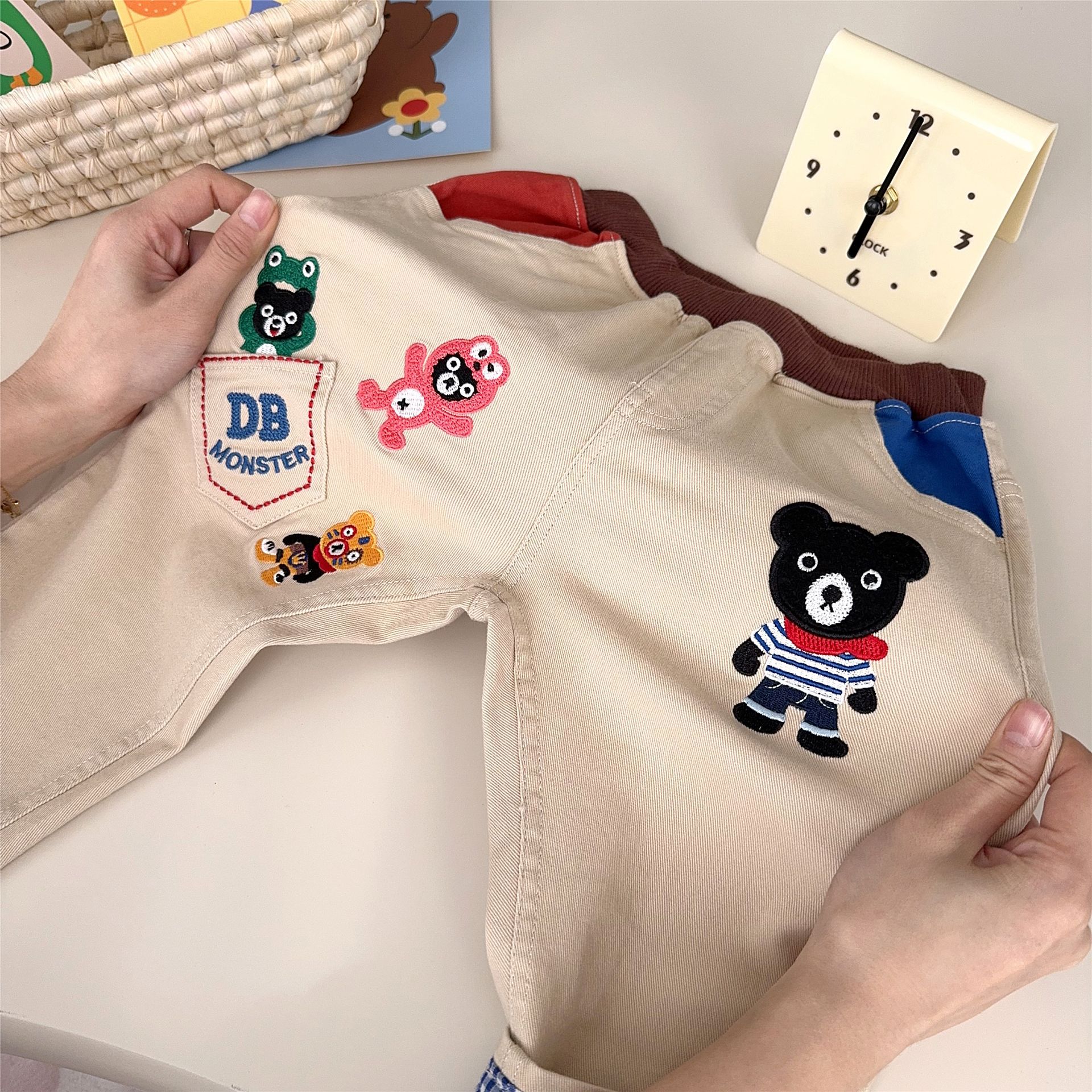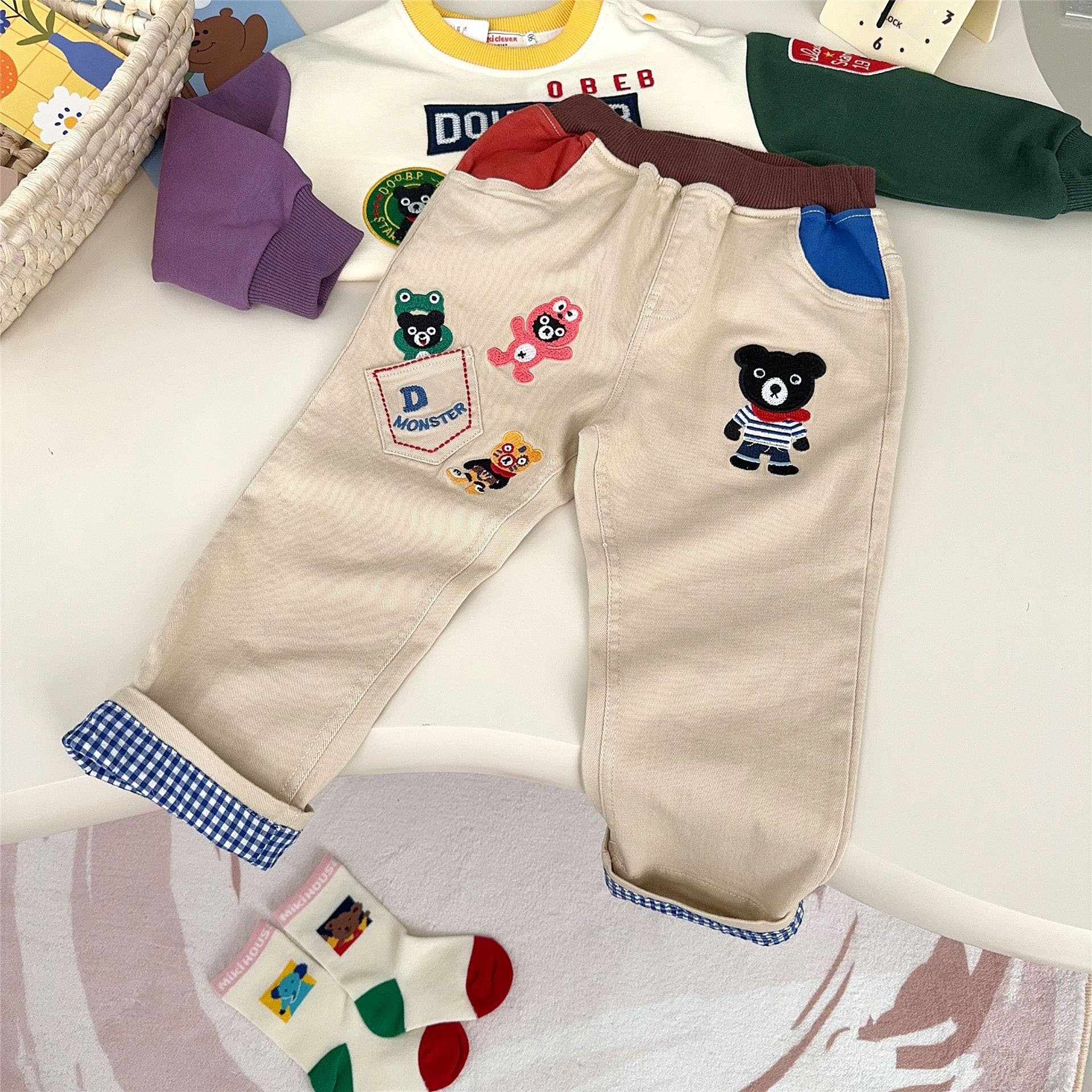 25 Chunxin DB 블랙 베어 일본 소년 포켓 캐주얼 바지 부드럽고 편안한 아기 짠 긴 바지 5025