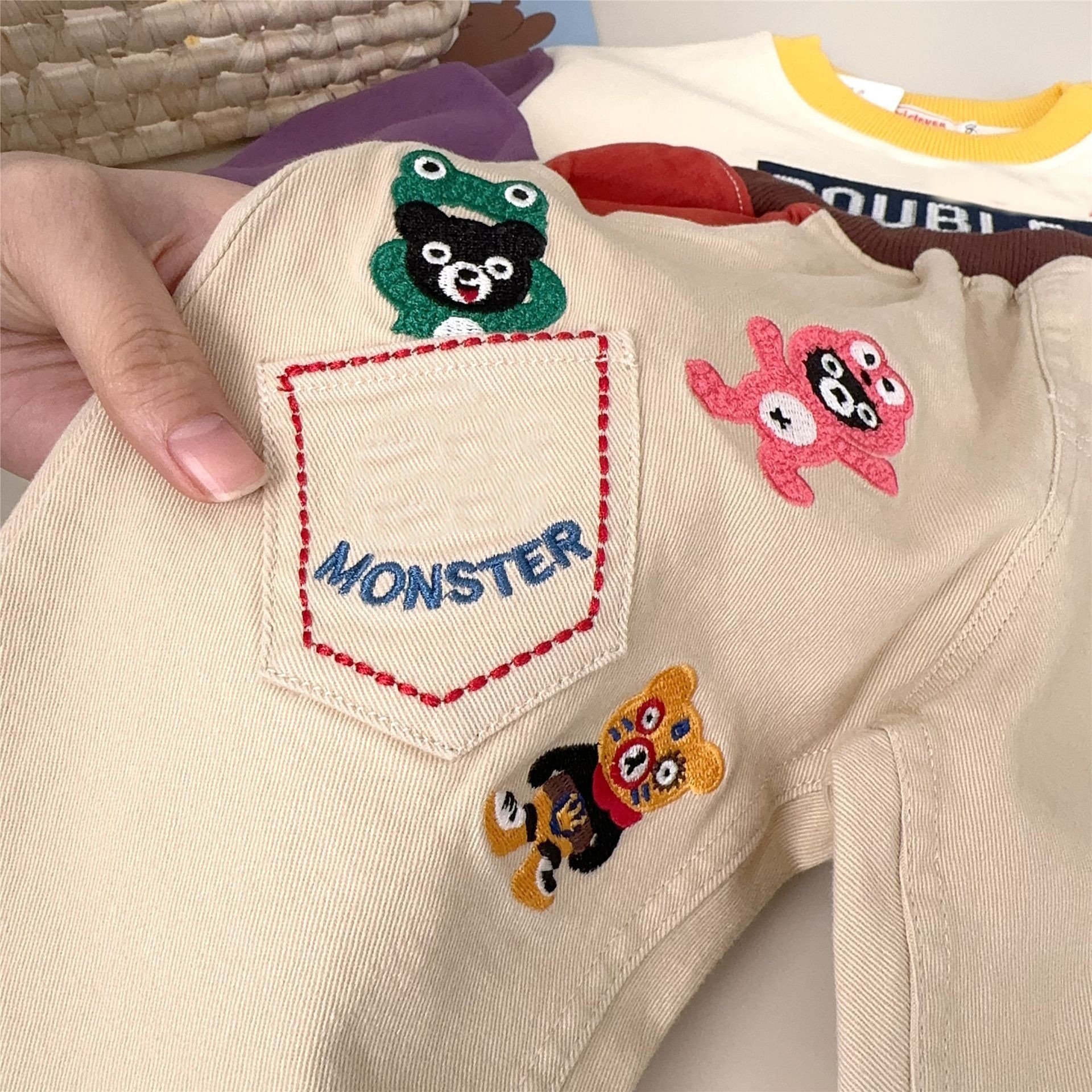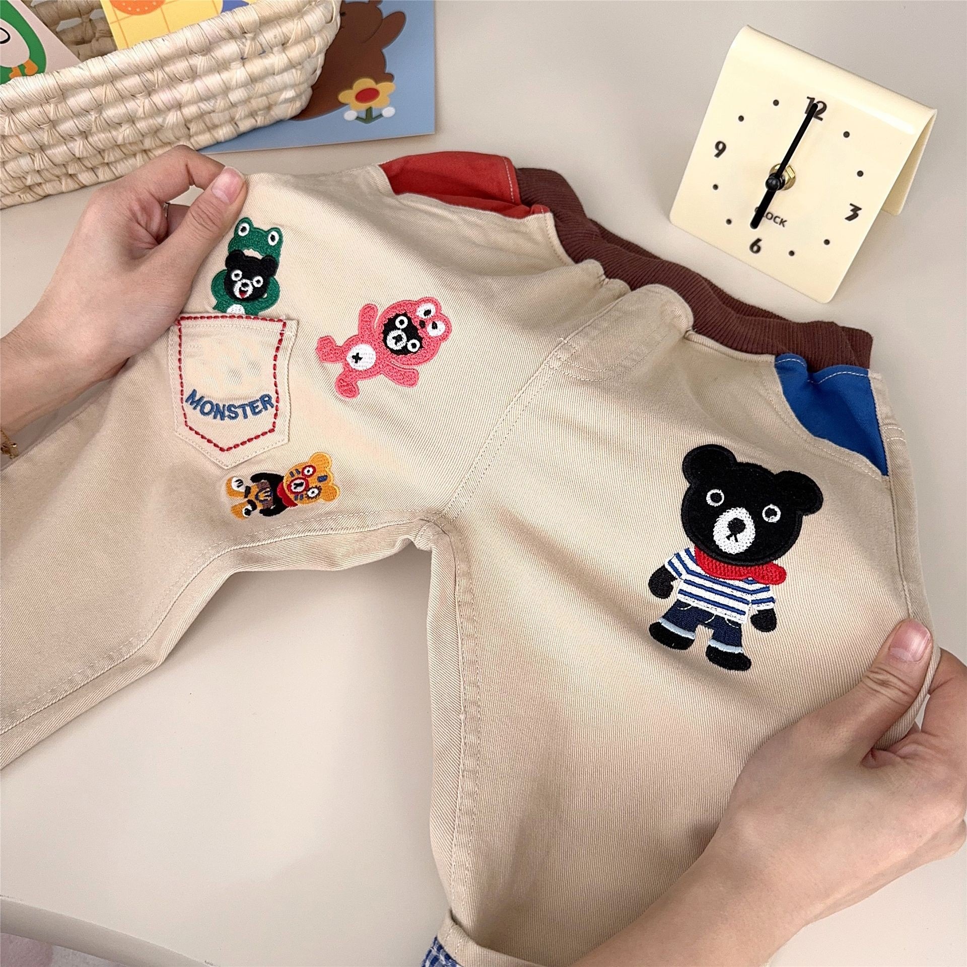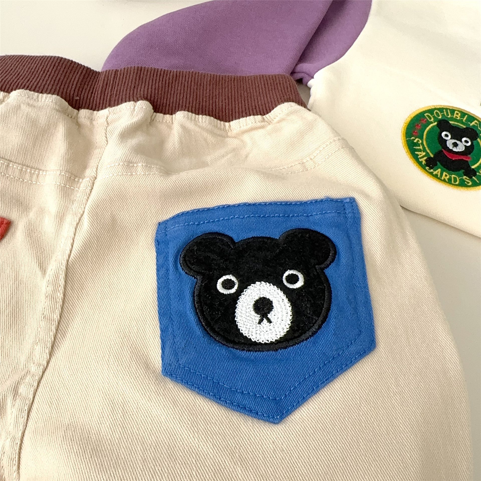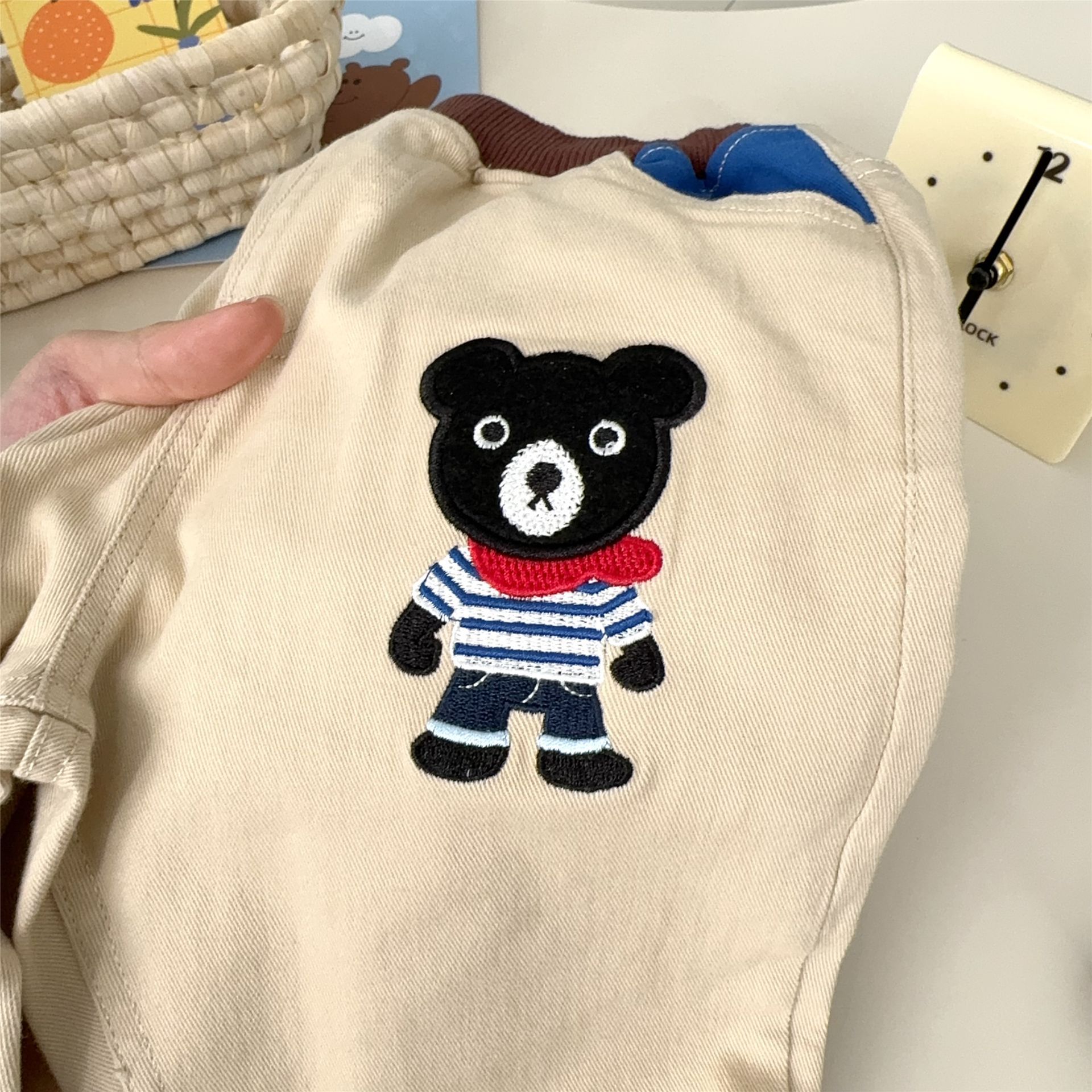 25 Chunxin DB 블랙 베어 일본 소년 포켓 캐주얼 바지 부드럽고 편안한 아기 짠 긴 바지 5025