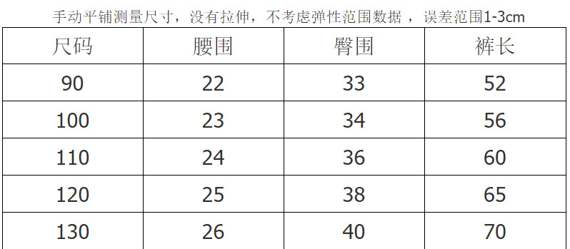 手动平铺测量尺寸,没有拉伸,不考虑弹性范围数据 ,误差范围1-3cm