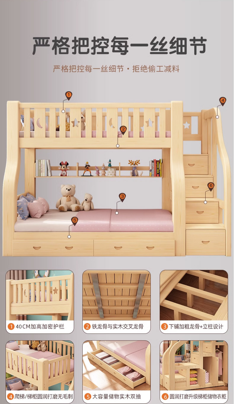 모든 단단한 나무 엄마와 아이 침대 이층 침대 이층 침대 높고 낮은 침대 어머니 침대 공주 침대 저장 침대 어린이 침대스토어 가기