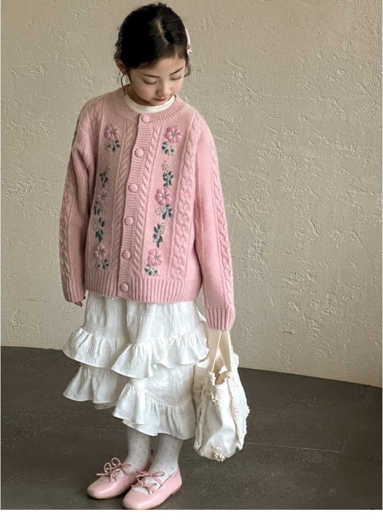 여아 코트 봄 가을 스타일 아동 니트 가디건 스웨터 2026 봄 신상 중대형 아동용 패셔너블하고 스타일리쉬한 상의