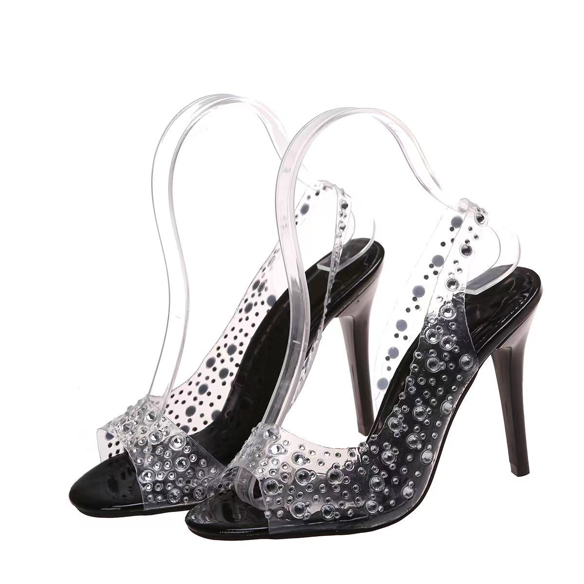 유럽과 미국의 대외 무역 플러스 사이즈 라인스톤 하이힐 오픈 발가락 샌들 여성 국경 간 뾰족한 믹스 크리스탈 피쉬 입 패션 신발스토어 가기