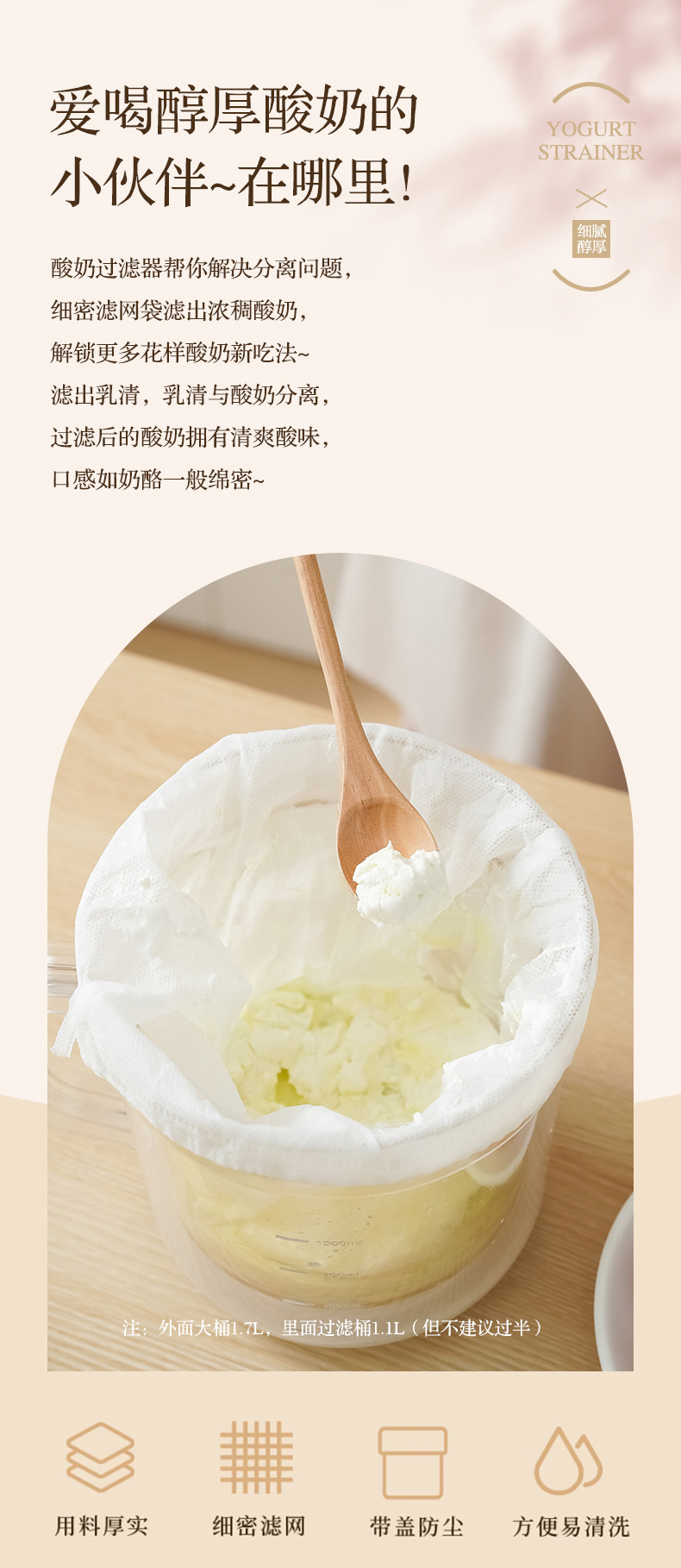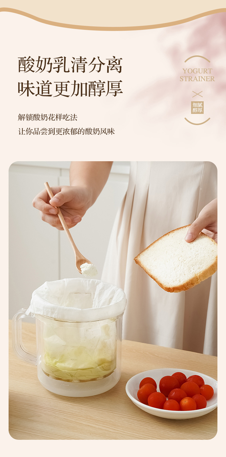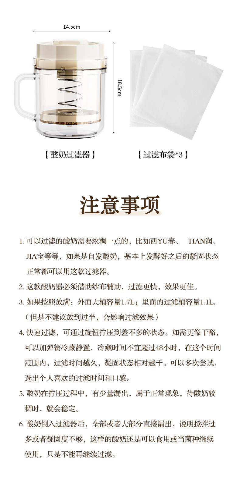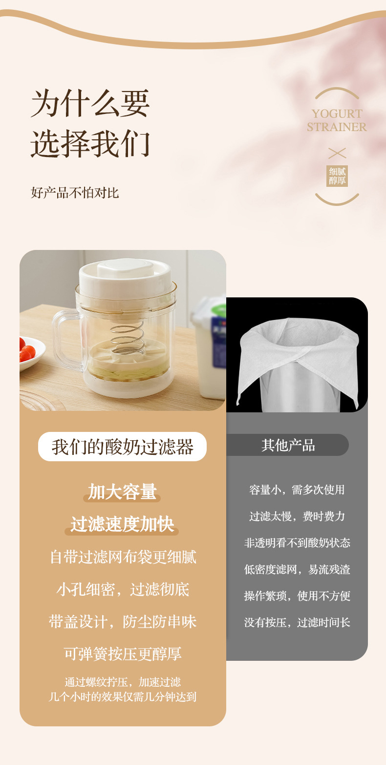 • 商品名称:可拆卸带弹簧透明机身酸奶过滤器 乳清分离酸奶机