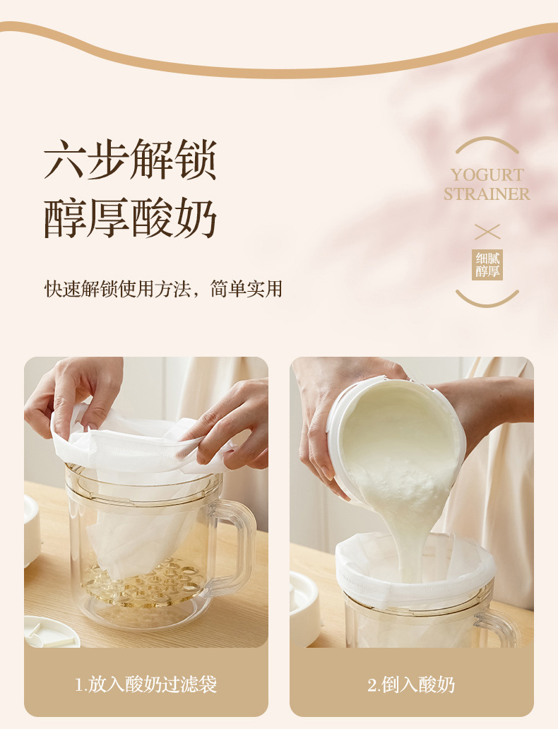 높은 색상 값 분리 가능한 요구르트 분리기 봄 투명 바디 유청 분리기 홈 수제 요구르트