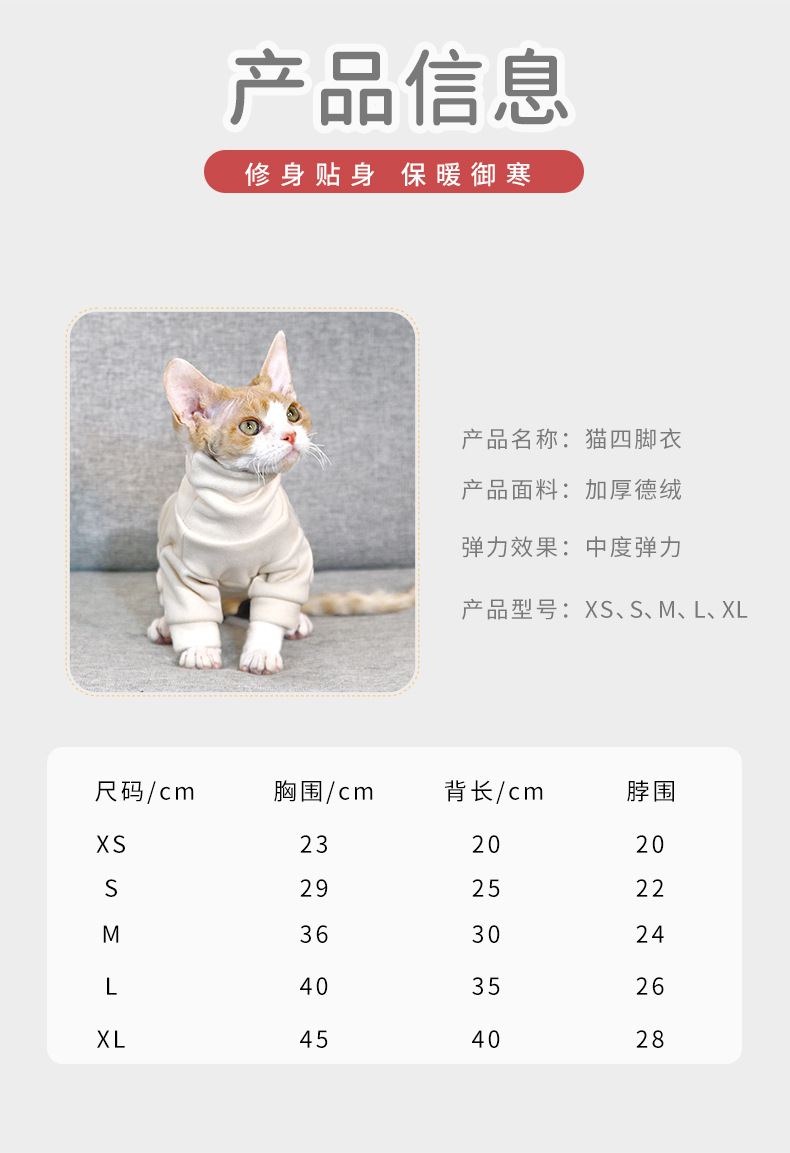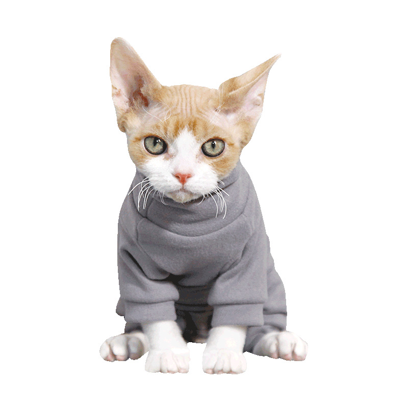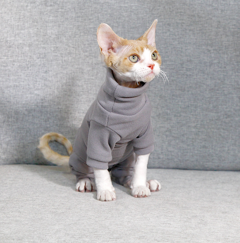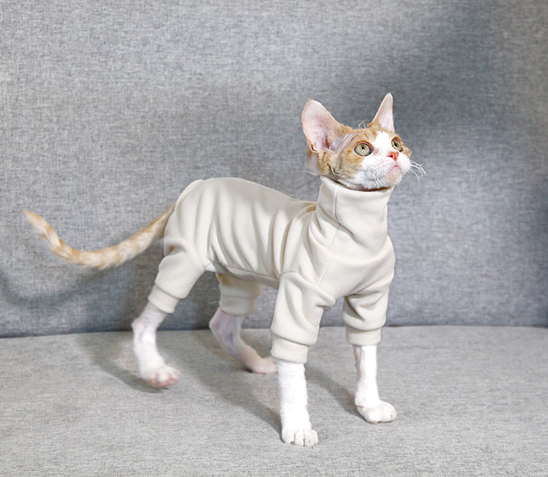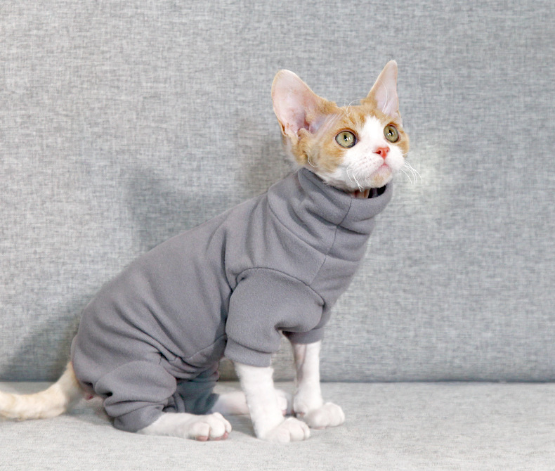 2025 따뜻한 머리없는 고양이 Derong 독일 애완 동물 고양이 옷 간단한 캐주얼 베이스 긴팔 네발 다리 배꼽 보호 옷
