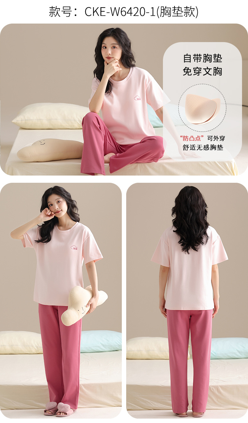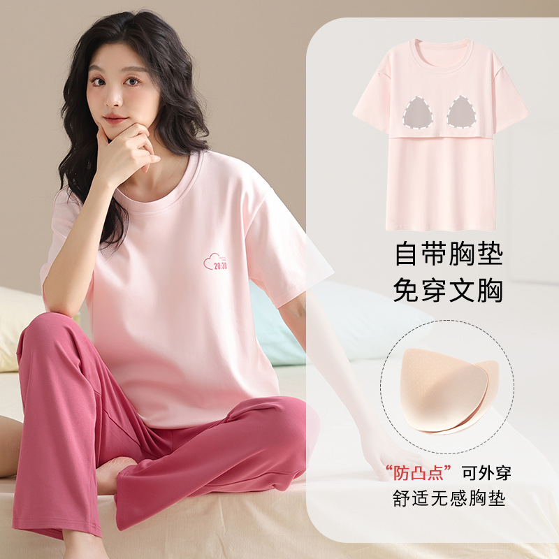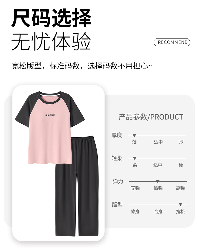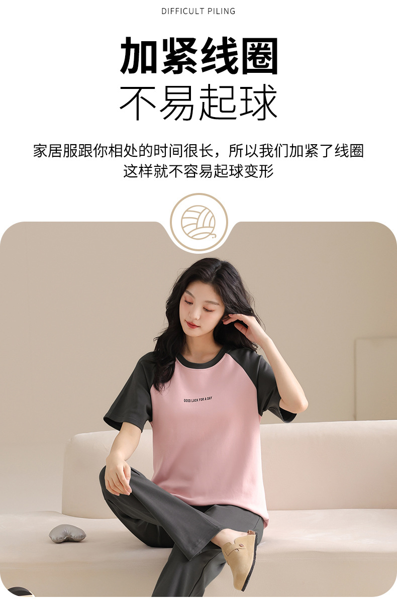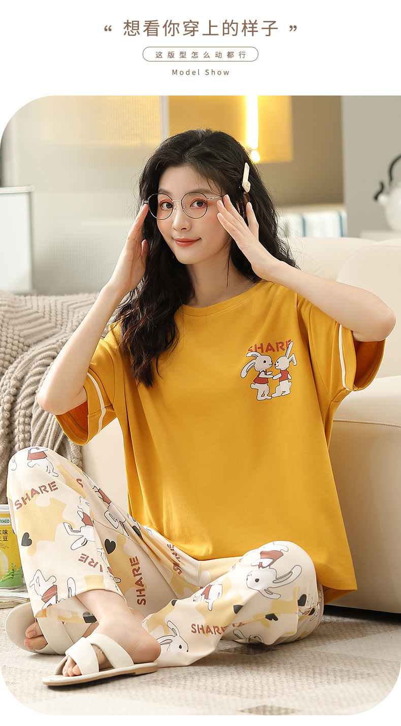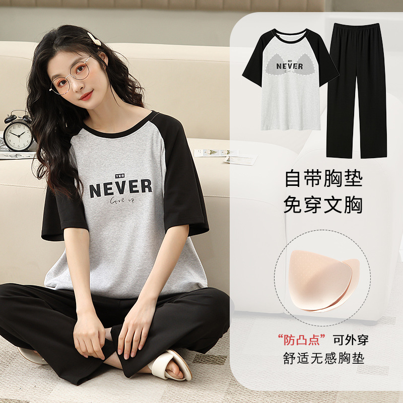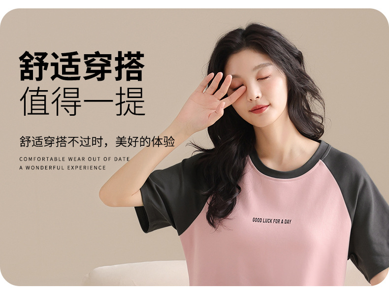 코튼 파자마 여성용 여름 반팔 바지 세트 코튼 풀오버 라운드 넥 캐주얼 의상 홈 의류스토어 가기