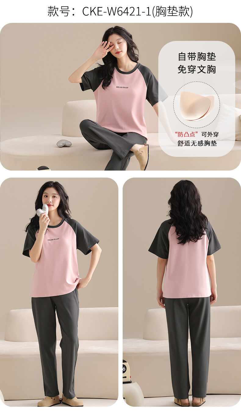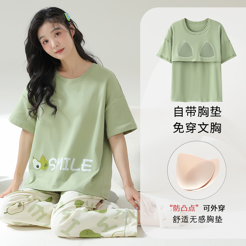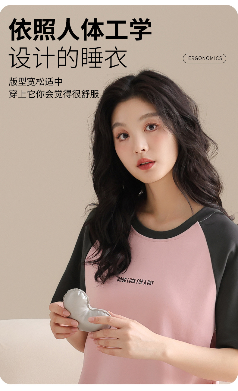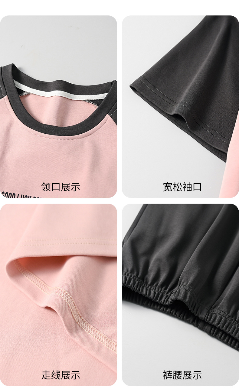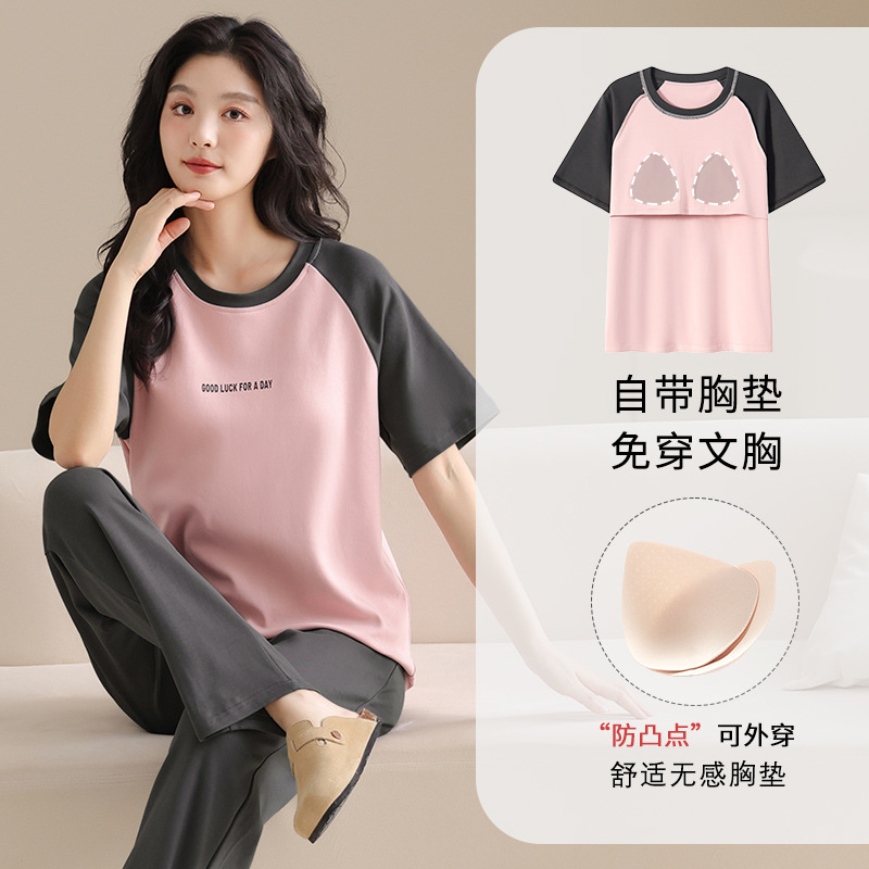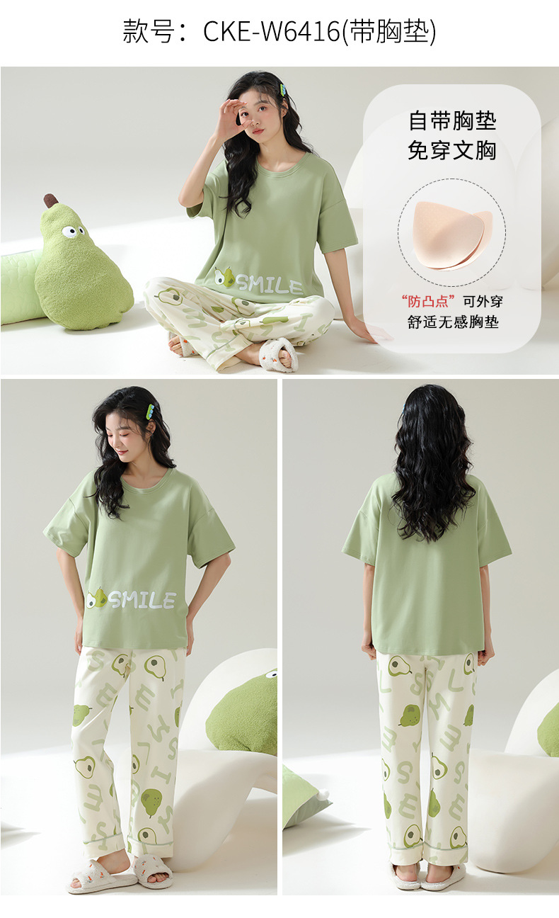 코튼 파자마 여성용 여름 반팔 바지 세트 코튼 풀오버 라운드 넥 캐주얼 의상 홈 의류스토어 가기
