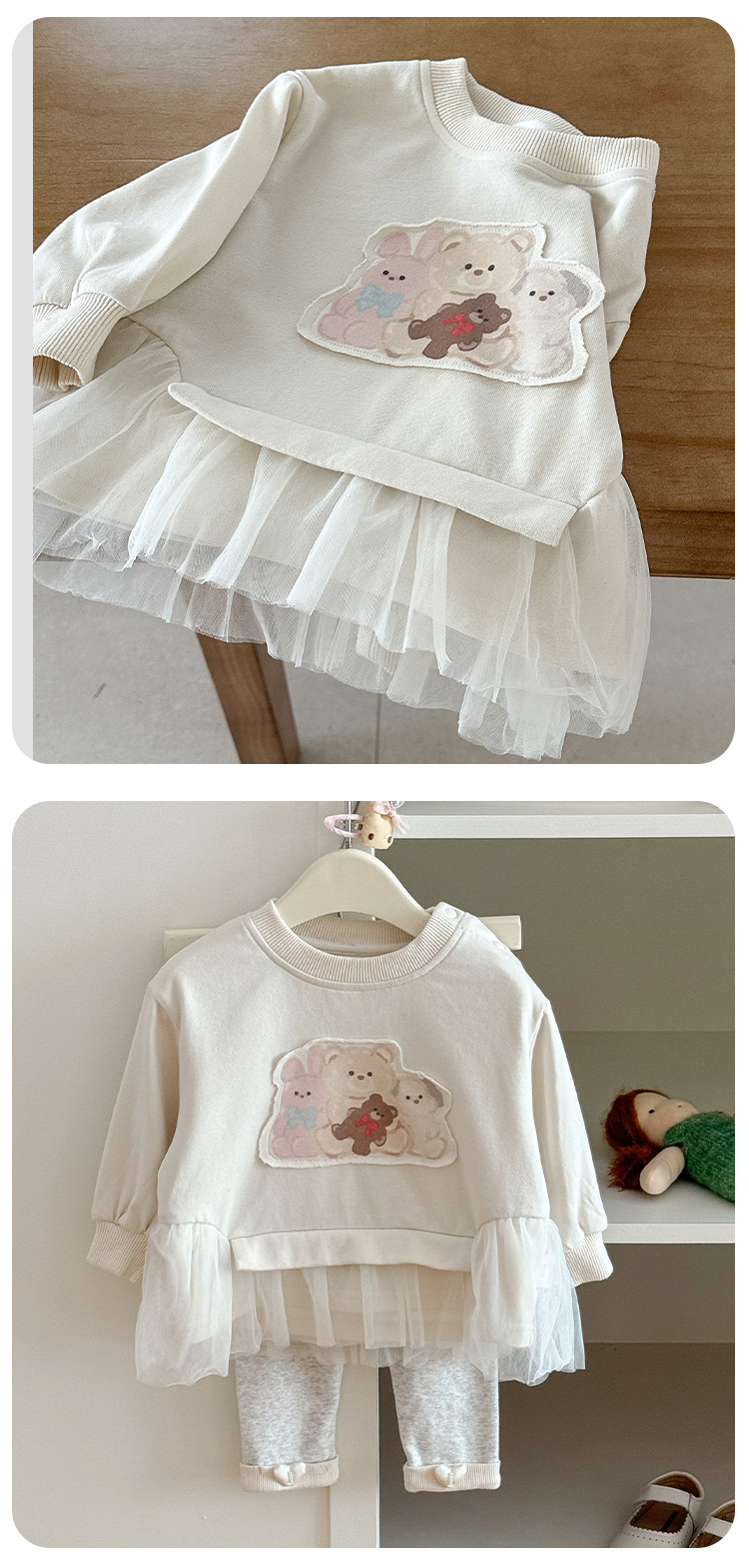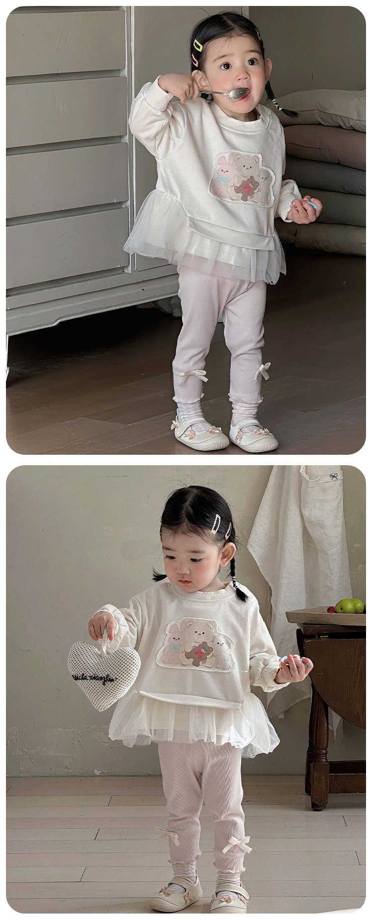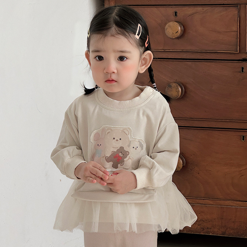 아기의 긴팔 티셔츠 탑 2025 새로운 서양식 스웨터 바지 봄과 가을 아기 소녀베이스 셔츠 투피스 세트 A스토어 가기