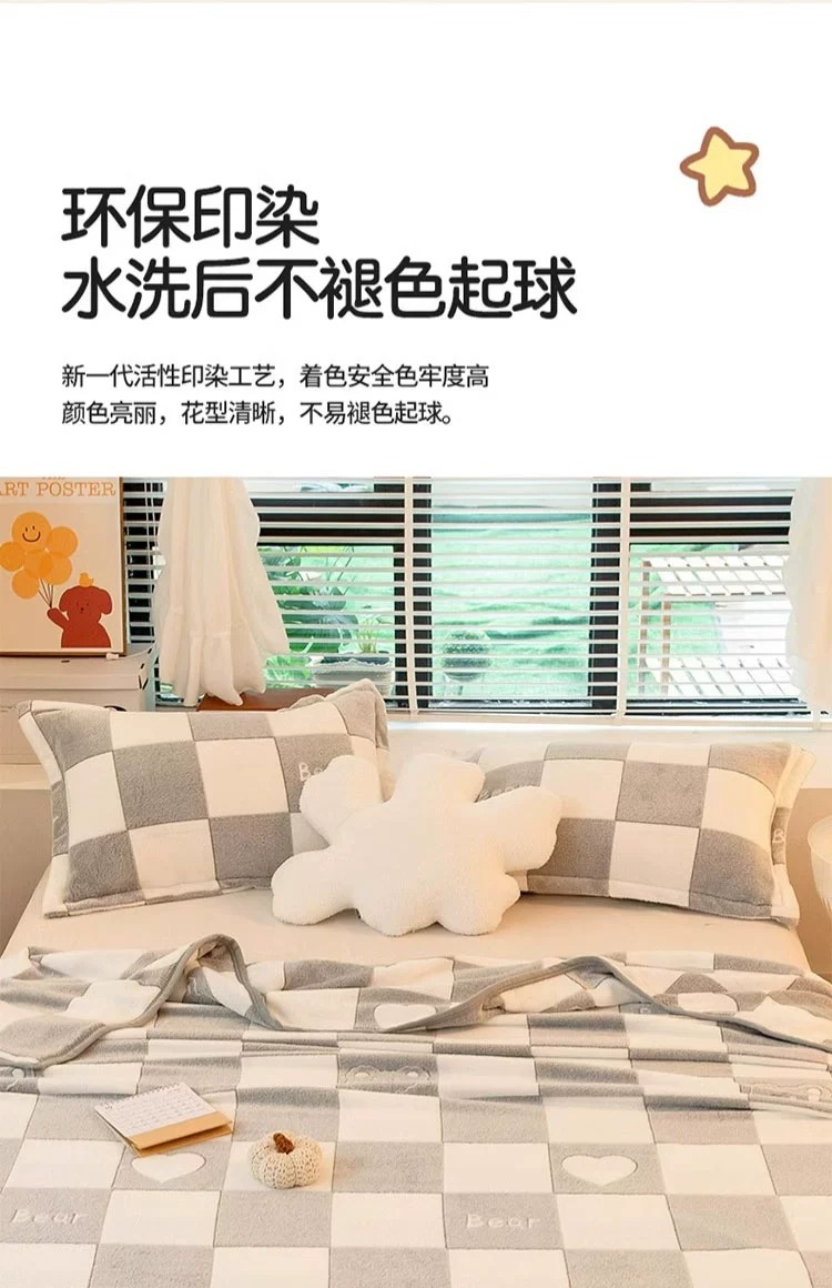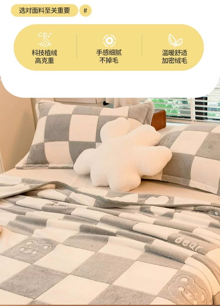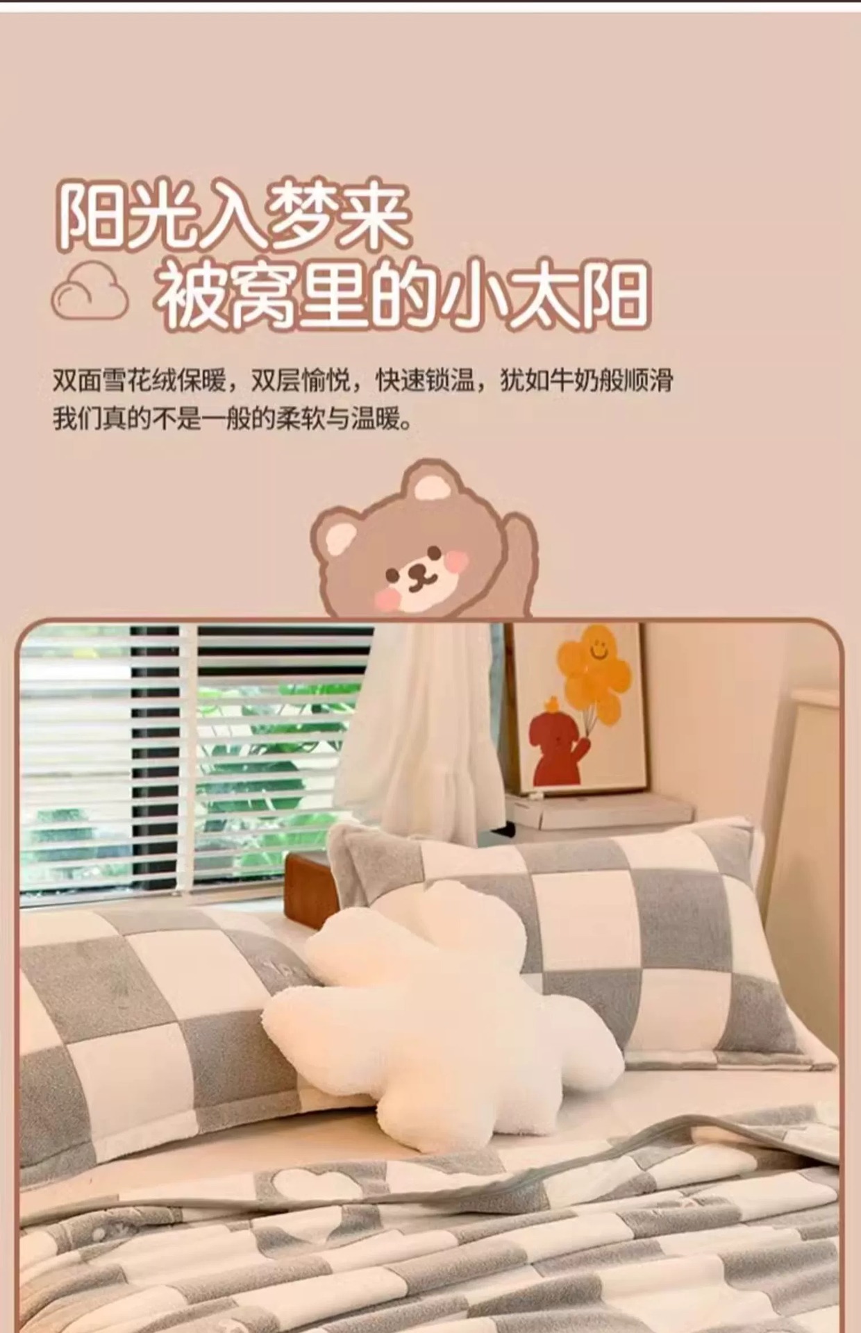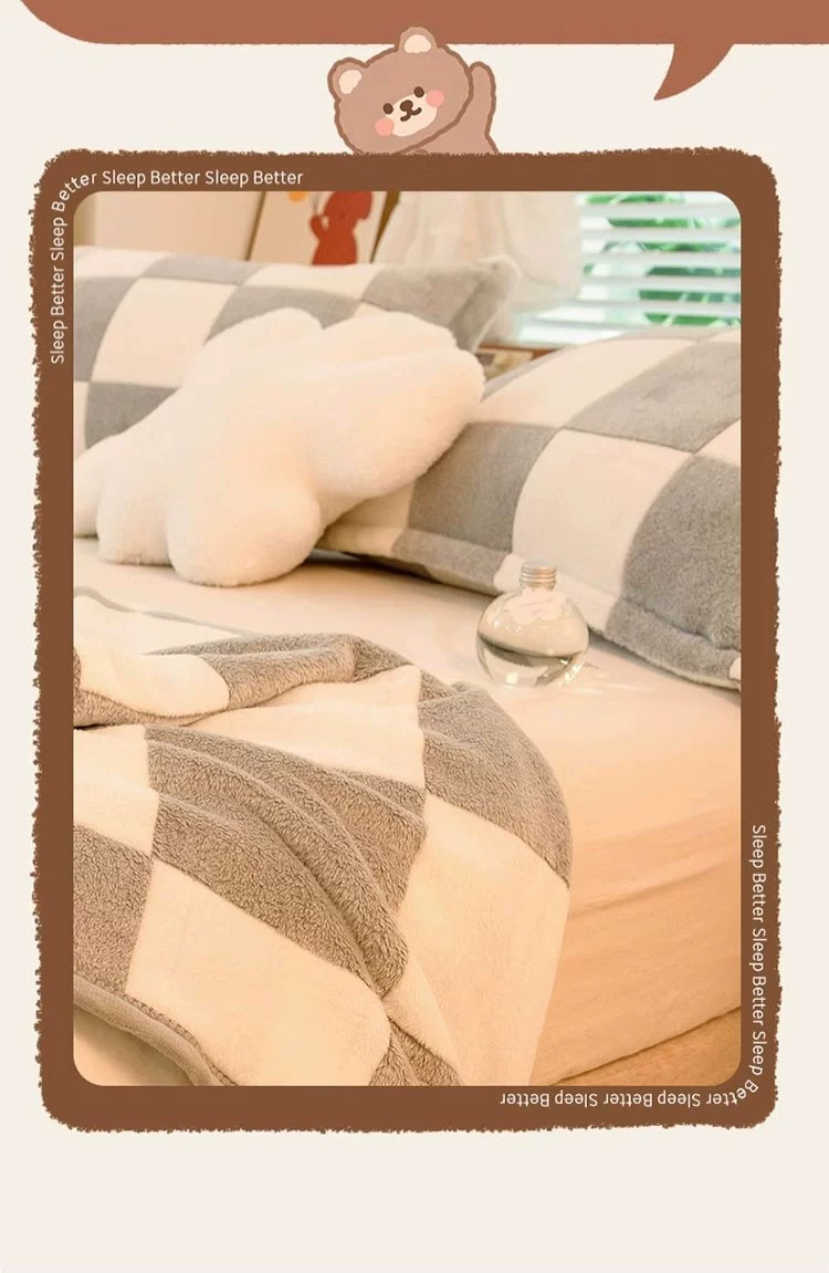 • [베갯잇 1개 + 베개심 1개] 양면 밀크 벨벳 - 귀여운 곰