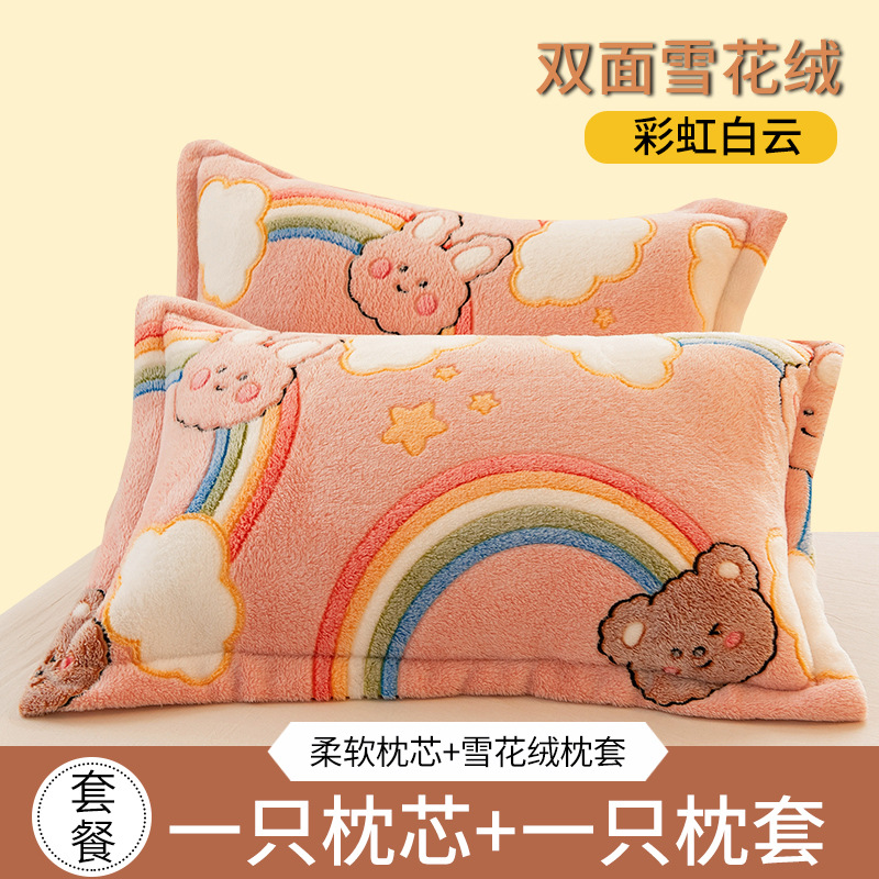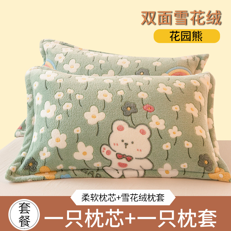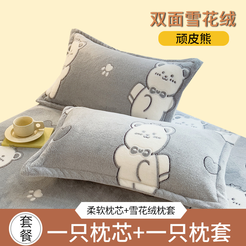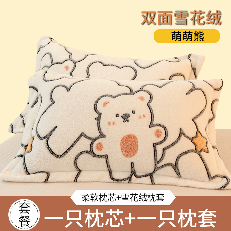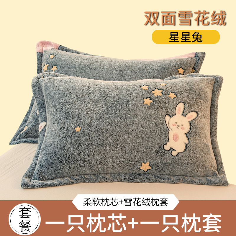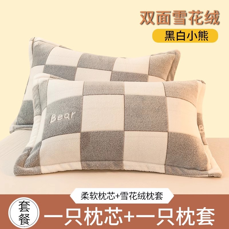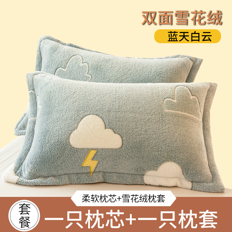 밀크 벨벳 베개 겨울 베개 핵심 남성용 홈 세트 베개 케이스 자궁 경부 보호 기능을 사용하여 한 쌍의 기숙사 학생스토어 가기
