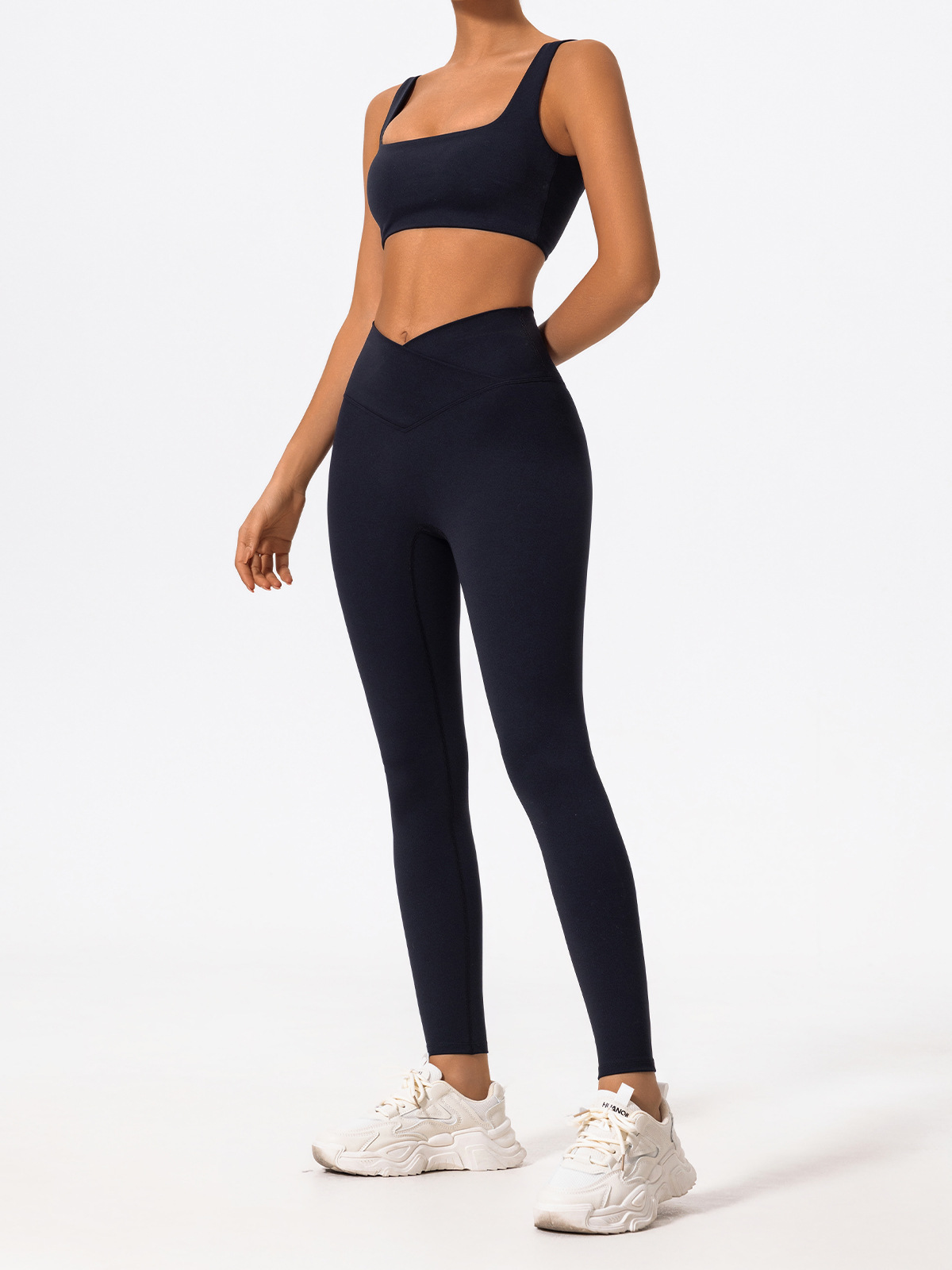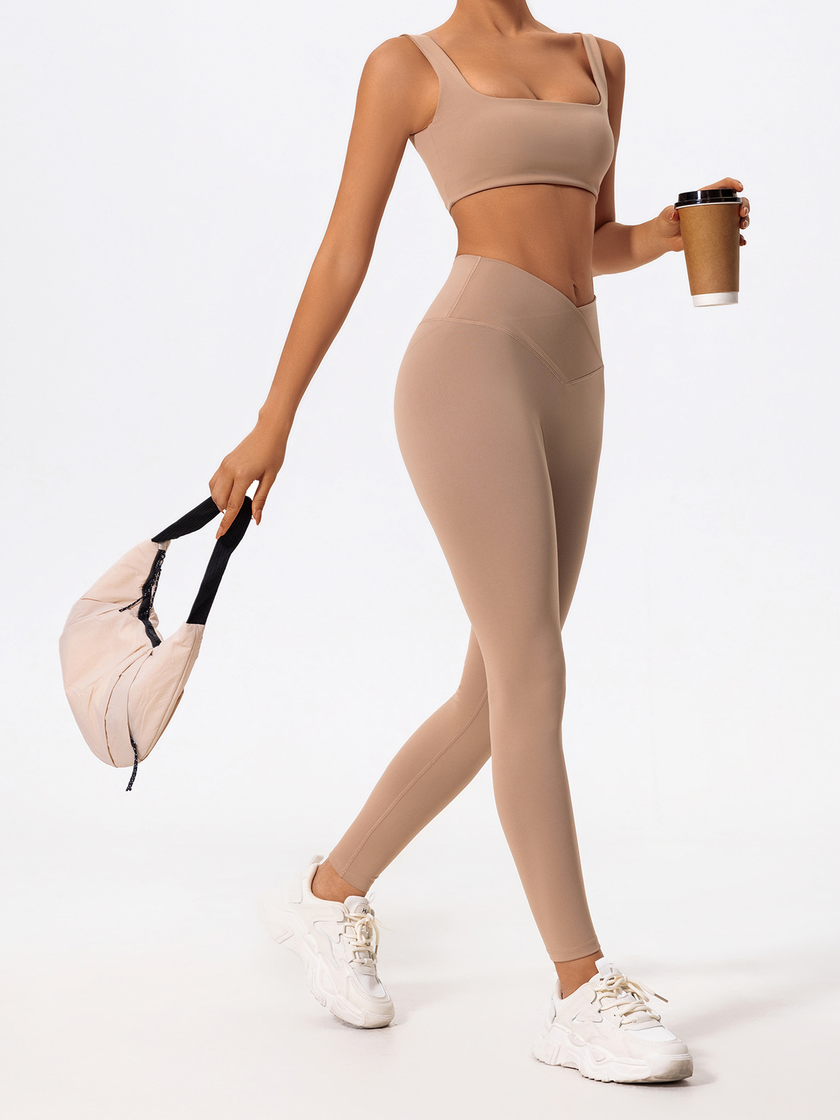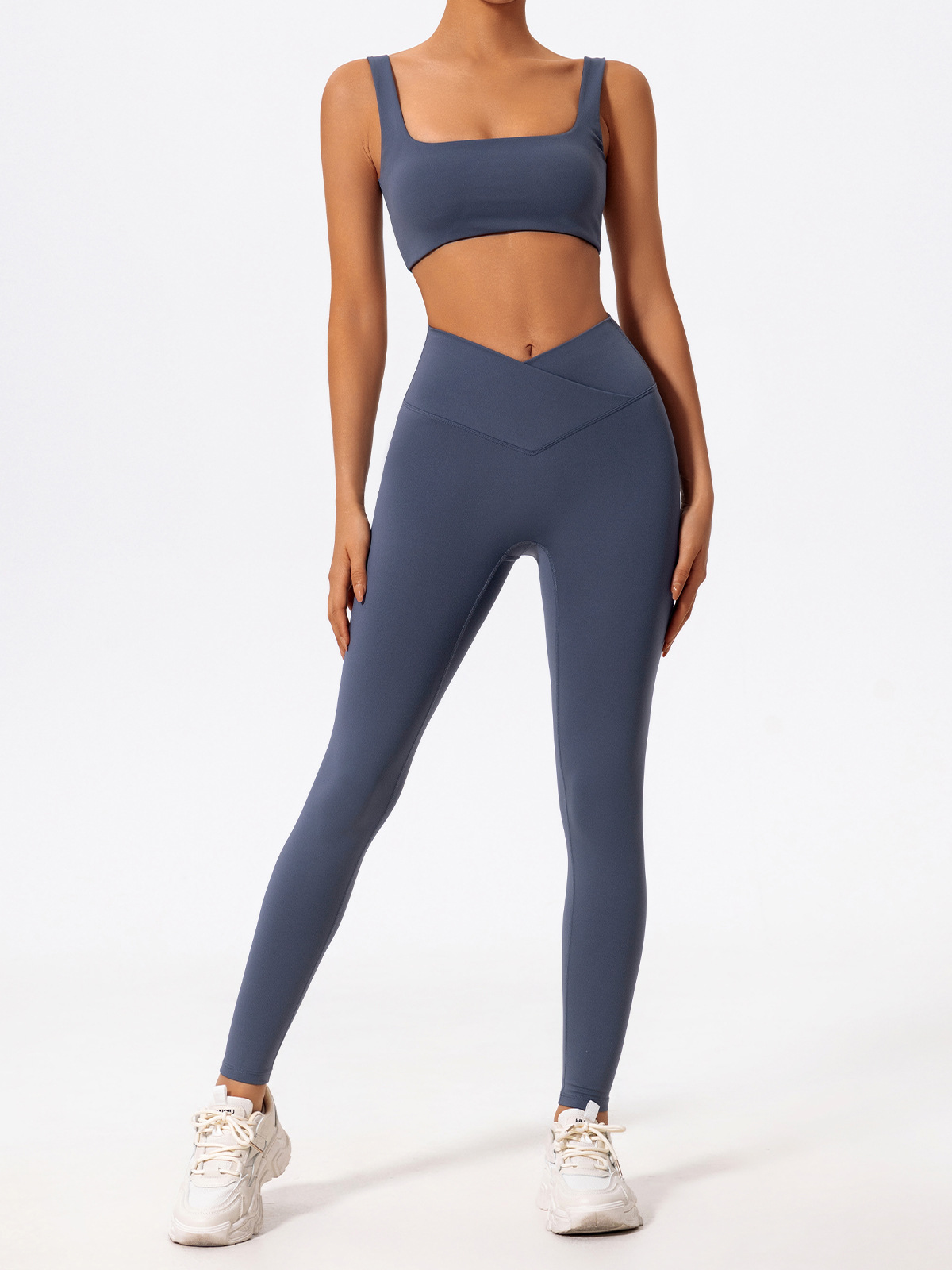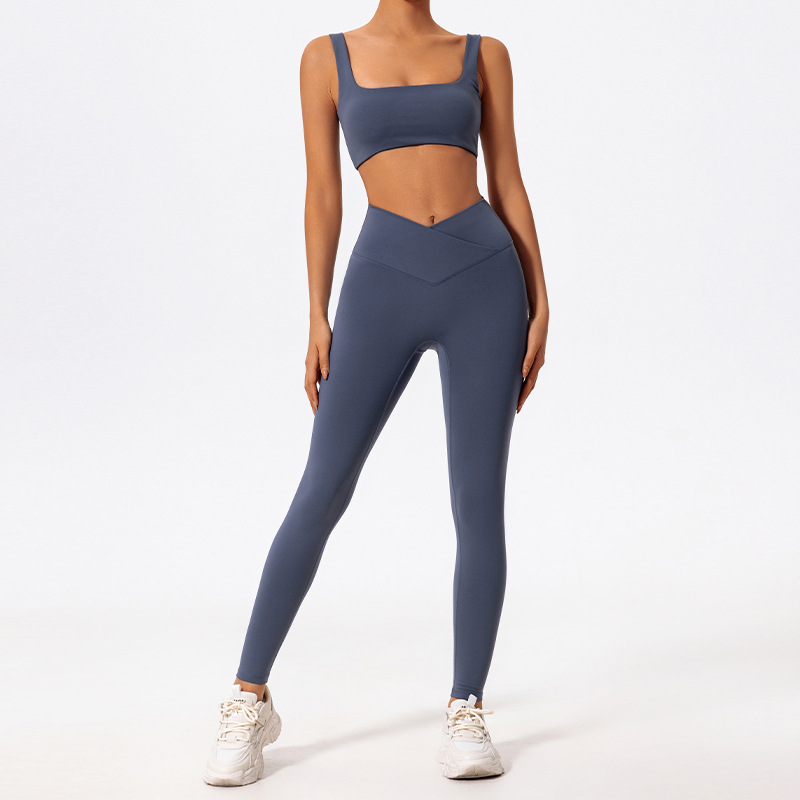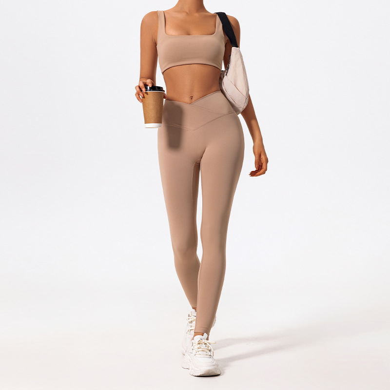 Xijia의 새로운 크로스 보더 시원한 엉덩이 리프팅 스포츠 요가 바지 하이 웨이스트 엉덩이 리프팅 타이트한 아름다운 등 요가 의류 세트