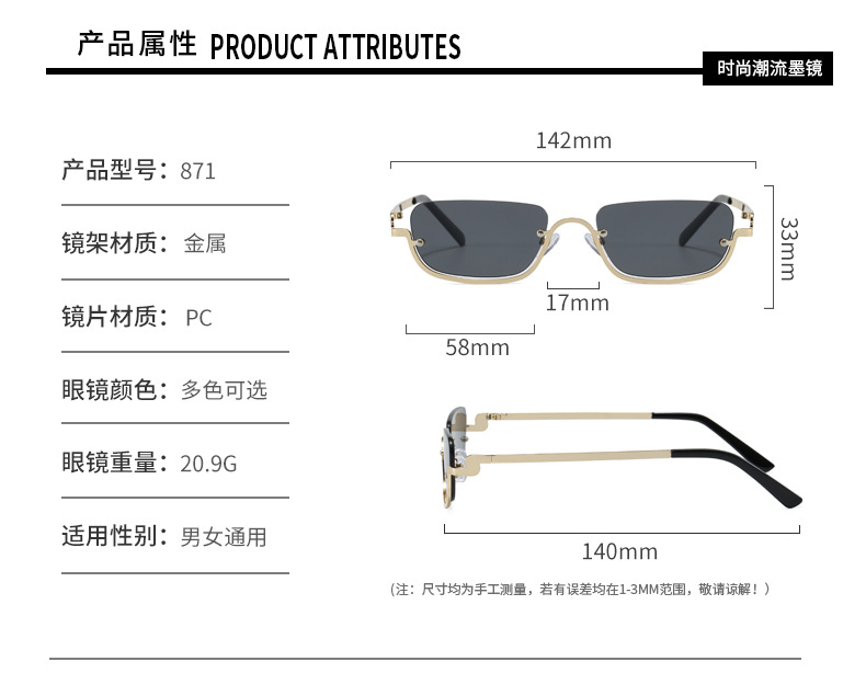 국경 간 유럽과 미국의 작은 프레임 선글라스 새로운 스퀘어 하프 프레임 핫 소녀 패션 스트리트 871 도매스토어 가기