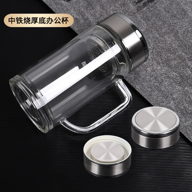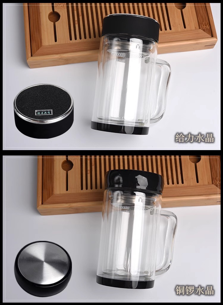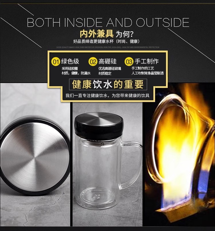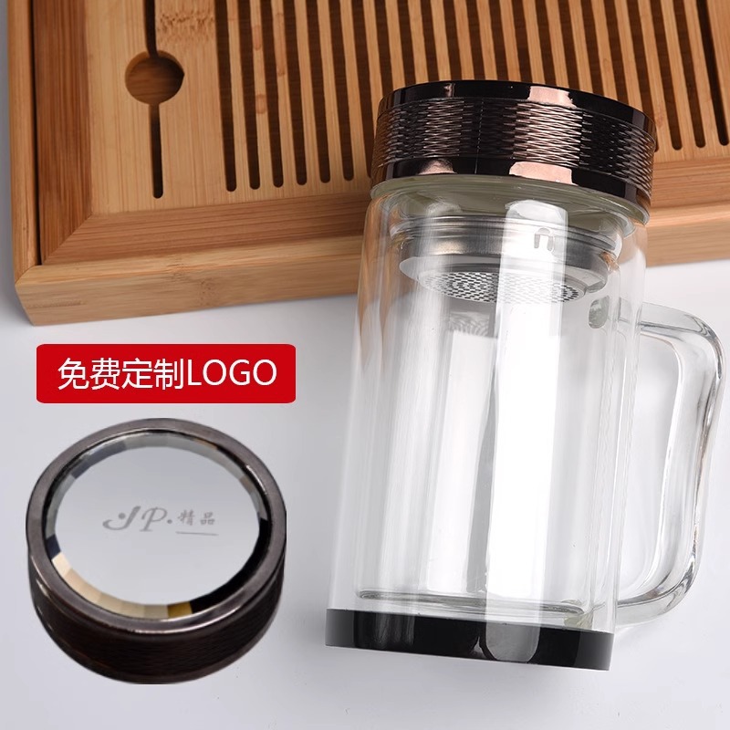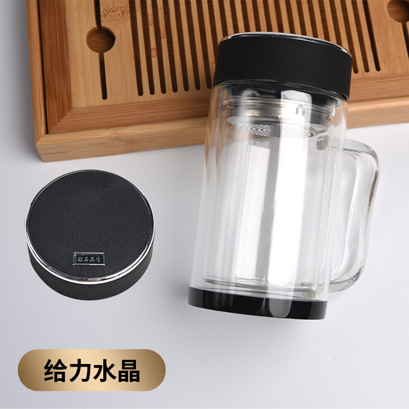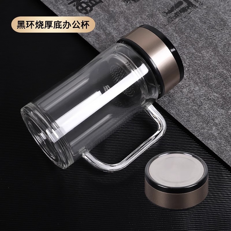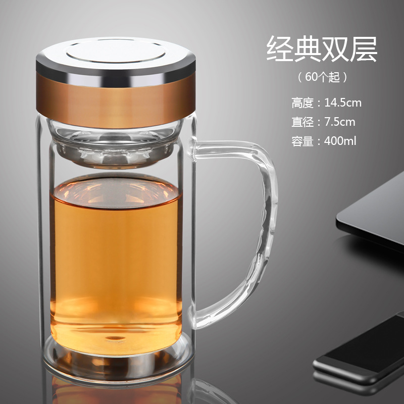 双层玻璃杯隔热带手柄水杯办公室用泡茶杯广告杯子定制印字logo
