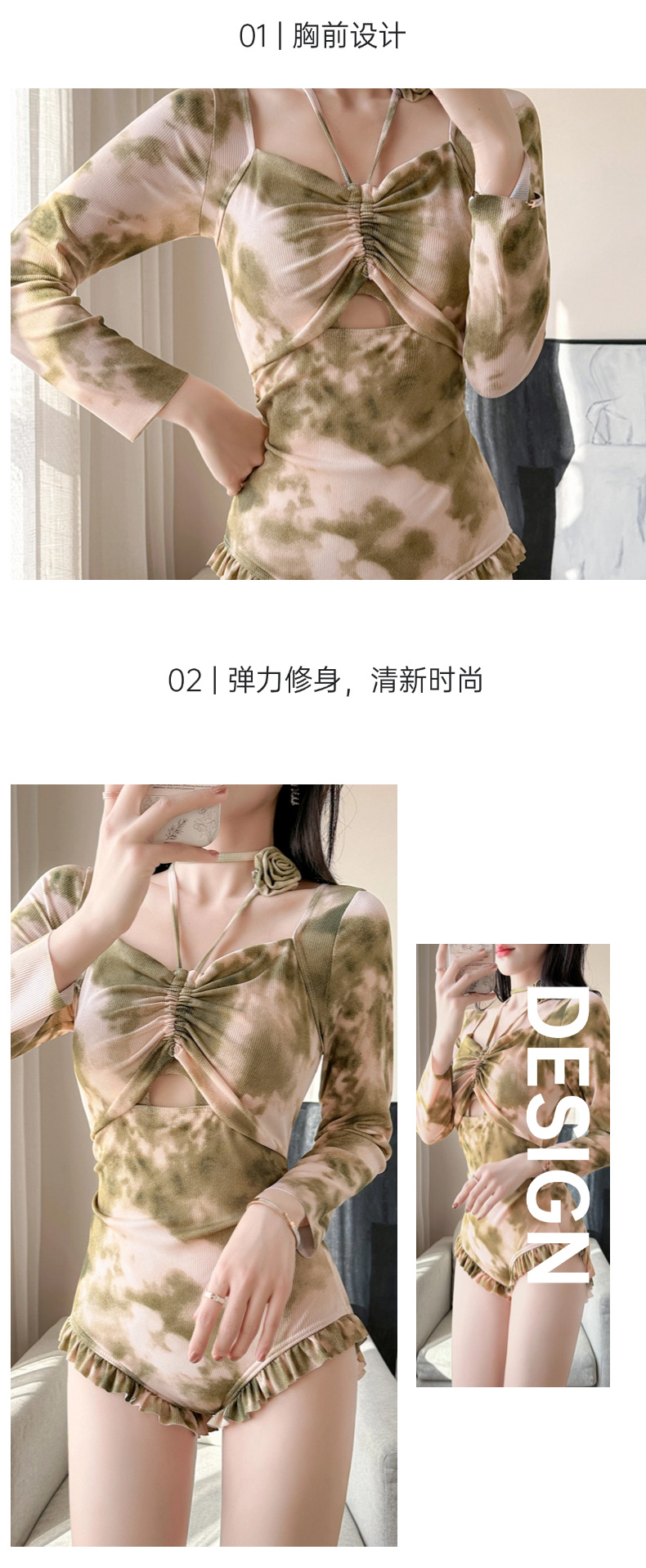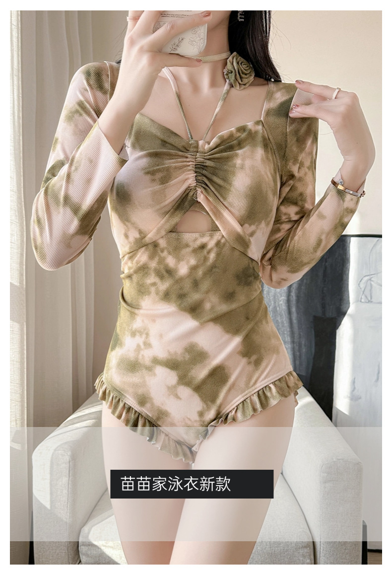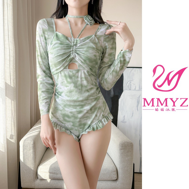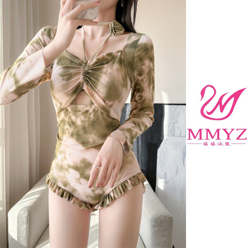 2026년 신상 여성용 삼각형 원피스 수영복, 고급스러운 디자인, 긴팔, 청순하고 섹시한 스타일, 배를 가려주고 날씬해 보이는 온천용 원피스 수영복