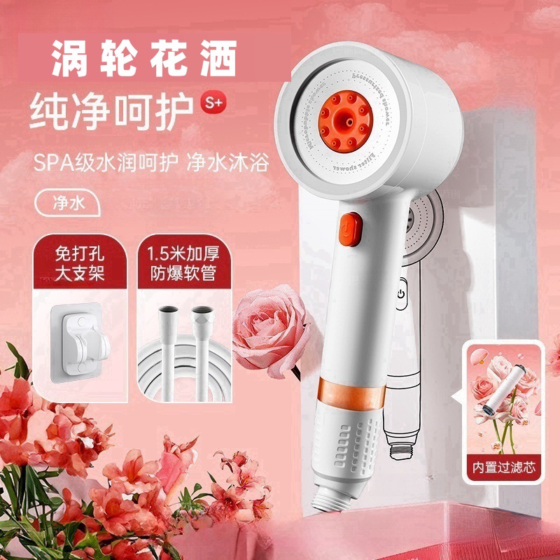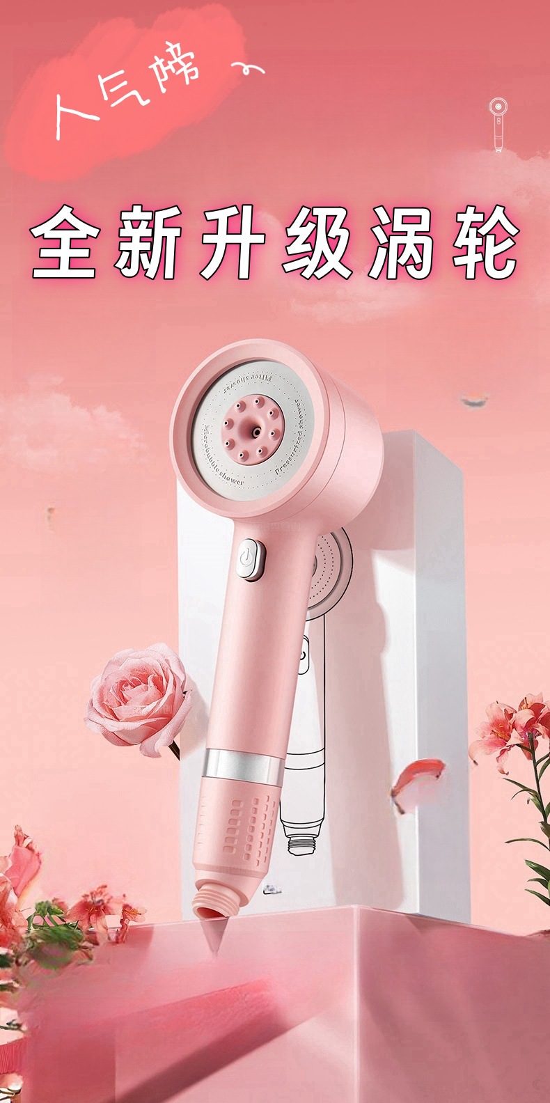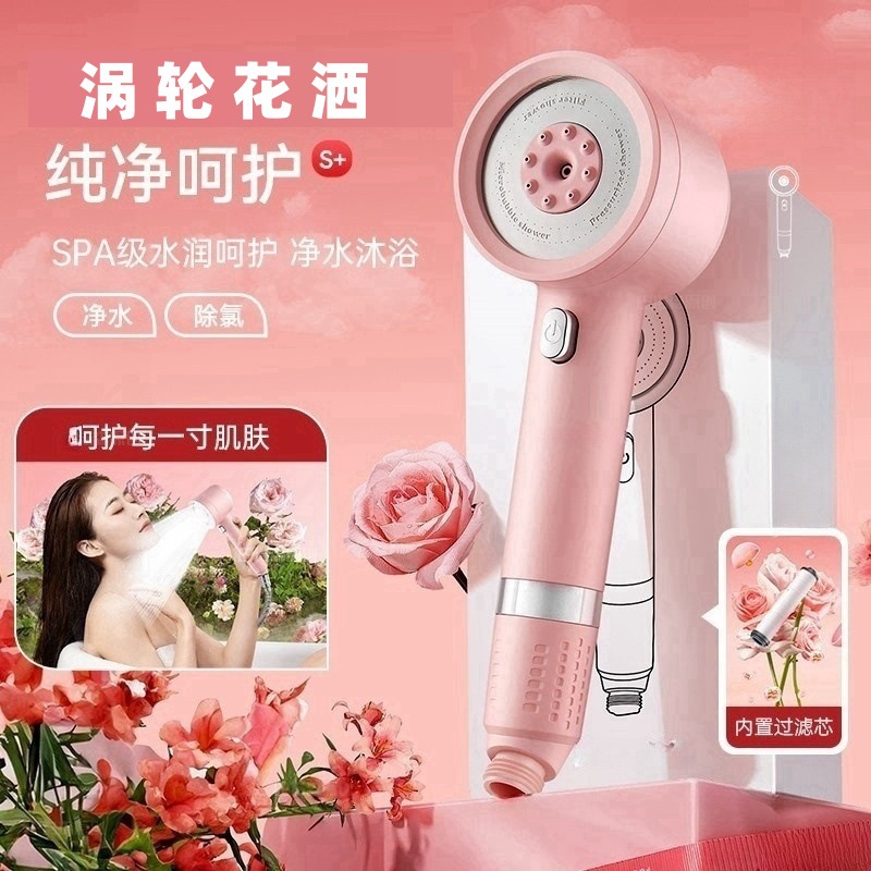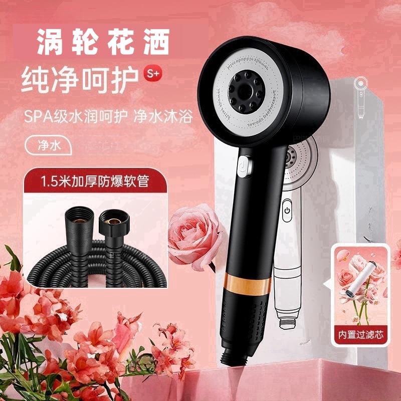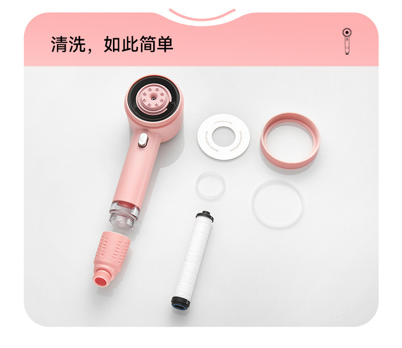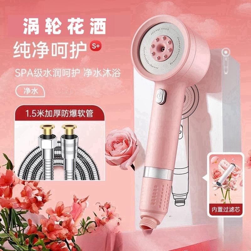 • 【SA-15】【터보 핑크 세트 1】4단 가압 필터 미용 샤워기 + 1.5m 방폭 호스