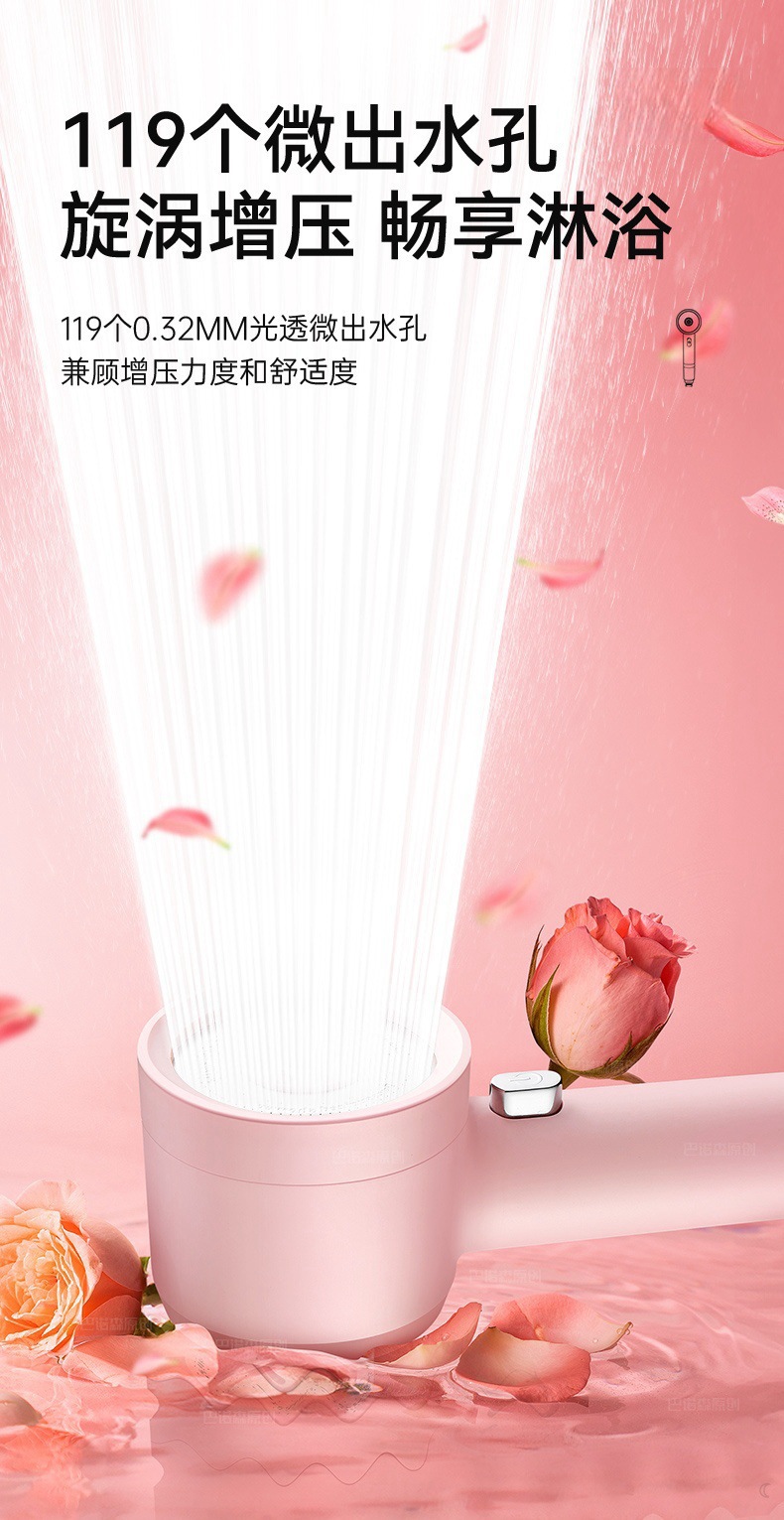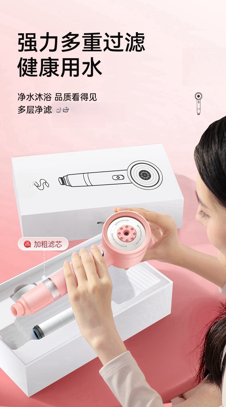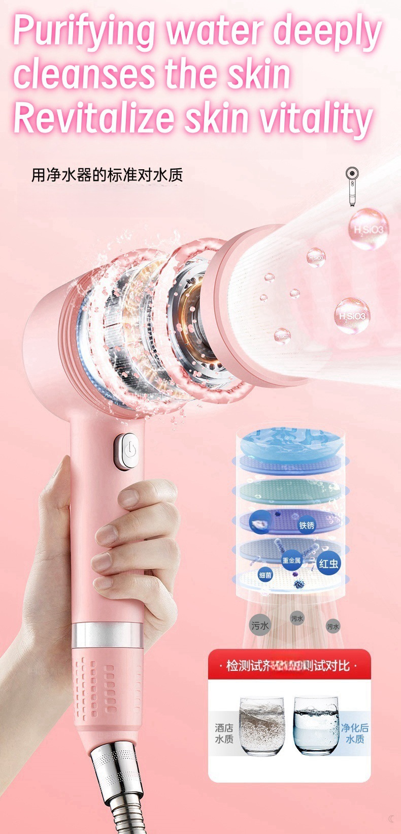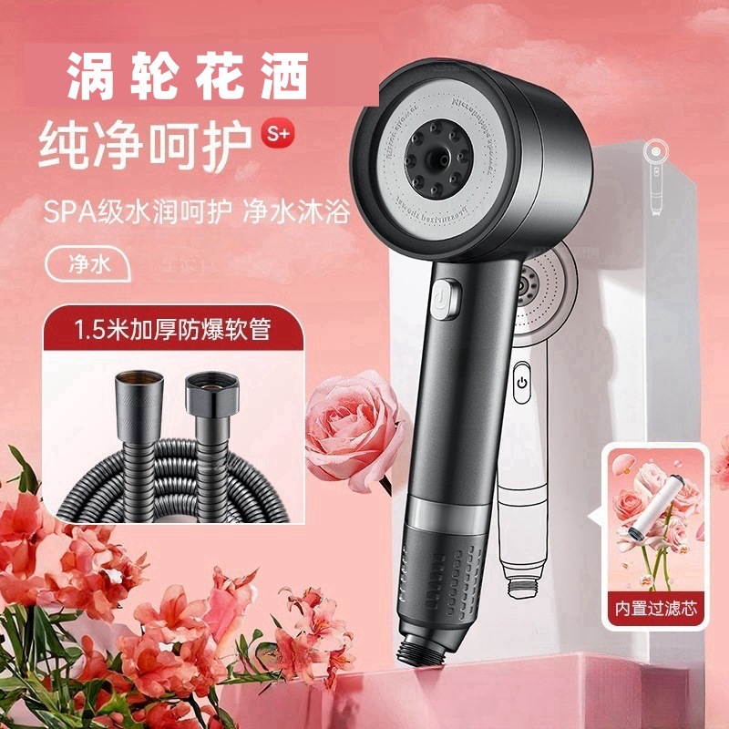 • 【SA-15】【터보 핑크 세트 1】4단 가압 필터 미용 샤워기 + 1.5m 방폭 호스