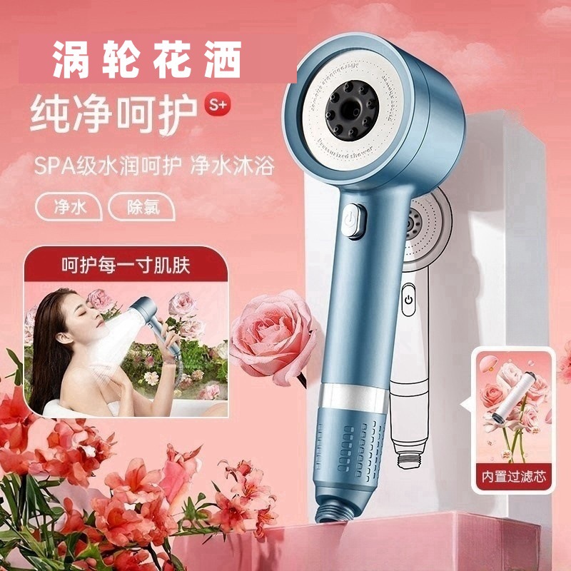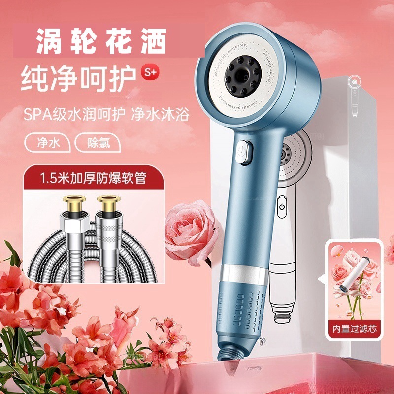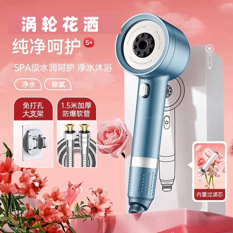 • 【SA-15】【터보 스카이 블루 세트 1】4단 가압 필터 미용 샤워기 + 1.5m 방폭 호스