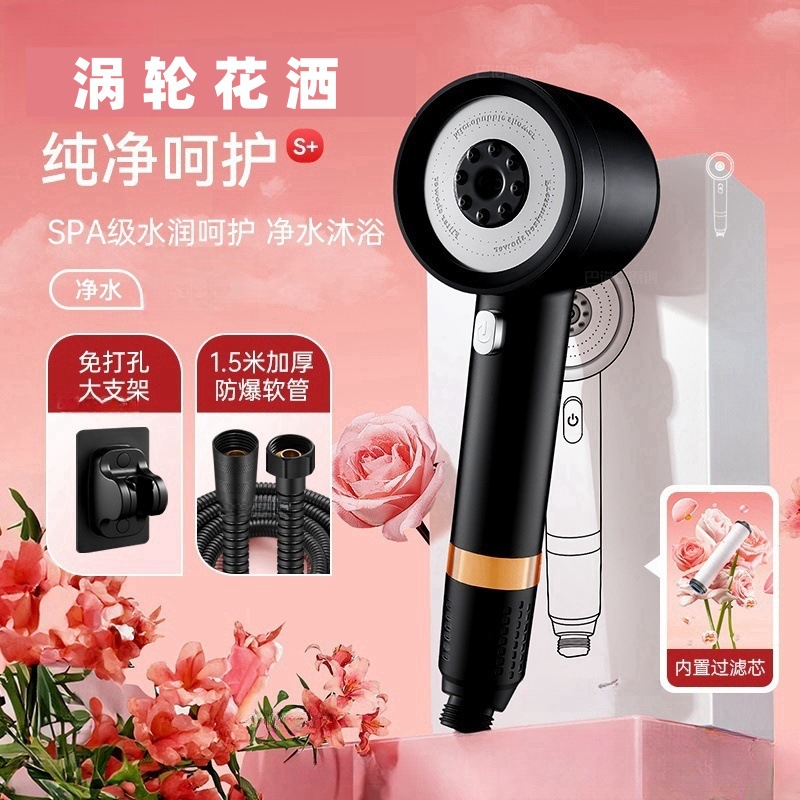 • 【SA-15】【터보 블랙 세트 1】4단 수압 조절 필터 샤워기 + 1.5m 방폭 호스