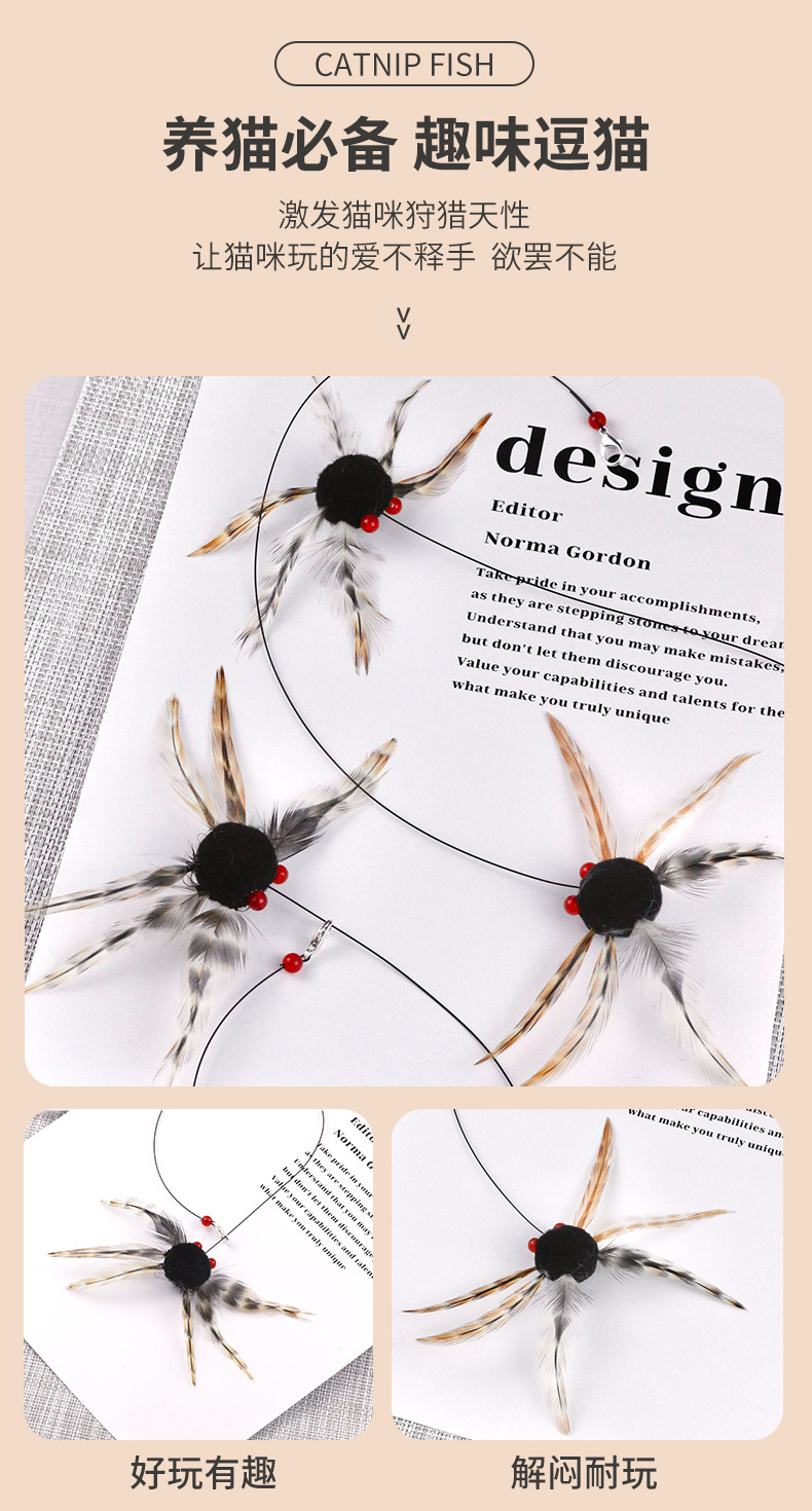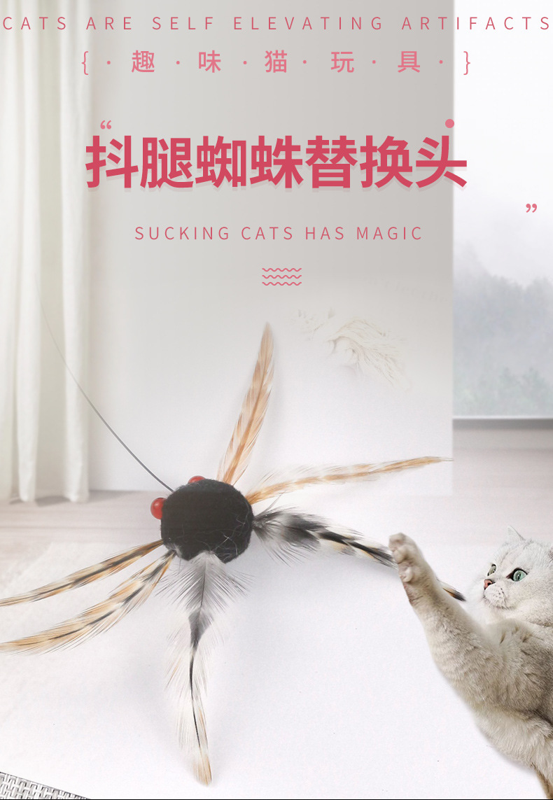 도매 새로운 시뮬레이션 다리 흔들리는 거미 고양이 스틱 교체 헤드 셀프 하이 고양이 스틱 교체 헤드 작은 비행 곤충 고양이 스틱스토어 가기