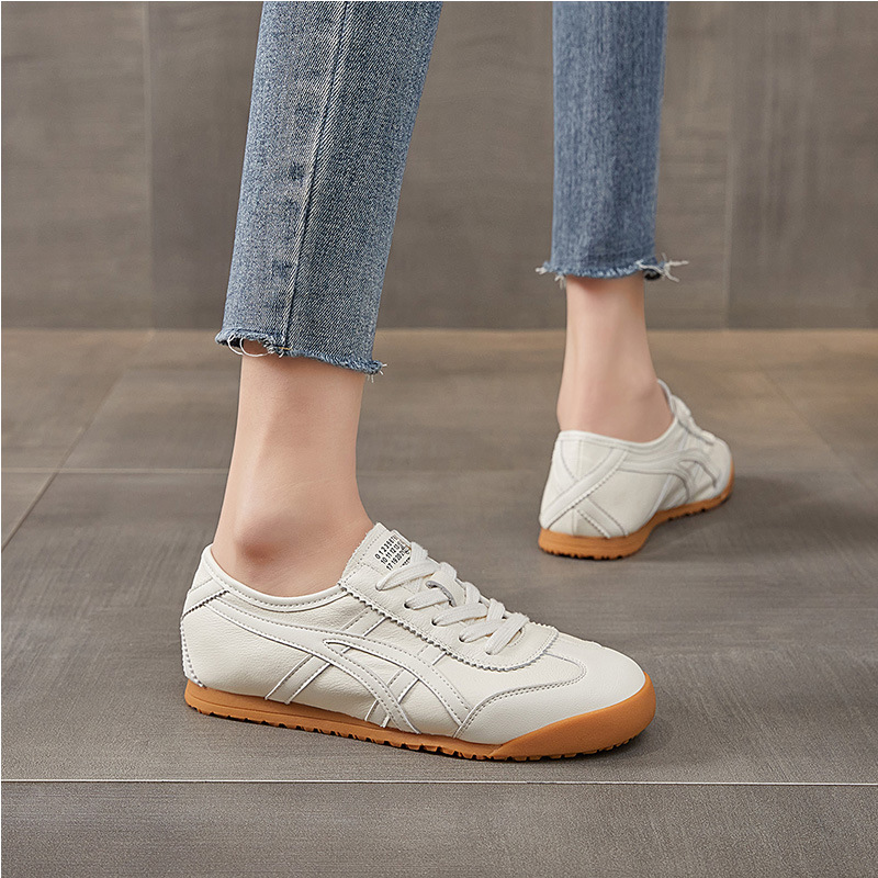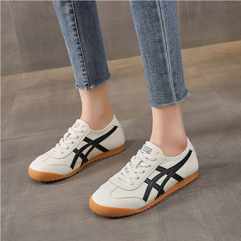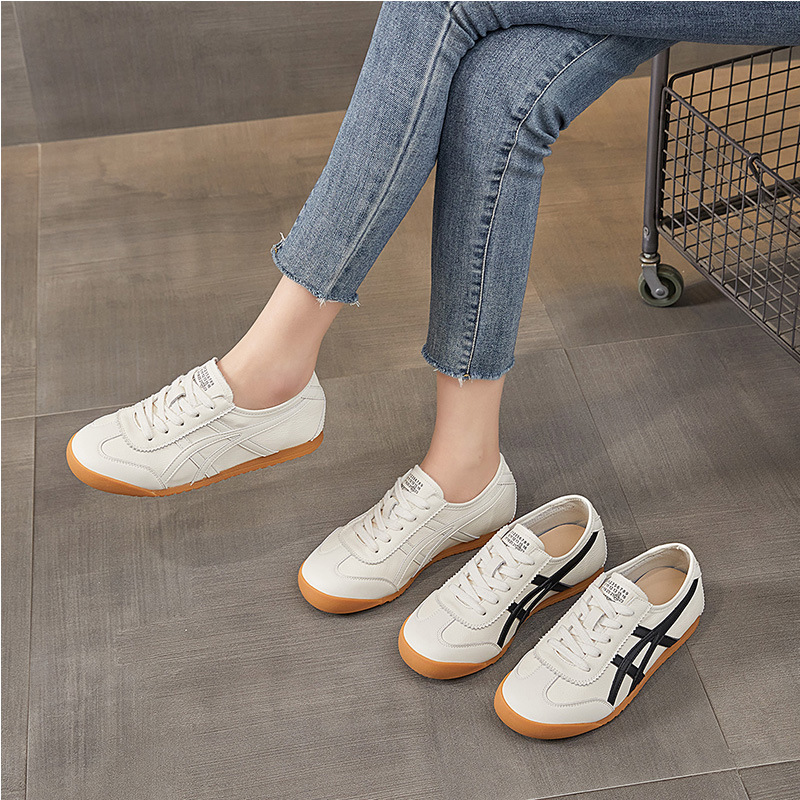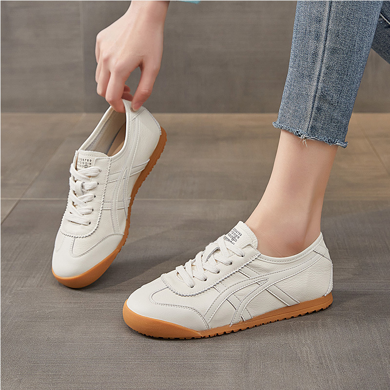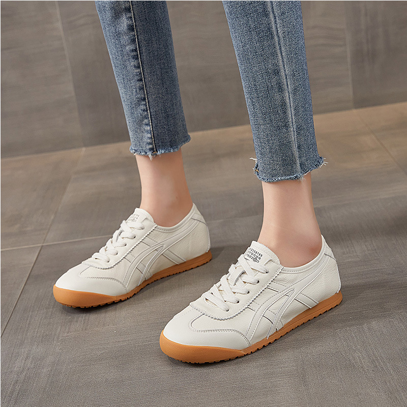 레트로 1 층 소 가죽 와플 훈련을위한 엉덩이 신발 여성 2025 봄 새로운 편안한 올 매치 캐주얼 러닝 운동화