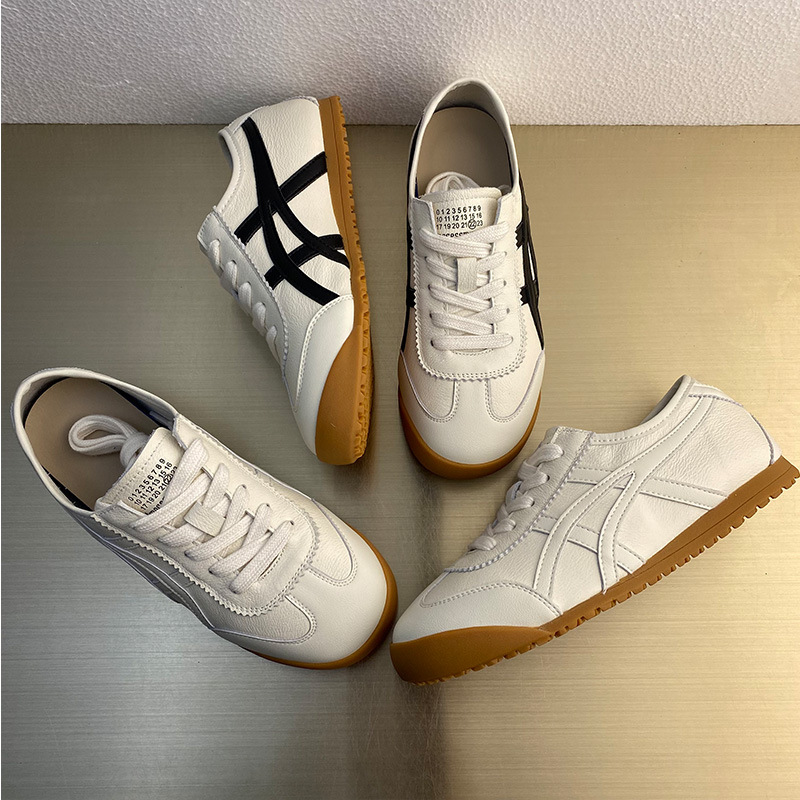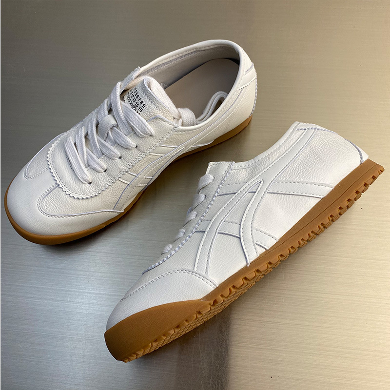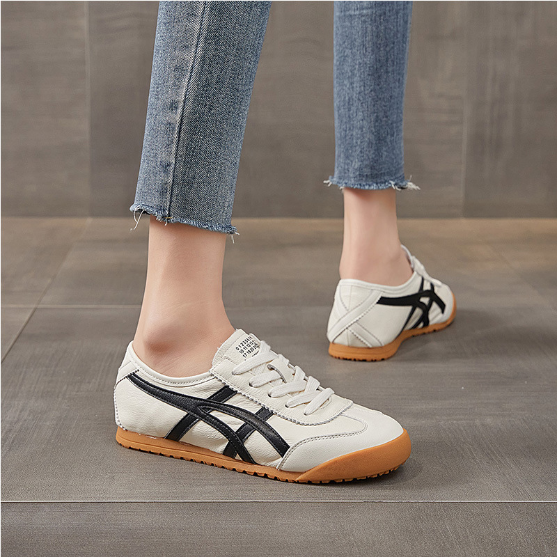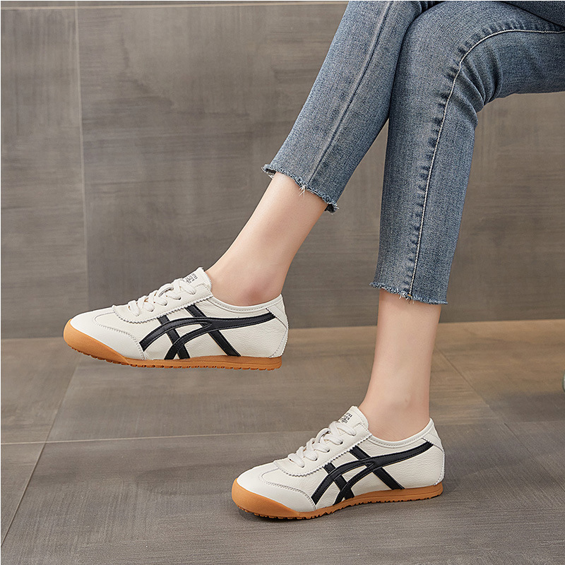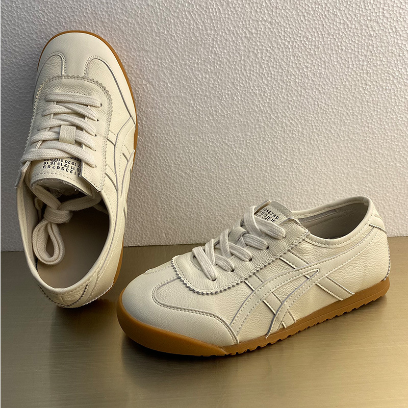 레트로 1 층 소 가죽 와플 훈련을위한 엉덩이 신발 여성 2025 봄 새로운 편안한 올 매치 캐주얼 러닝 운동화