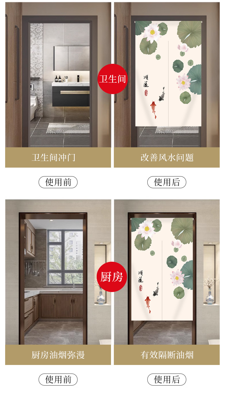 중국식 도어 커튼 파티션 커튼 가구 천 커튼 욕실 보호소 주방 화장실 입구 커튼 침실 절반 커튼 펀치 프리스토어 가기