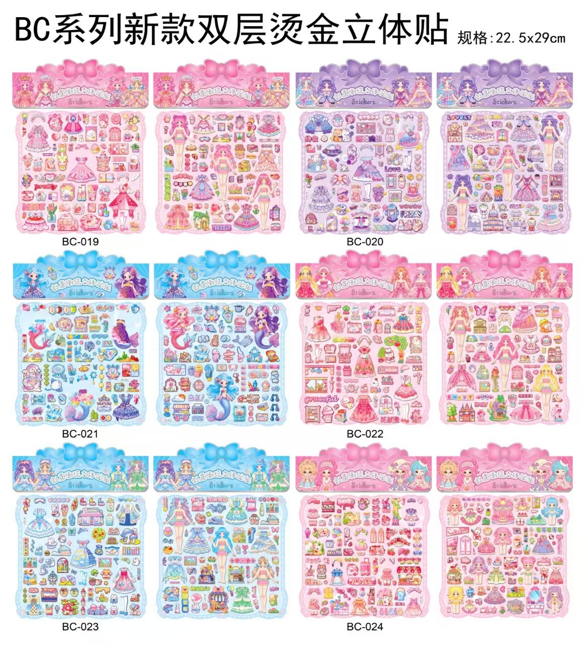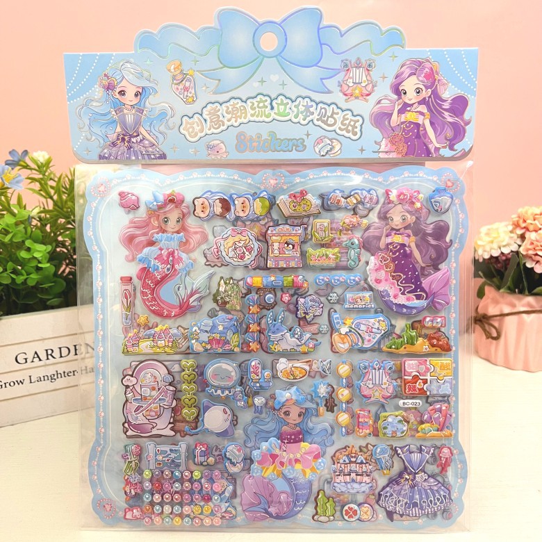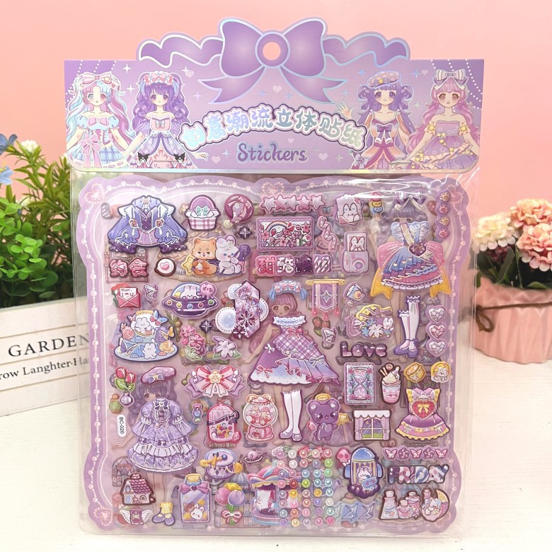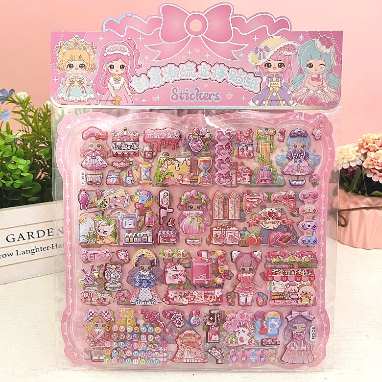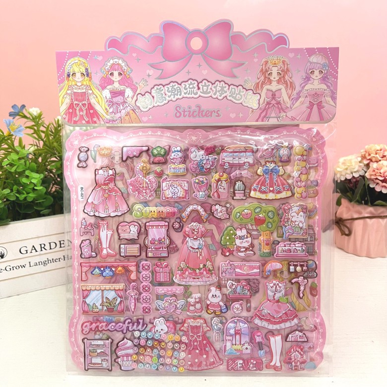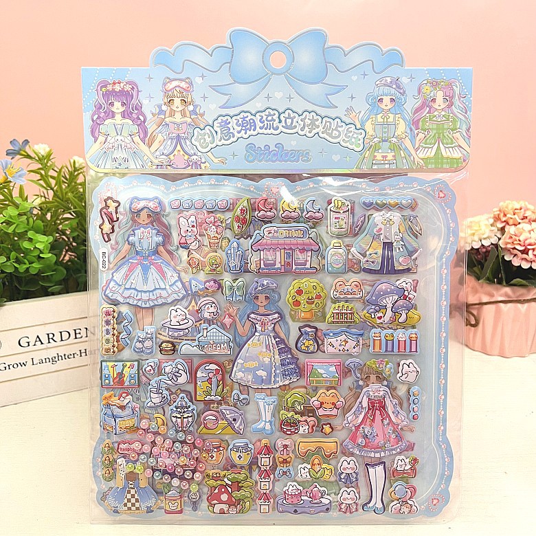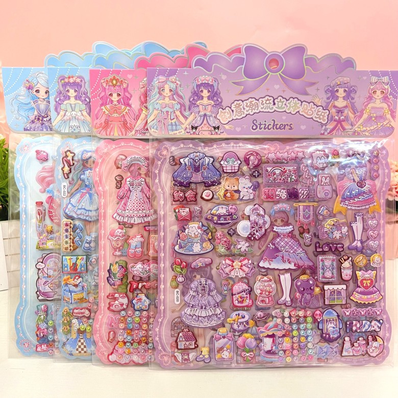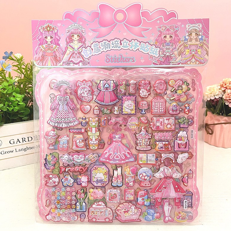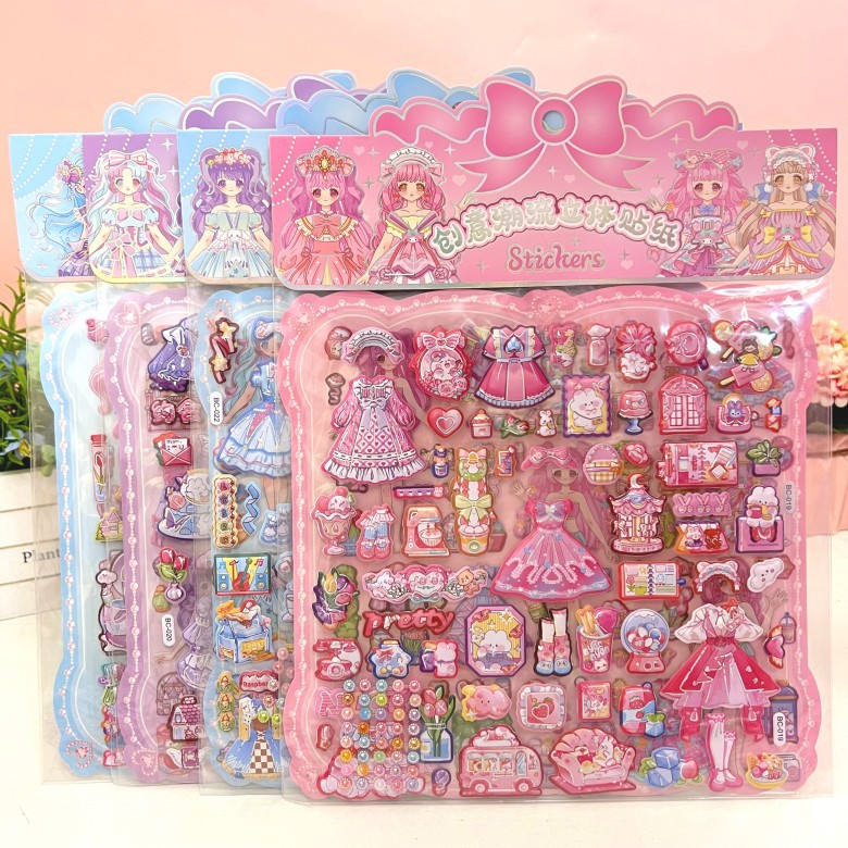 만화 스테레오 원피스 더블 레이어 버블 스티커 어린이 공주 소녀 붙여 넣기 스티커 보상 변경 옷 장난감스토어 가기