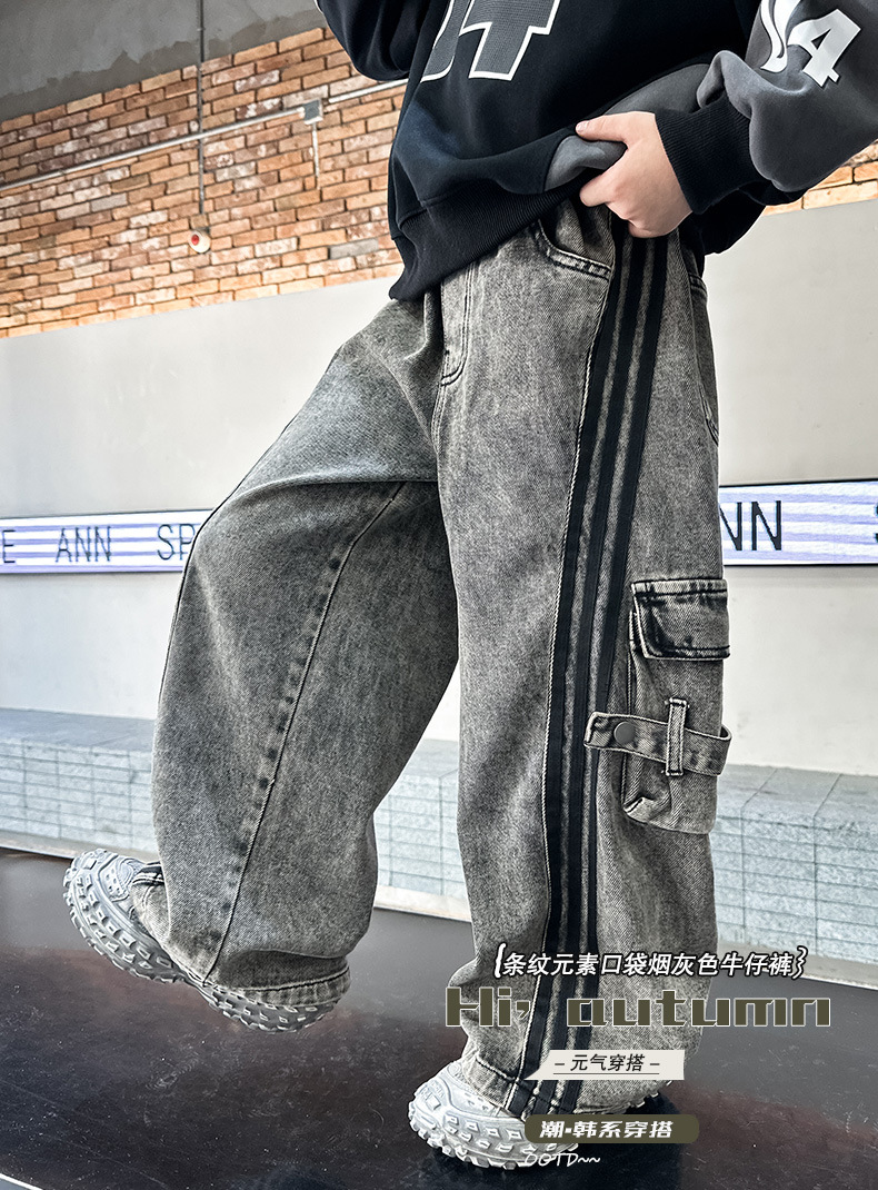 남아용 데님 팬츠 2026년 봄/가을 신상 중대형 아동 가을 의류 작업복 캐주얼 팬츠 남아용 긴바지 가을 트렌드스토어 가기