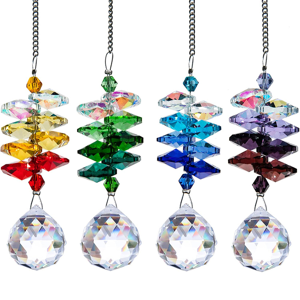 4 피스 크리스탈 태양 포수 컬러 팔각형 구슬 20mm 크리스탈 볼 펜던트 창 매달려 장식 펜던트