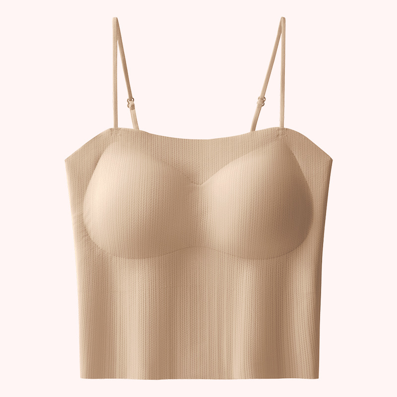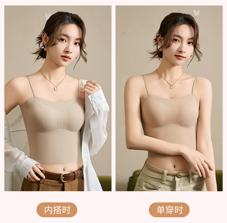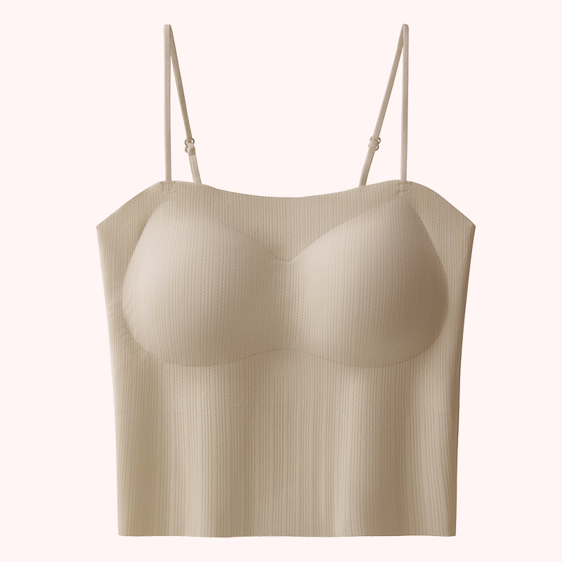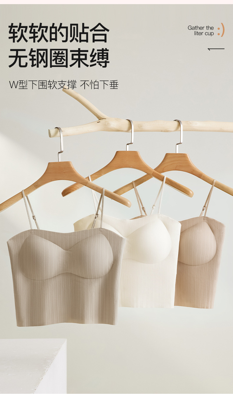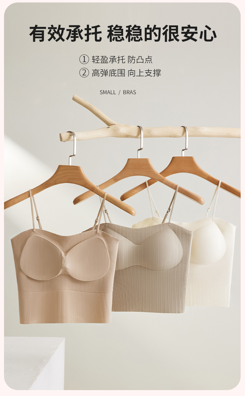 봄과 여름 새로운 원활한 아름다운 등 작은 캐미솔 여성 가슴 패드가 통합 된 내부 및 외부 마모 바닥 튜브 탑스토어 가기