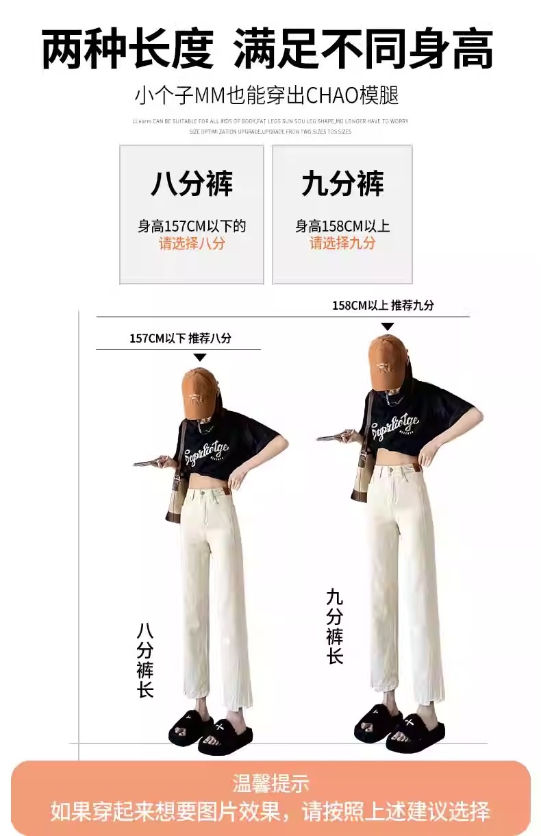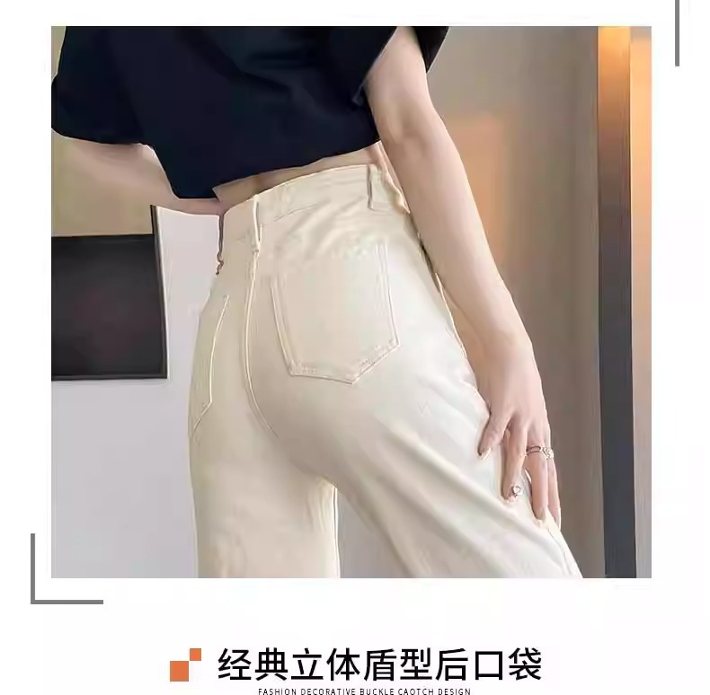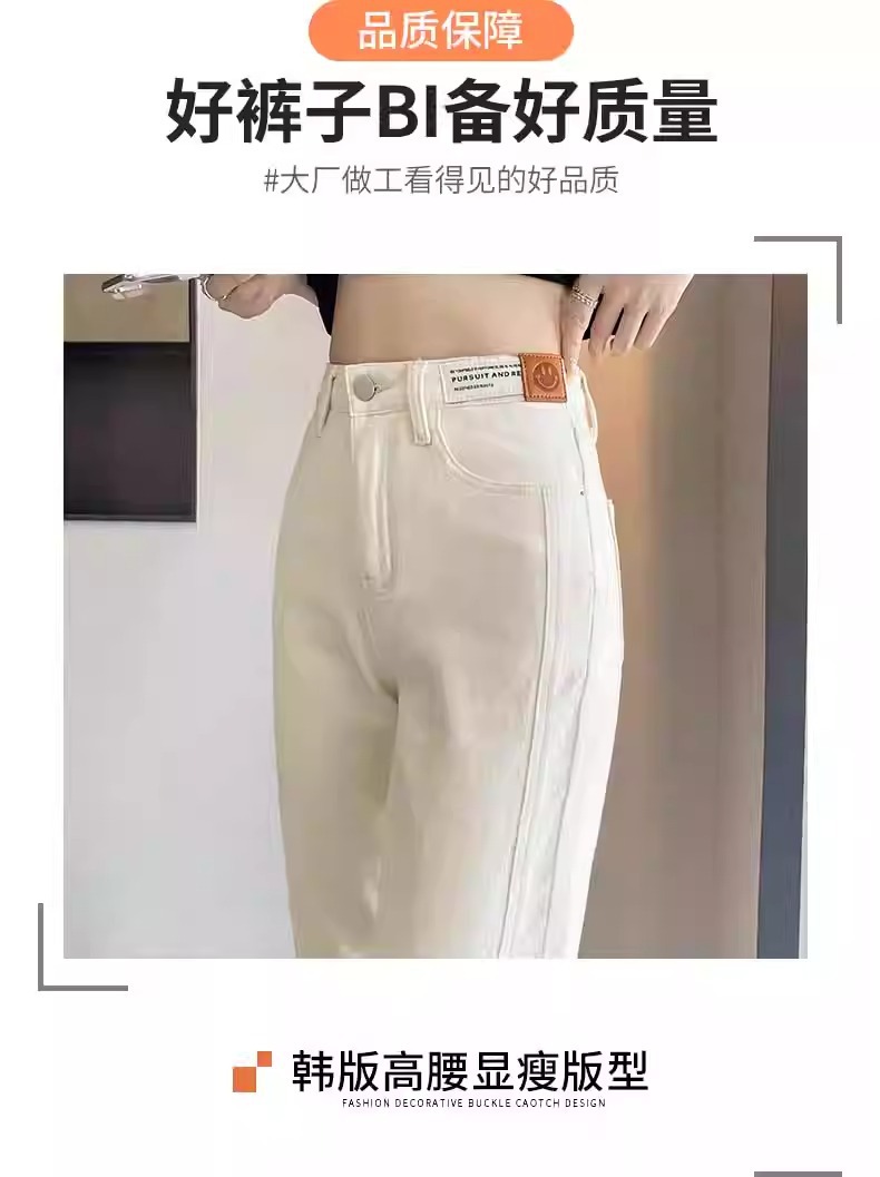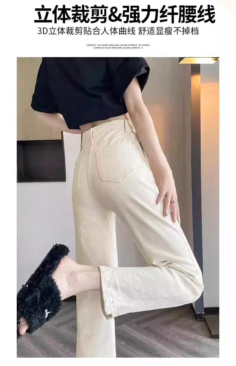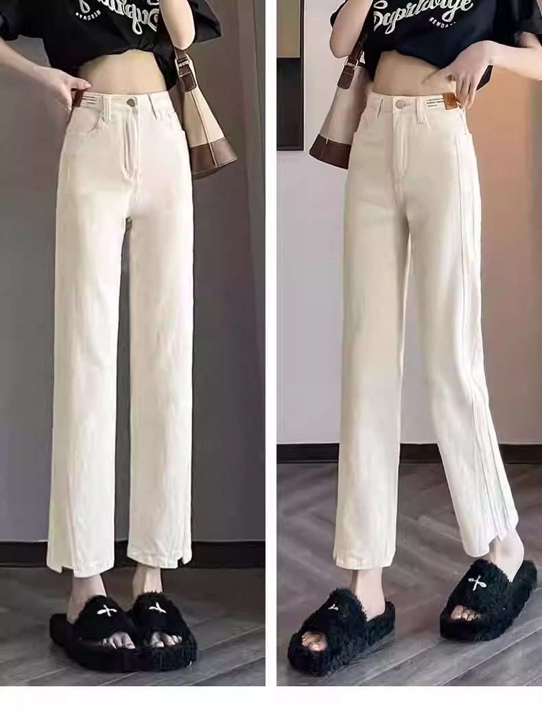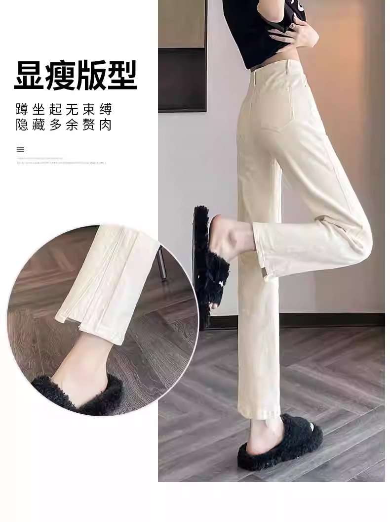 미색 스모크 파이프 데님 팬츠 여성용 2026 봄 가을 기모 하이웨이스트 쁘띠 사이즈 9부 슬림핏 화이트 스트레이트 팬츠스토어 가기