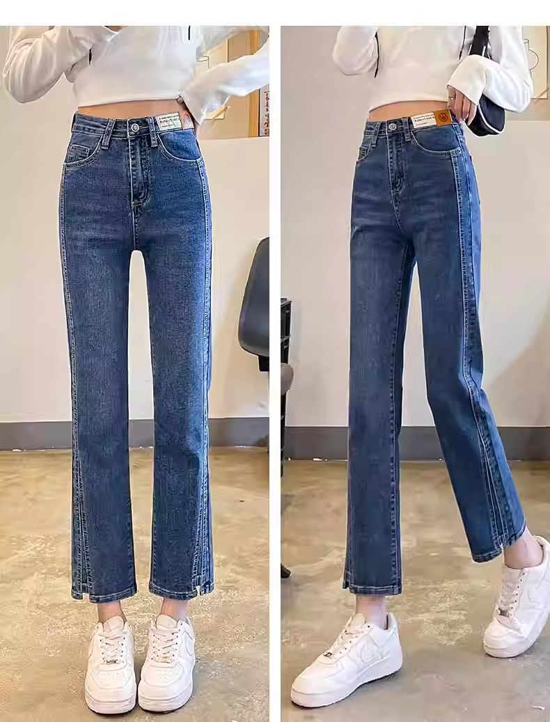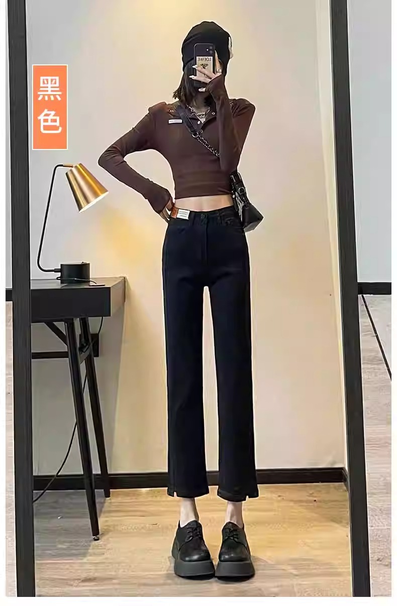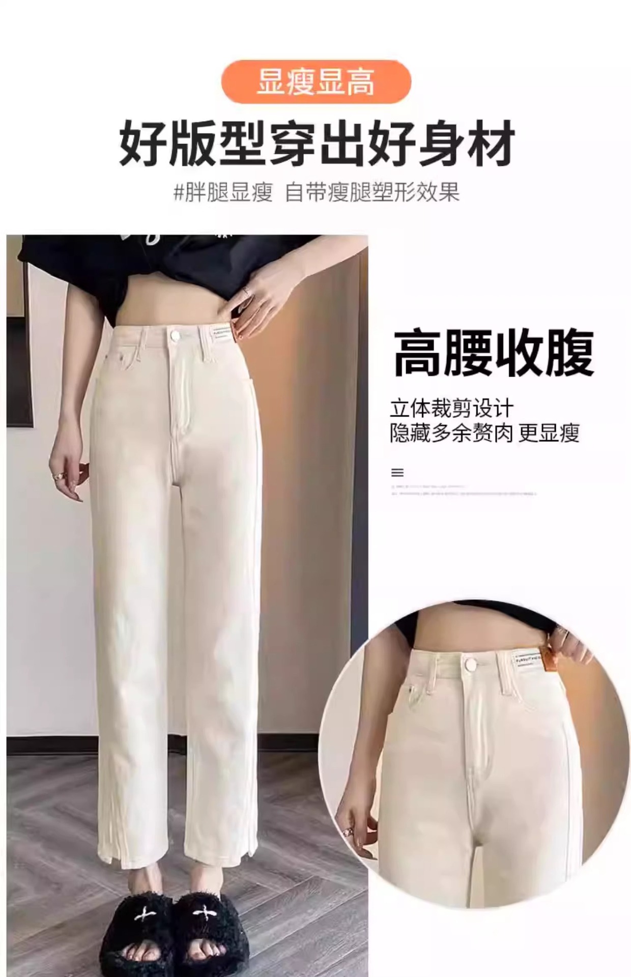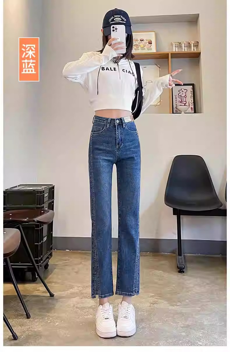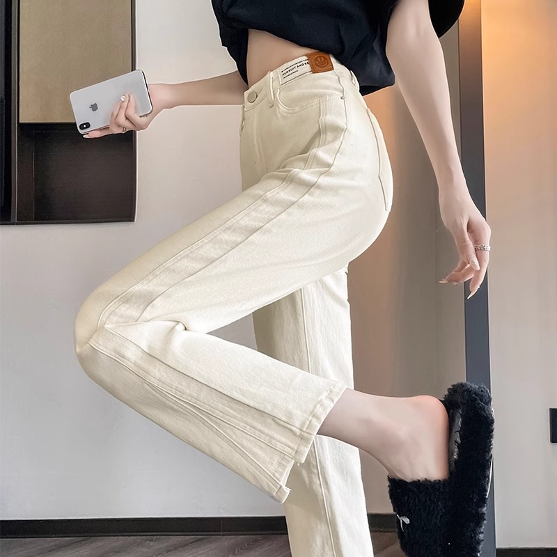 미색 스모크 파이프 데님 팬츠 여성용 2026 봄 가을 기모 하이웨이스트 쁘띠 사이즈 9부 슬림핏 화이트 스트레이트 팬츠스토어 가기