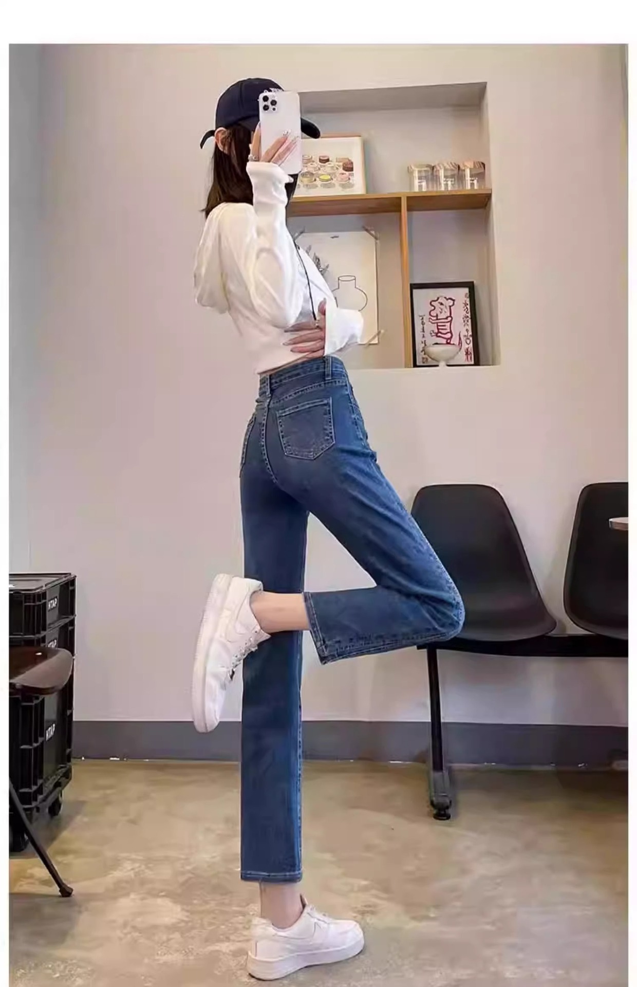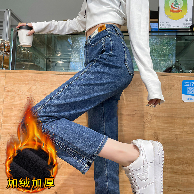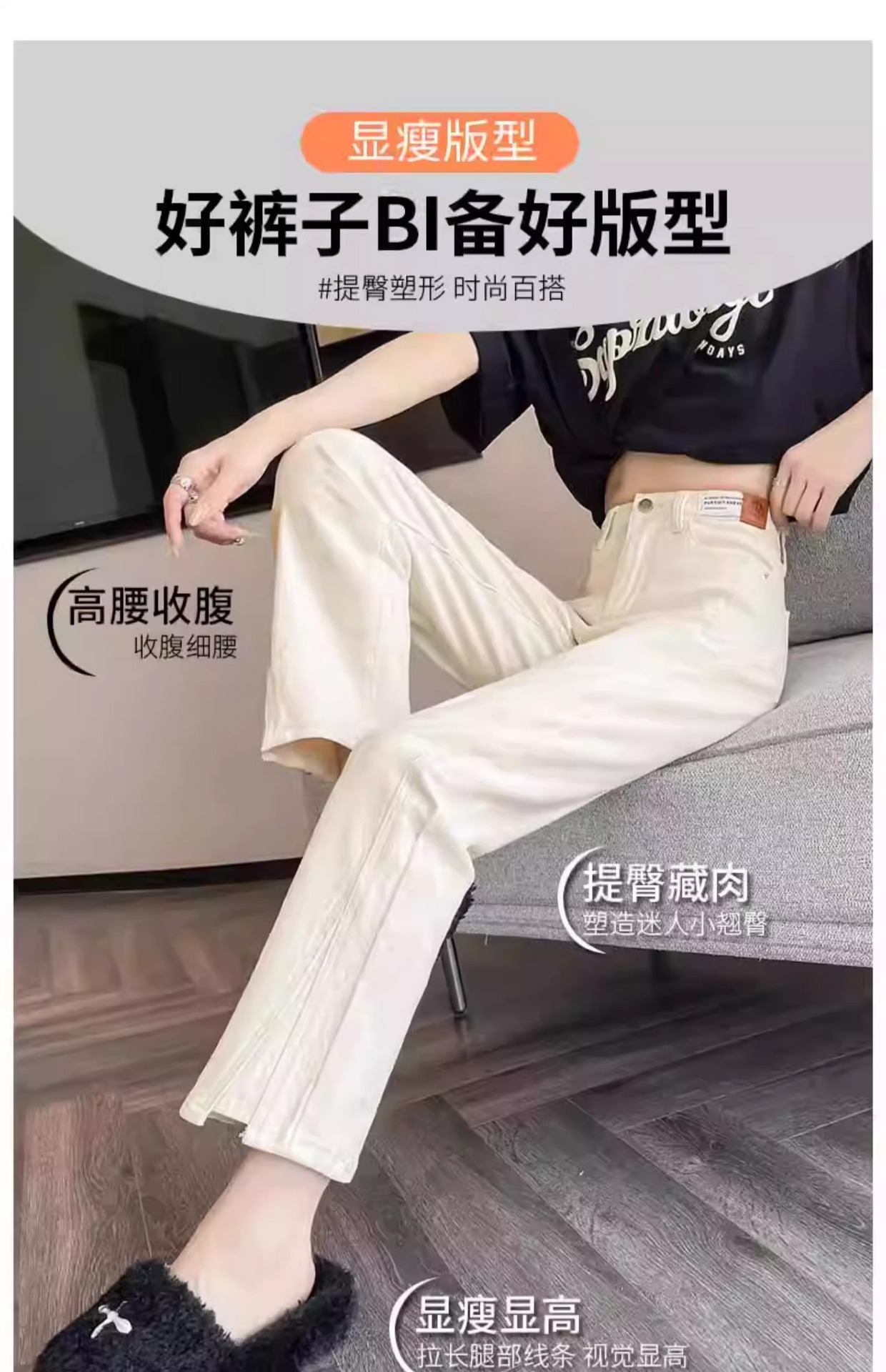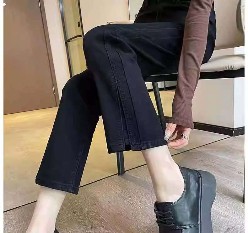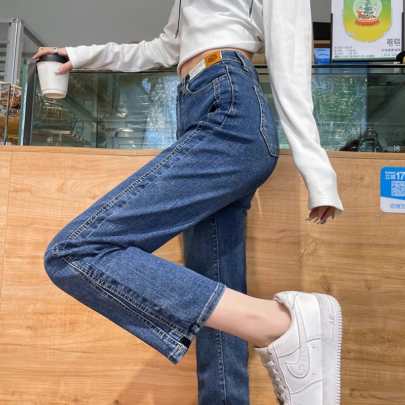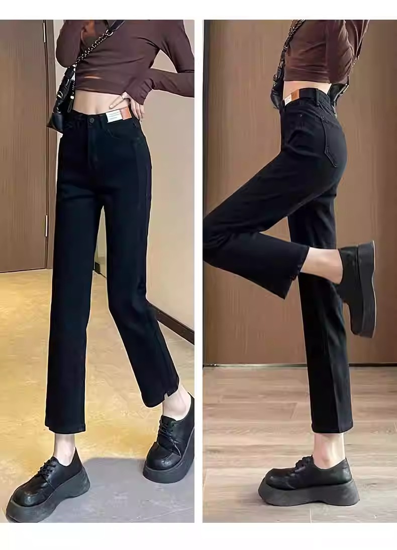 미색 스모크 파이프 데님 팬츠 여성용 2026 봄 가을 기모 하이웨이스트 쁘띠 사이즈 9부 슬림핏 화이트 스트레이트 팬츠스토어 가기