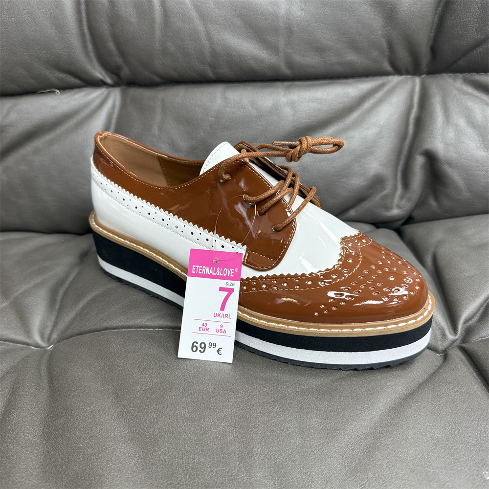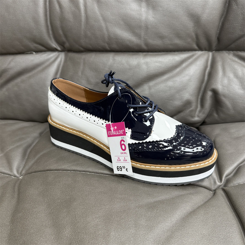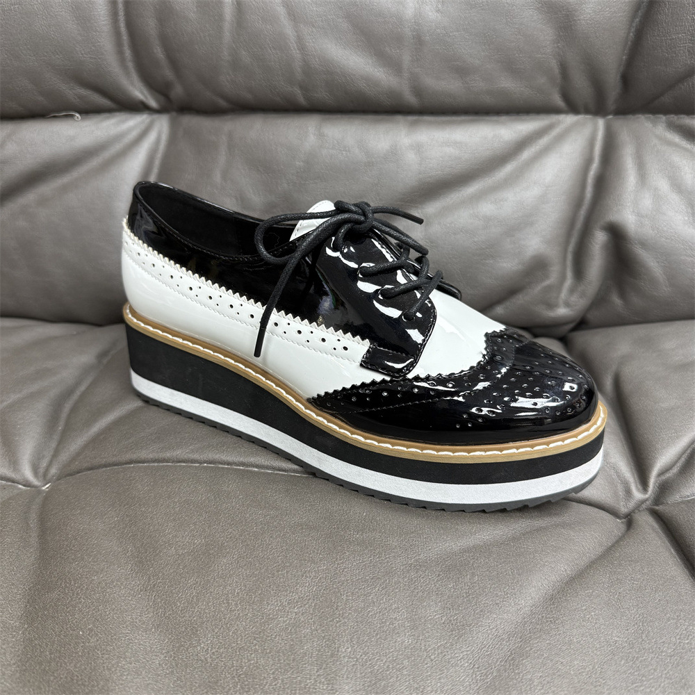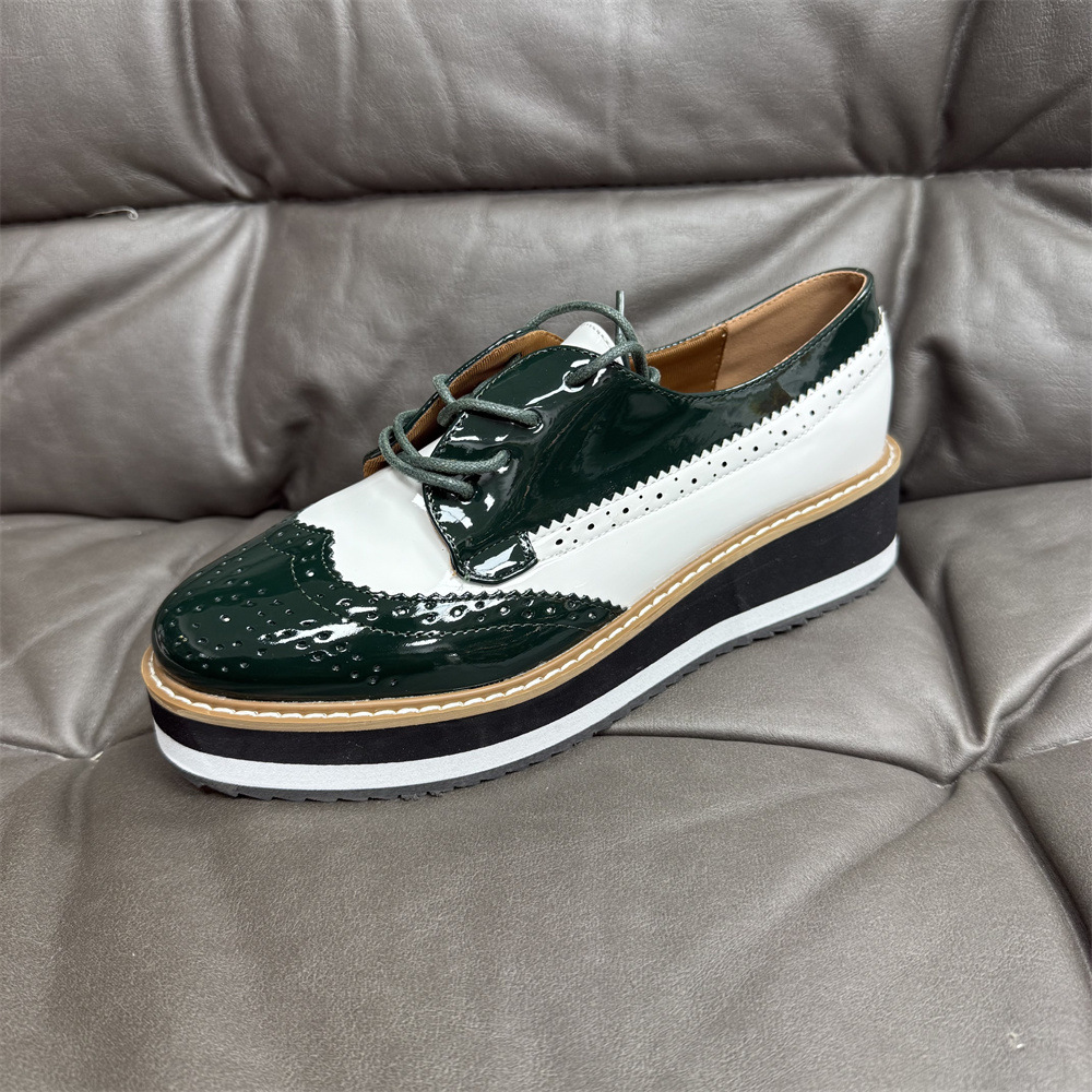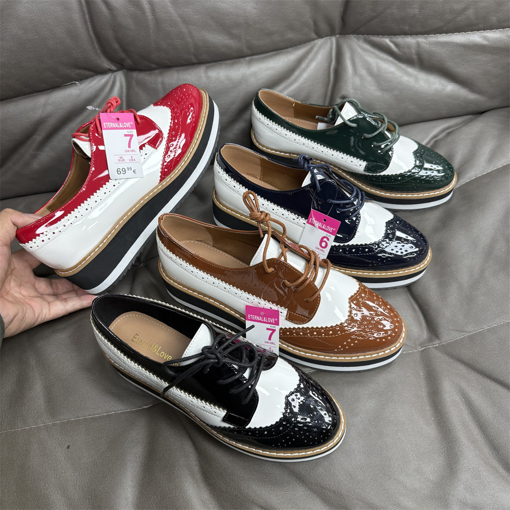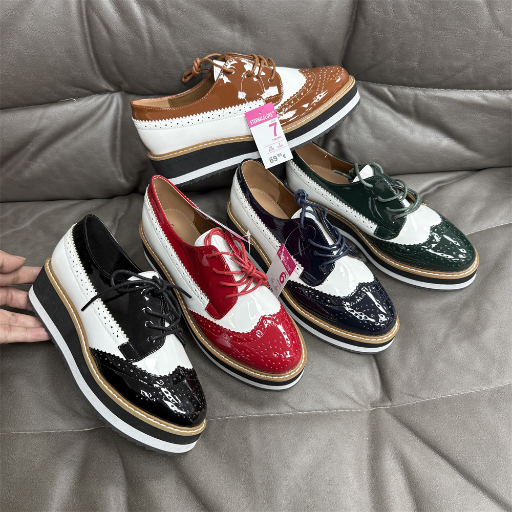 대외 무역 영국 스타일 브록 신발 클래식 패션 라운드 발가락 작은 가죽 신발 컬러 매칭 올 매치 싱글 레이어 신발 빈티지 두꺼운 밑창 여성 신발