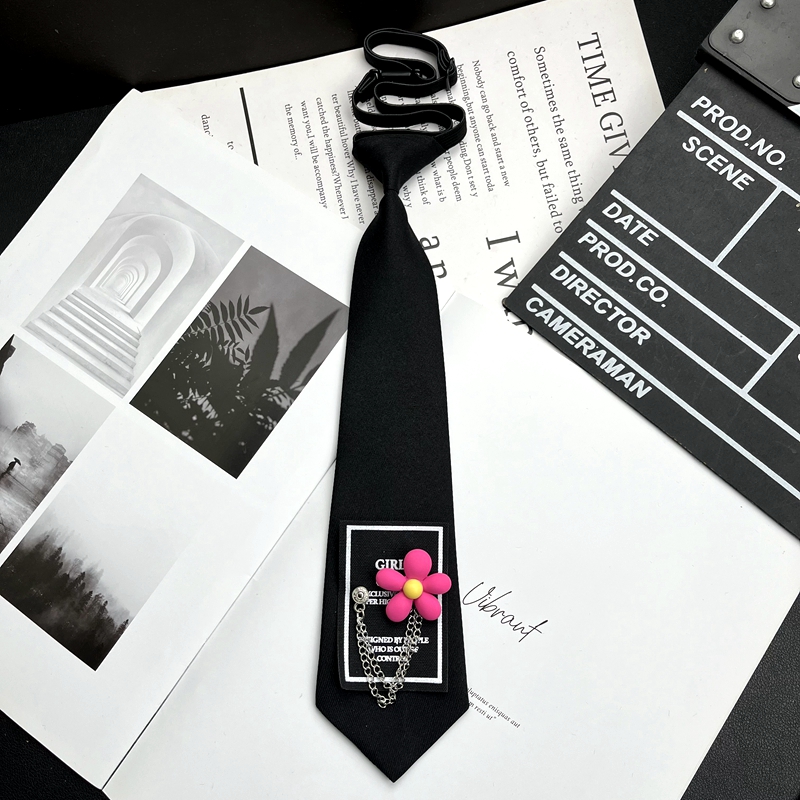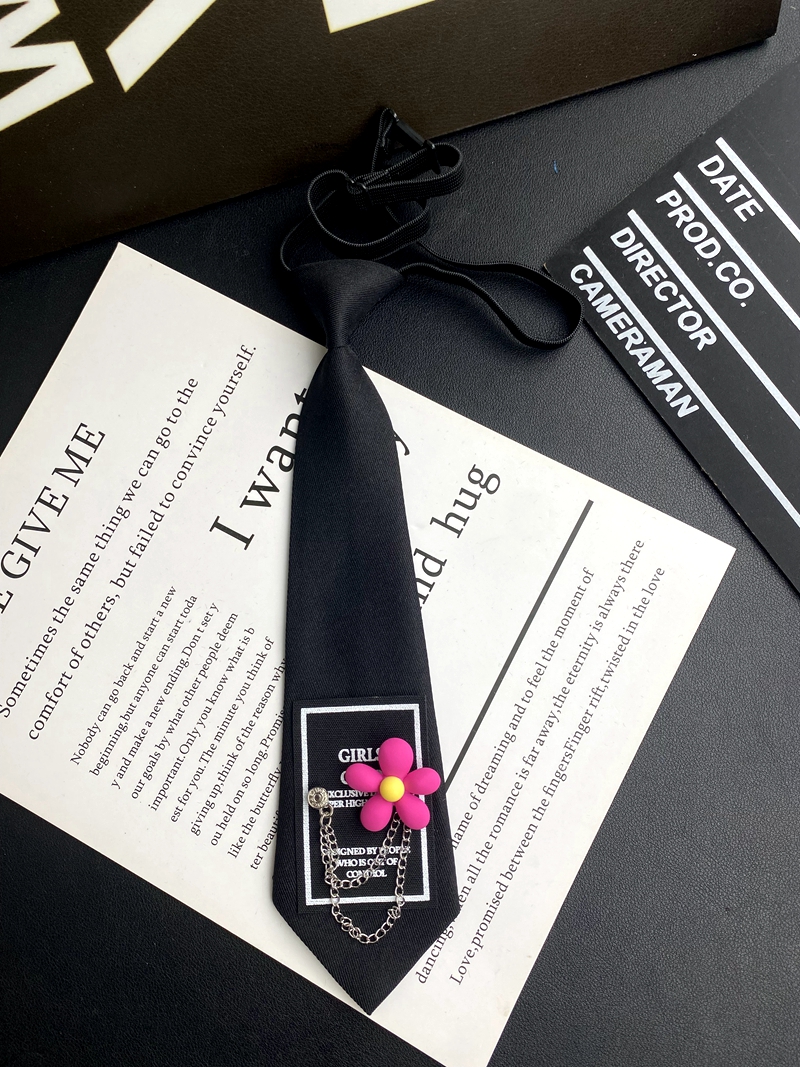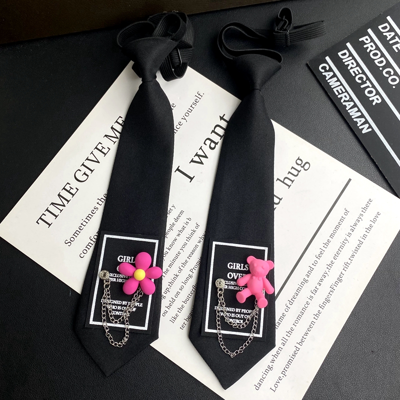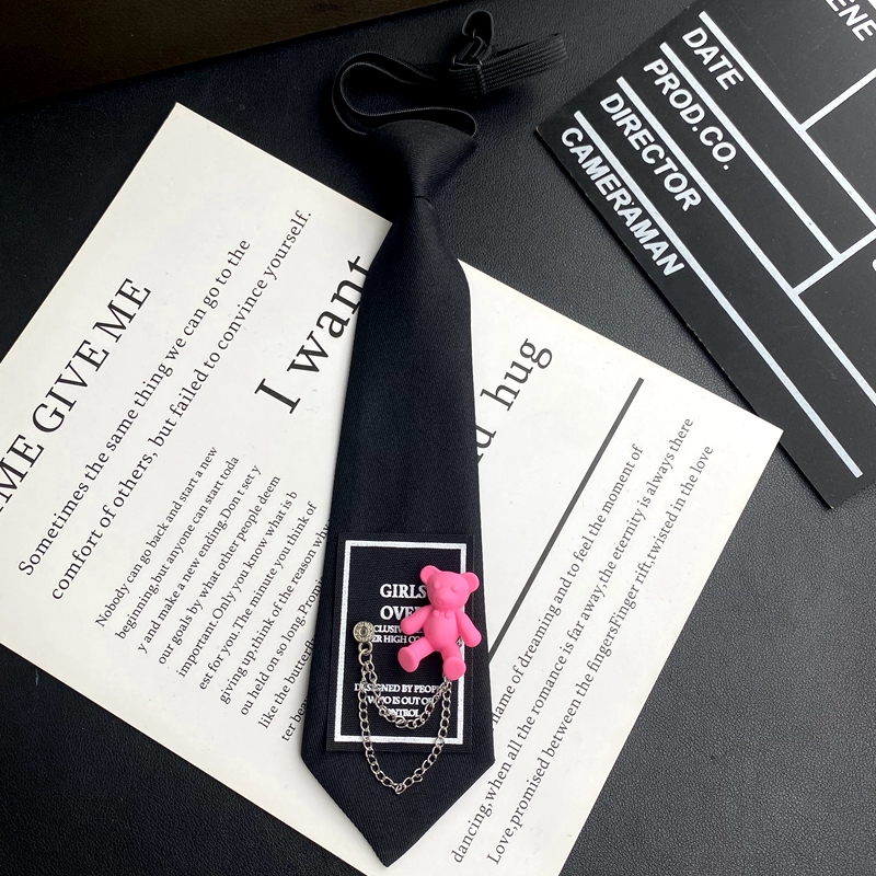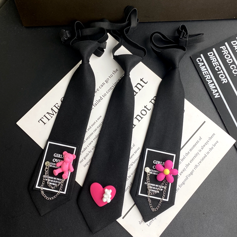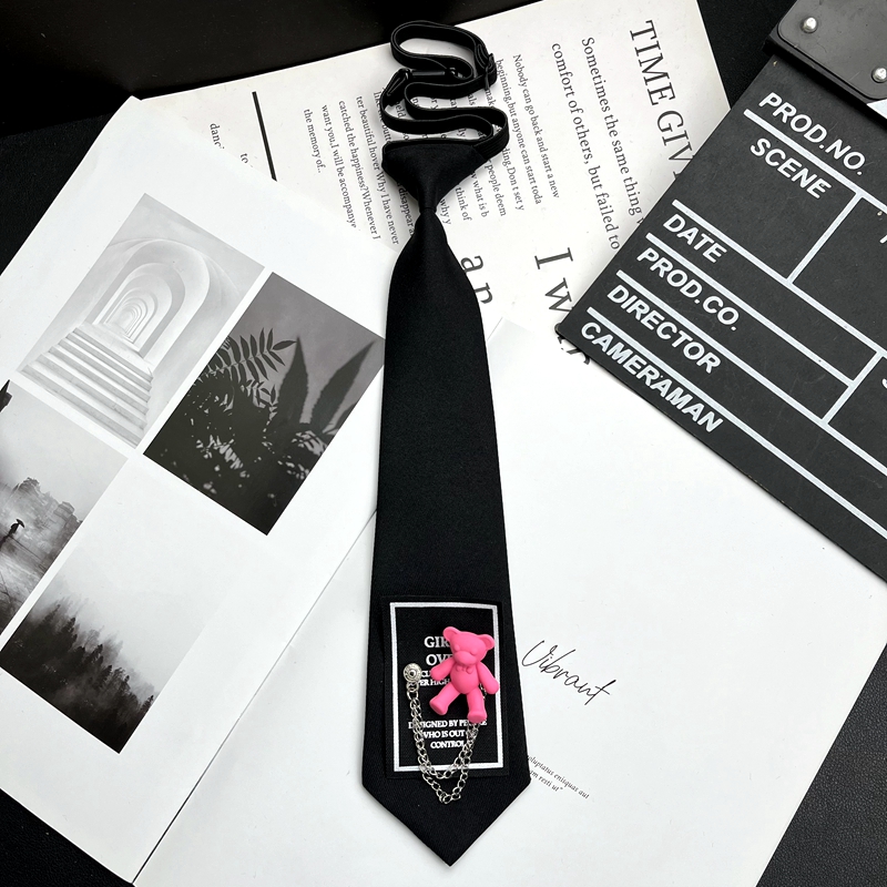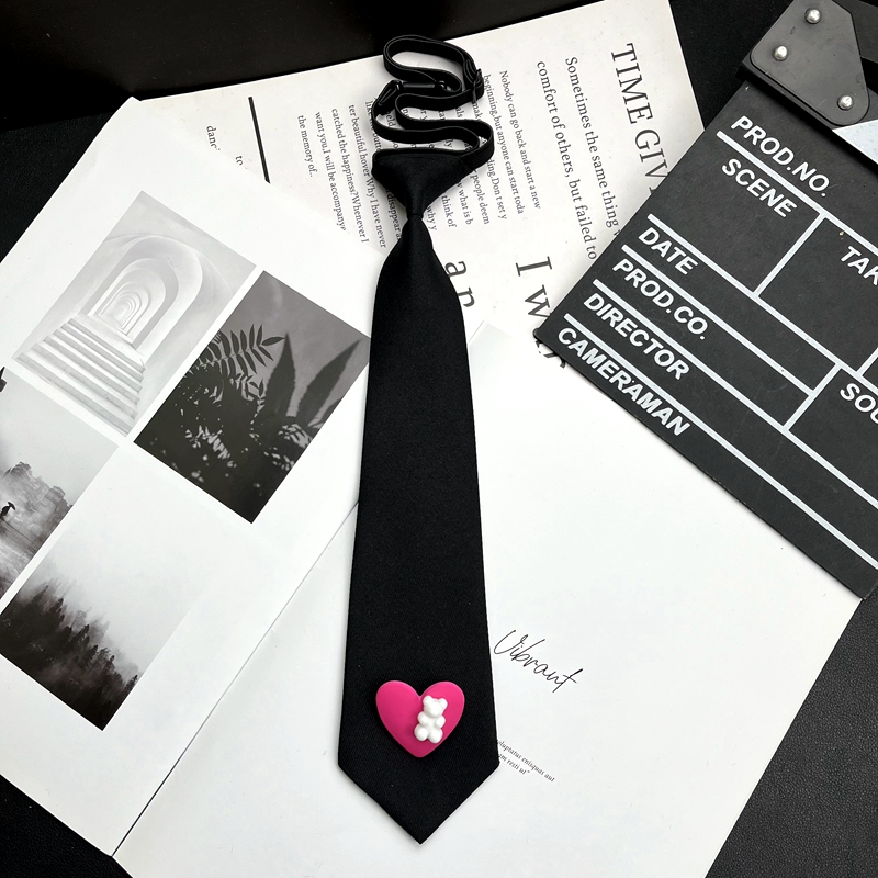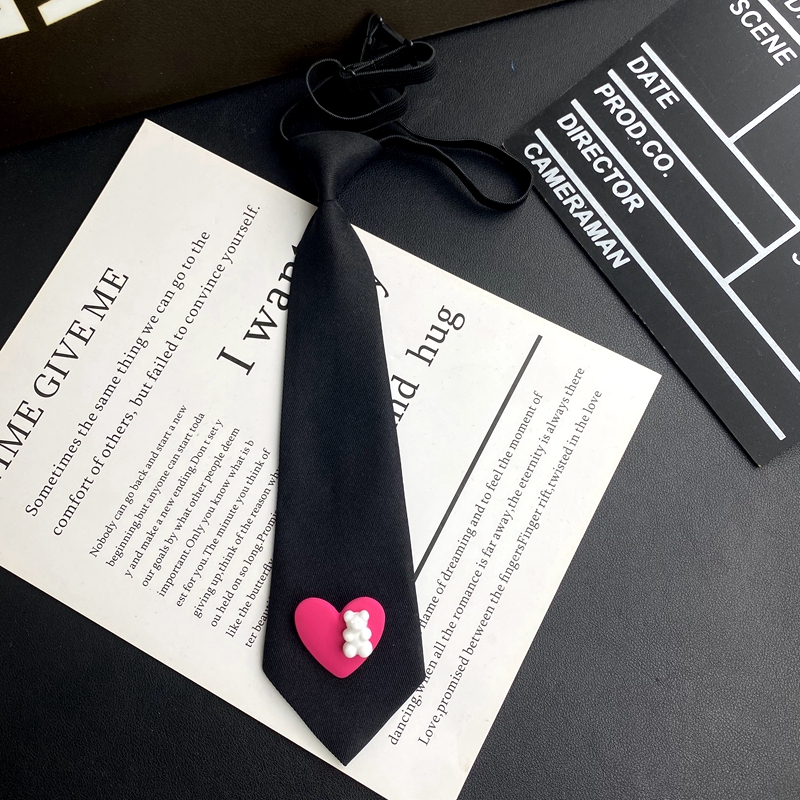 原创粉小熊爱心链条黑色领带免打结jk制服学院风百搭个性女ins潮스토어 가기