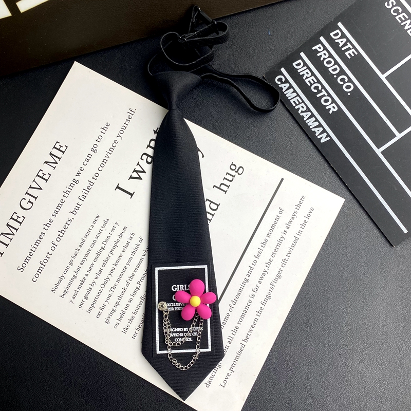 • 블랙 타이*핑크 플라워 체인*노타이 28cm