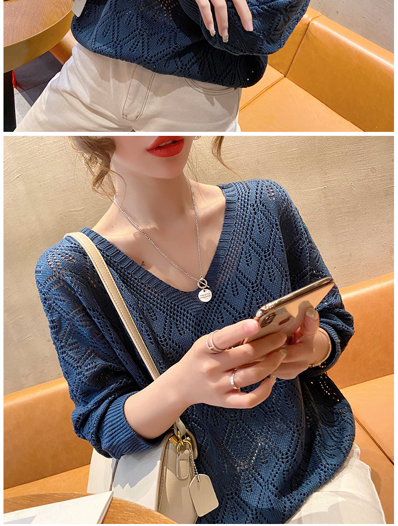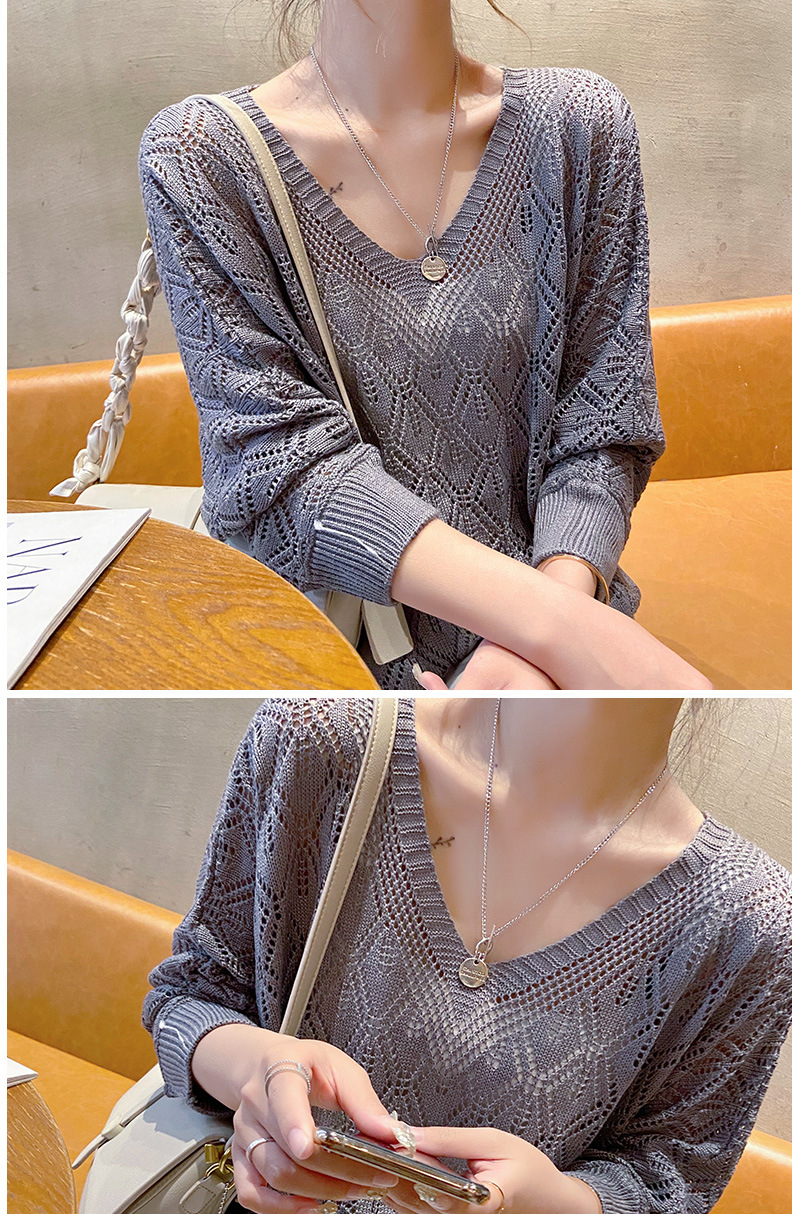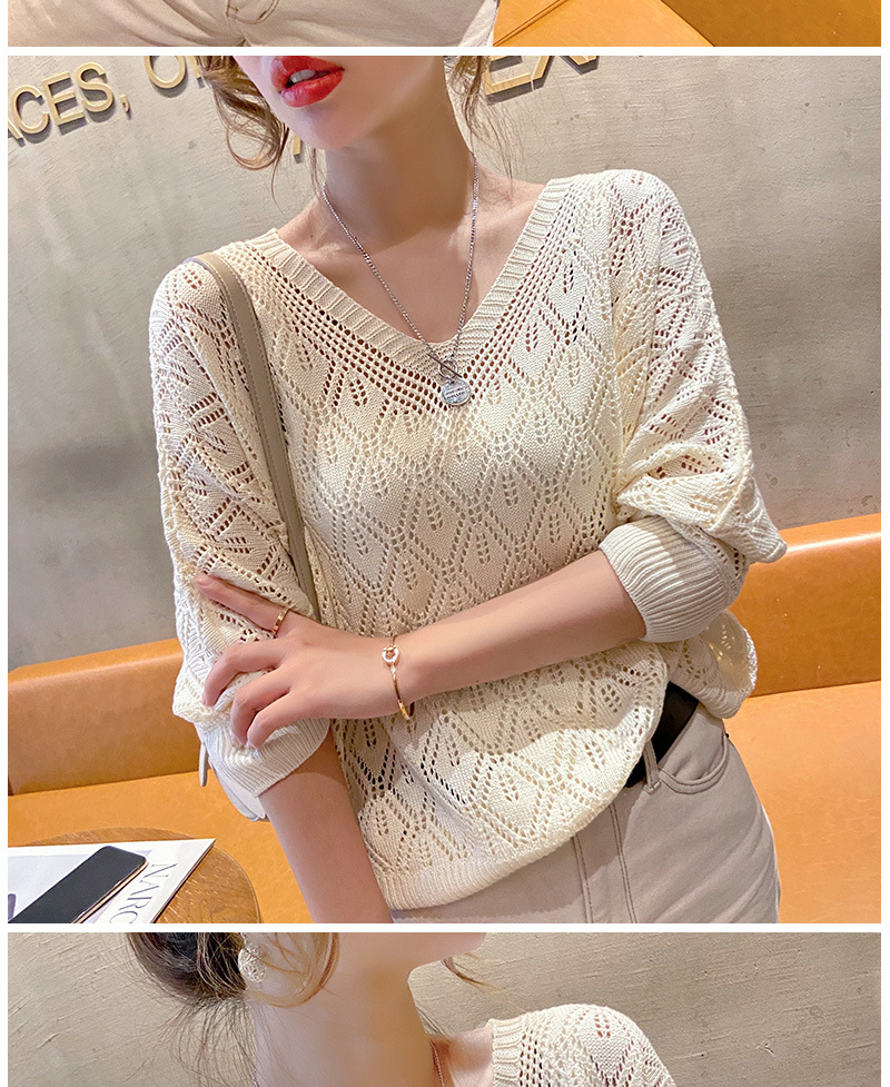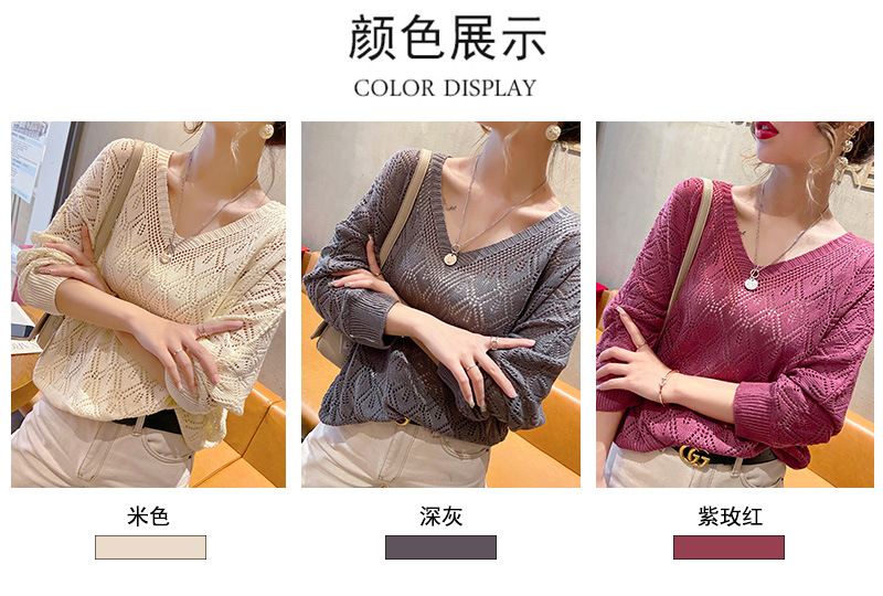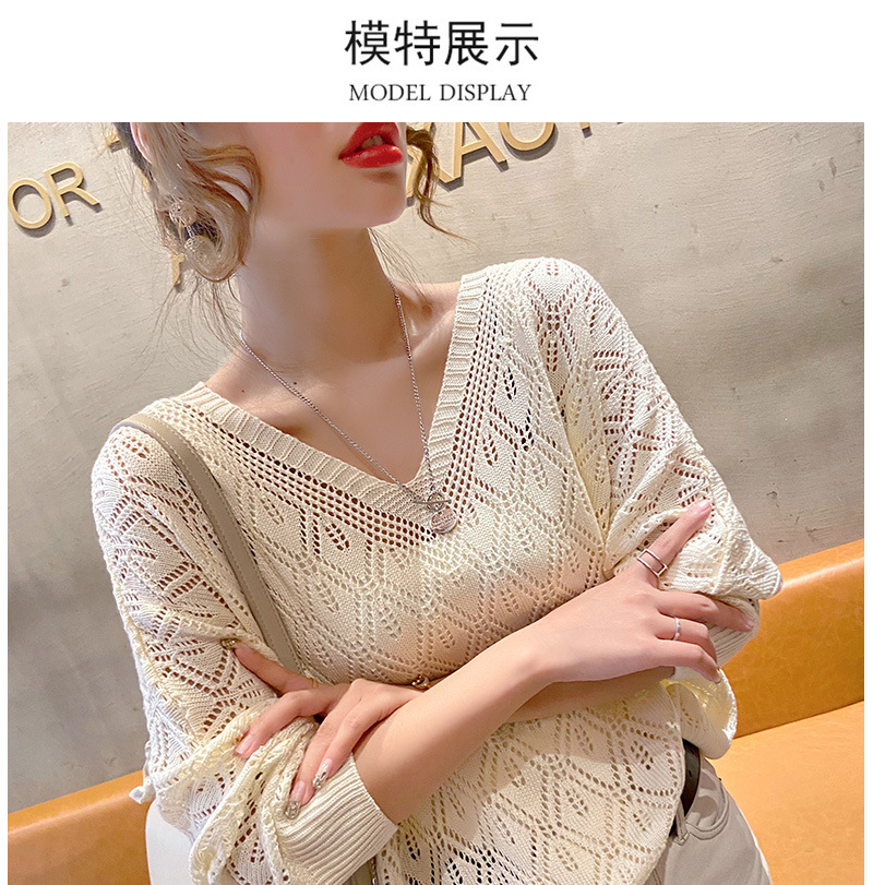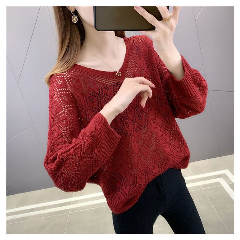 V-Neck 크로 셰 뜨개질 중공 니트 블라우스 여성용 루즈 얇은 2025 봄 루스 캣 셔츠 쇼트 탑스토어 가기