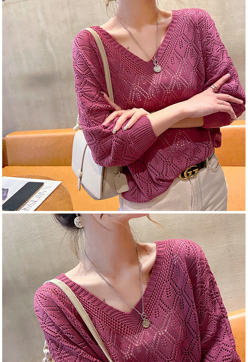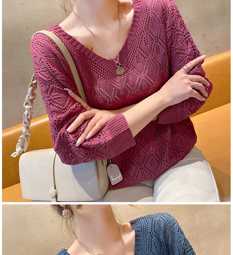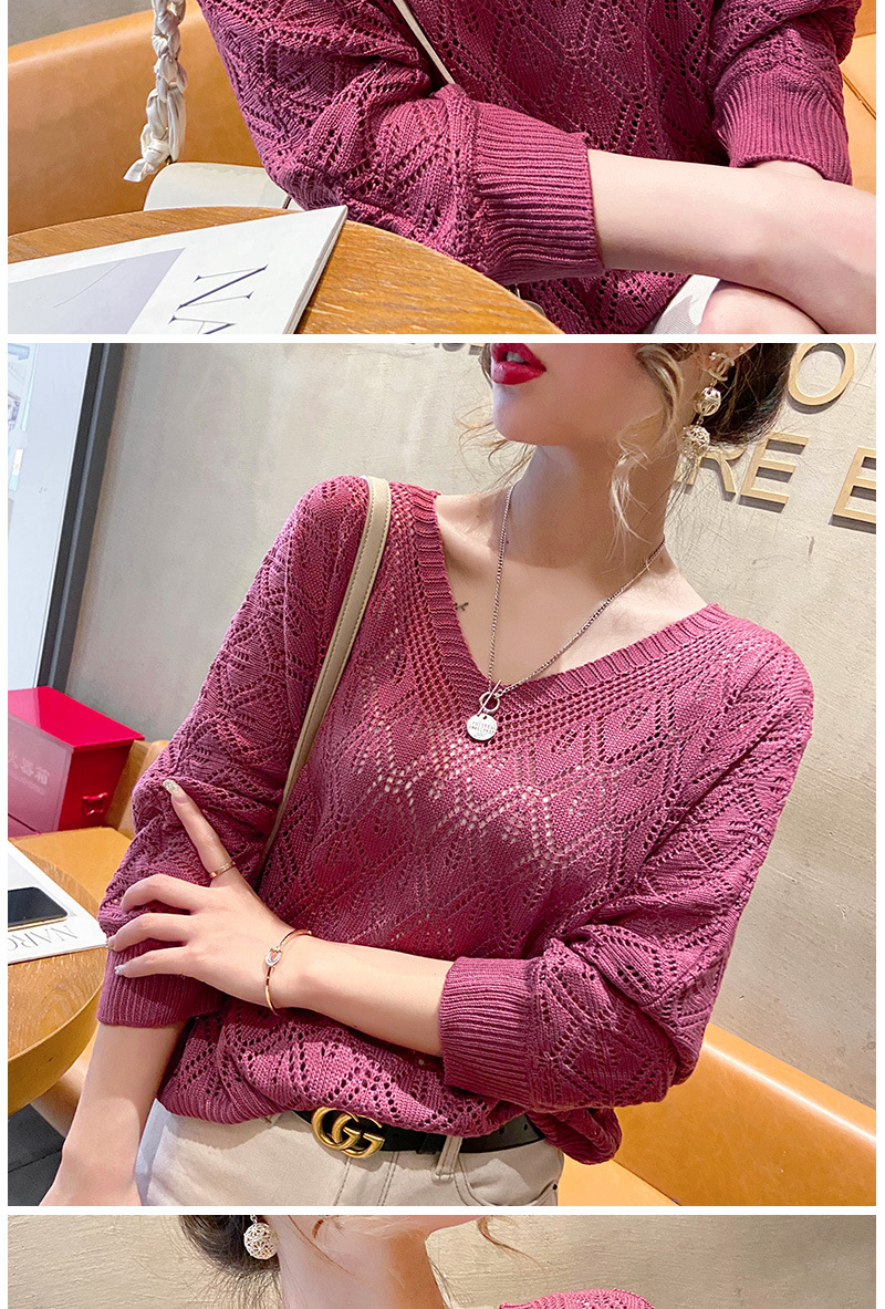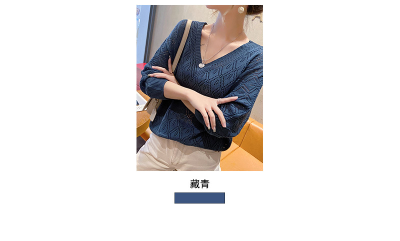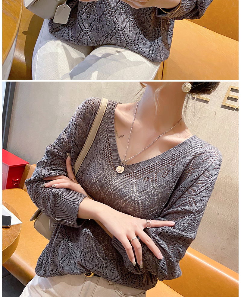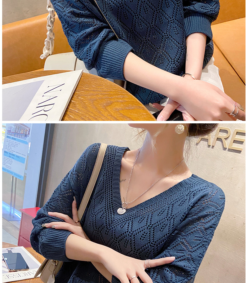 V-Neck 크로 셰 뜨개질 중공 니트 블라우스 여성용 루즈 얇은 2025 봄 루스 캣 셔츠 쇼트 탑스토어 가기