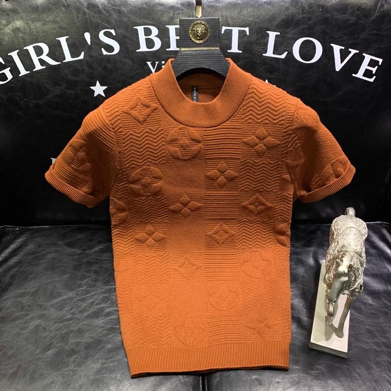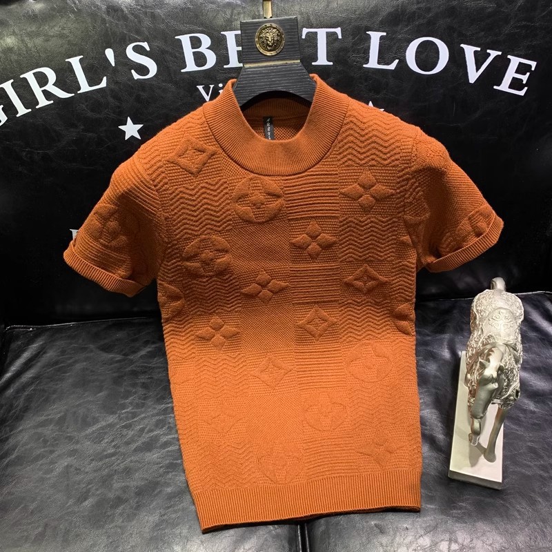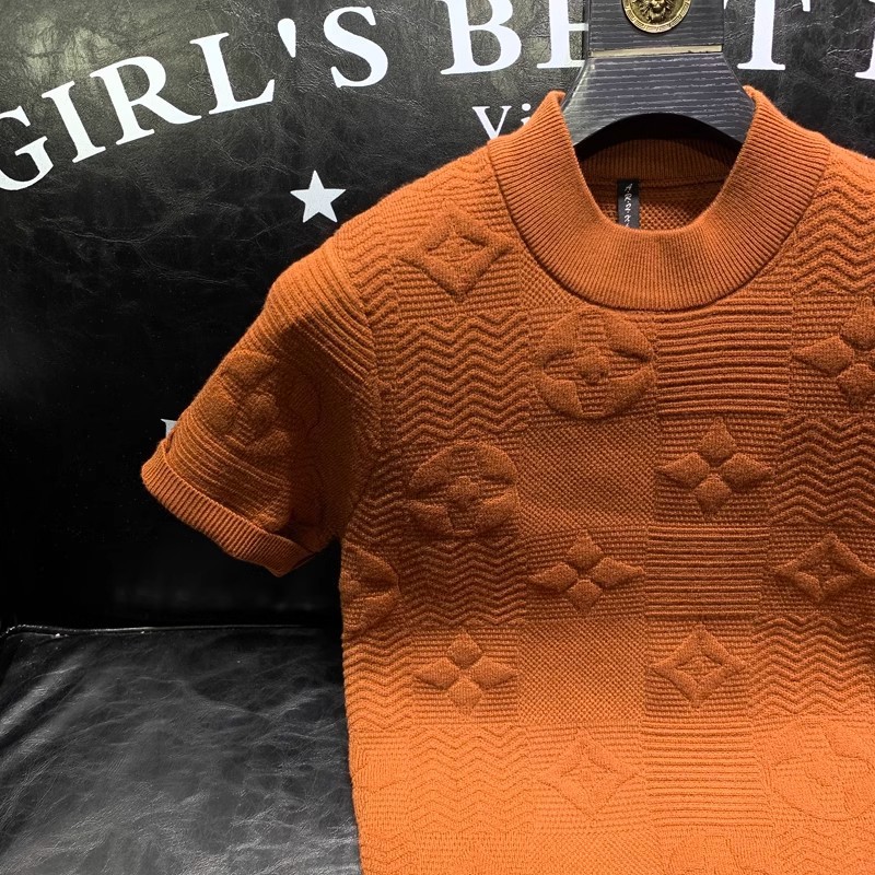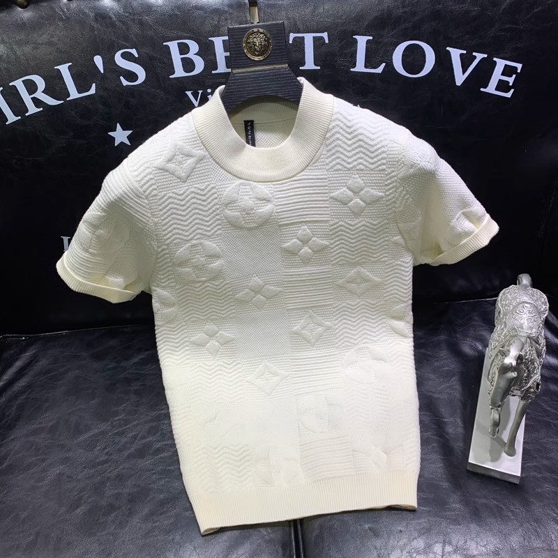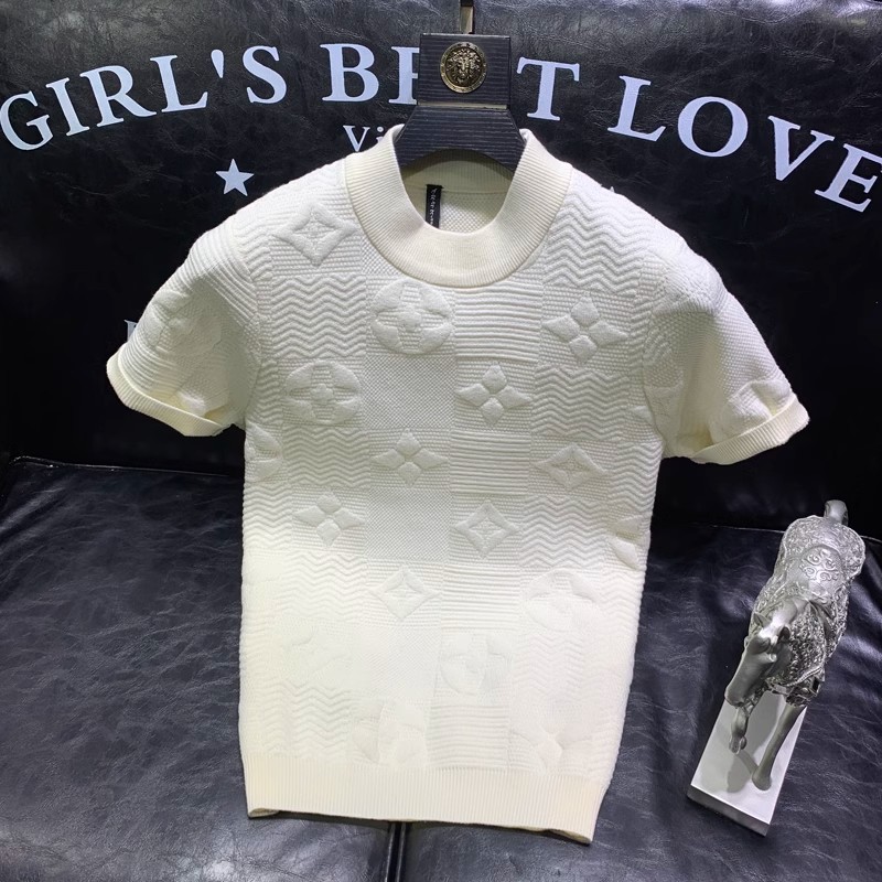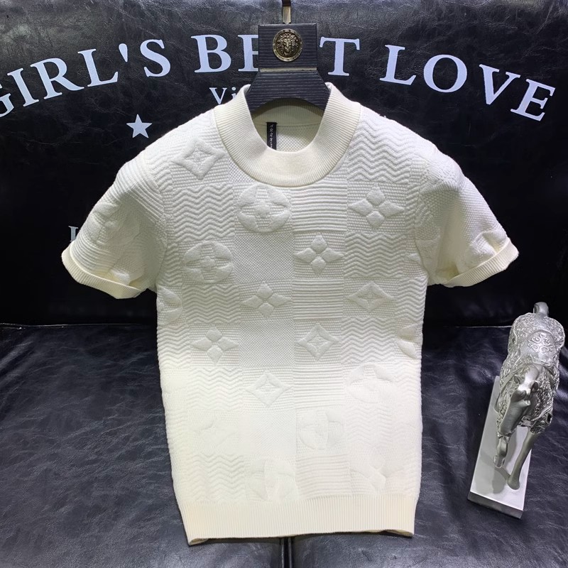 봄과 여름 새로운 반팔 스웨터 남성용 니트웨어 반소매 베이스 크루 넥 자카드 패턴 트렌디 풀오버 탑스토어 가기