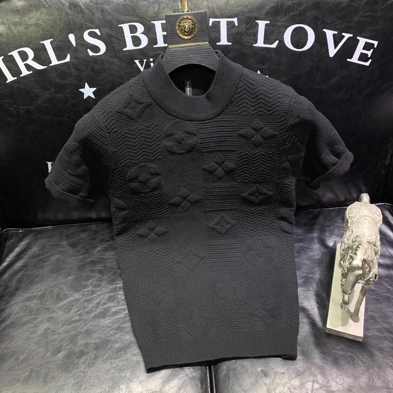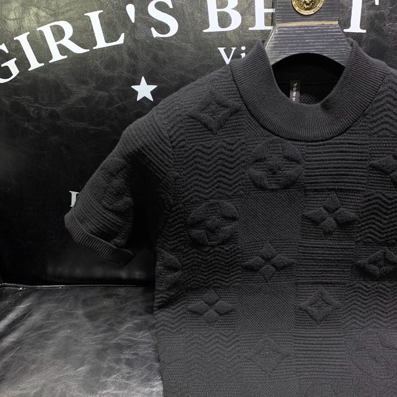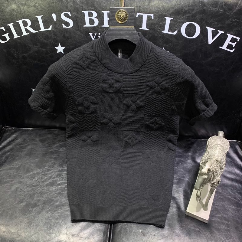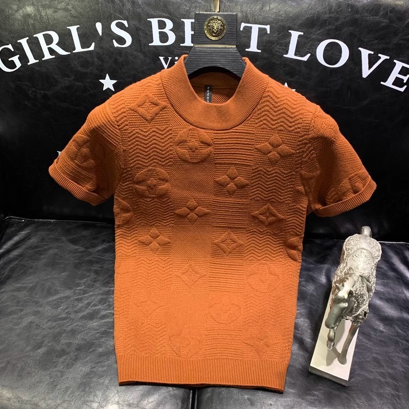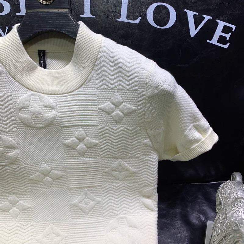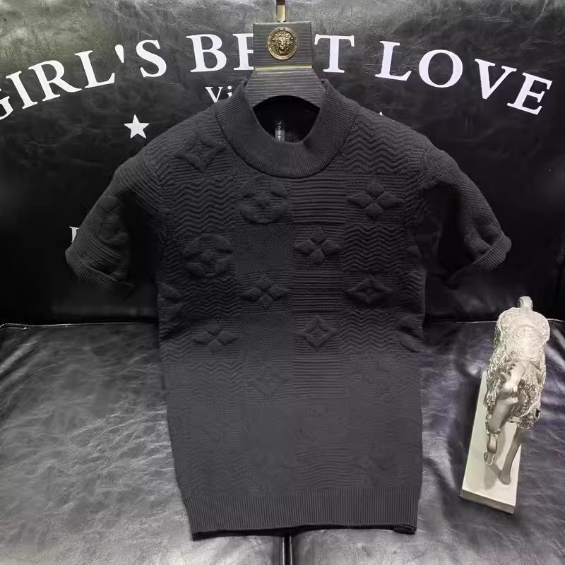 봄과 여름 새로운 반팔 스웨터 남성용 니트웨어 반소매 베이스 크루 넥 자카드 패턴 트렌디 풀오버 탑스토어 가기