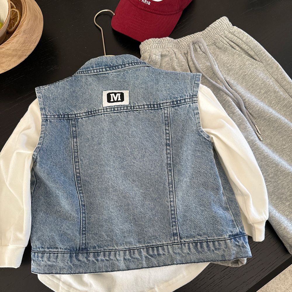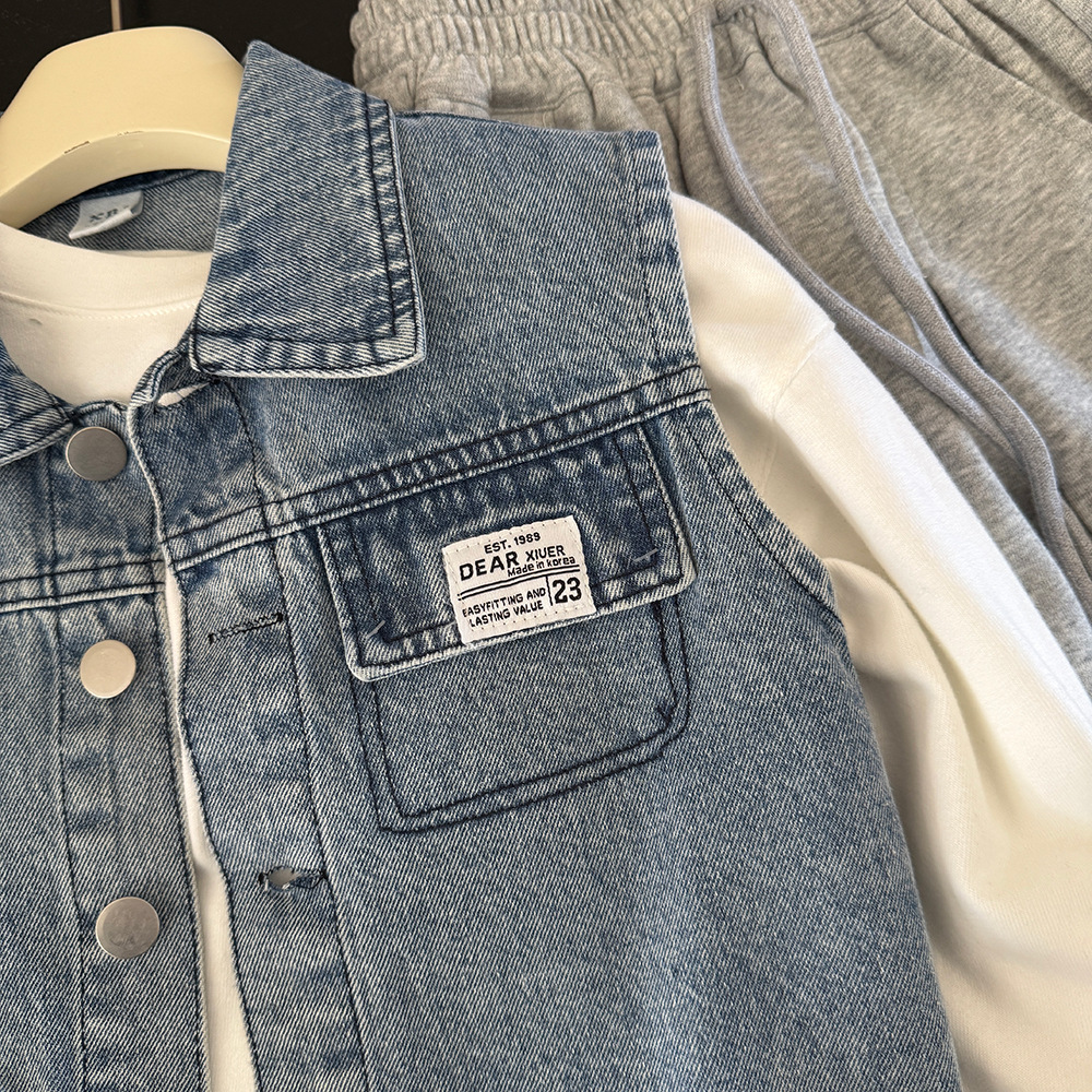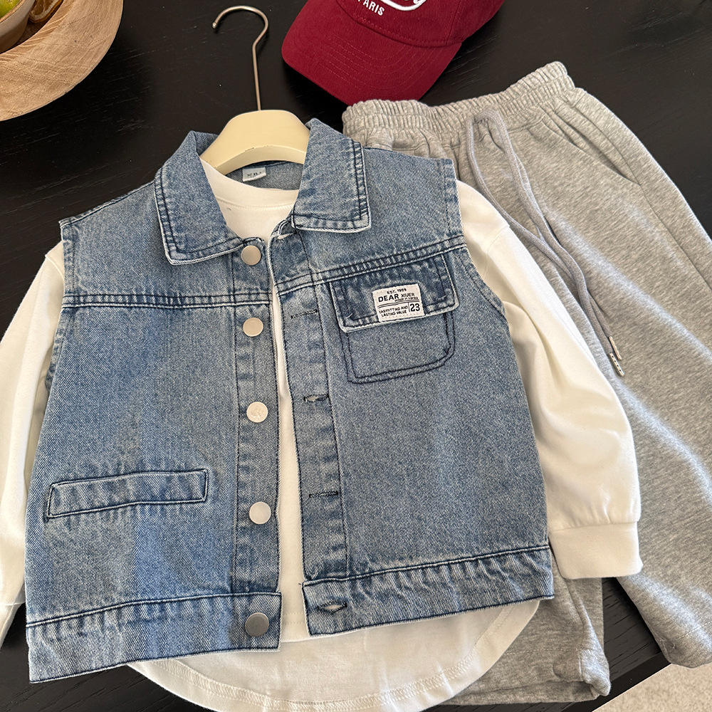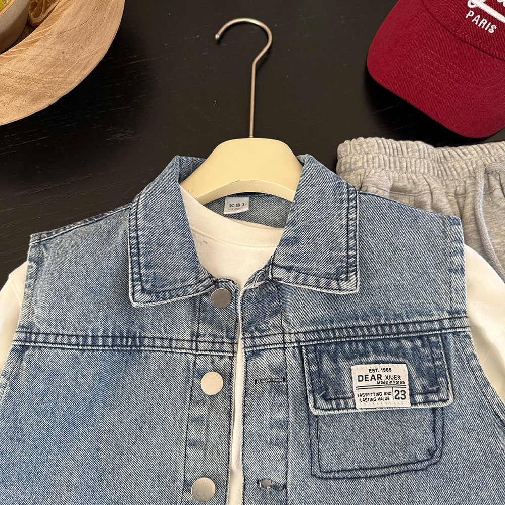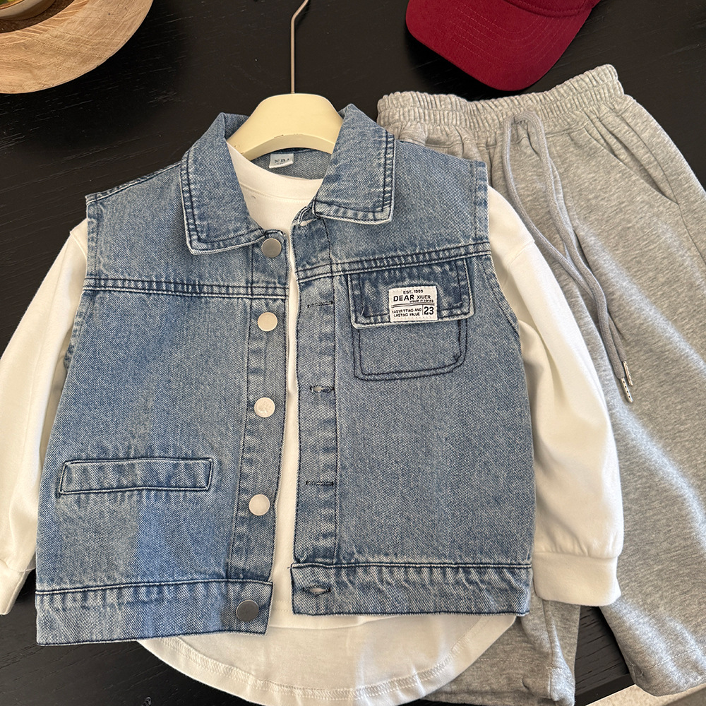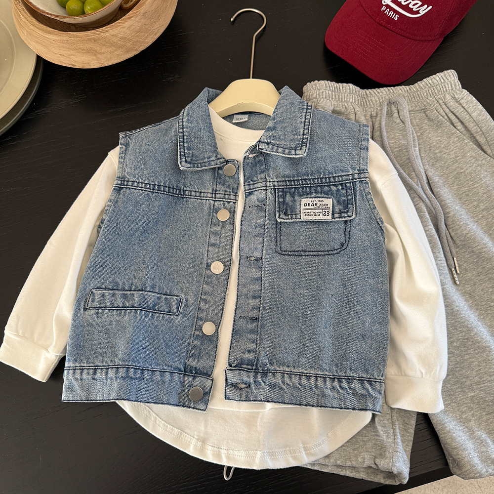 남학생 '데님 조끼 2025 봄 신식 소년' 중소 어린이 한국식 봄 · 가을 바깥, 어린이 조끼를 입고 최고 트렌디스토어 가기