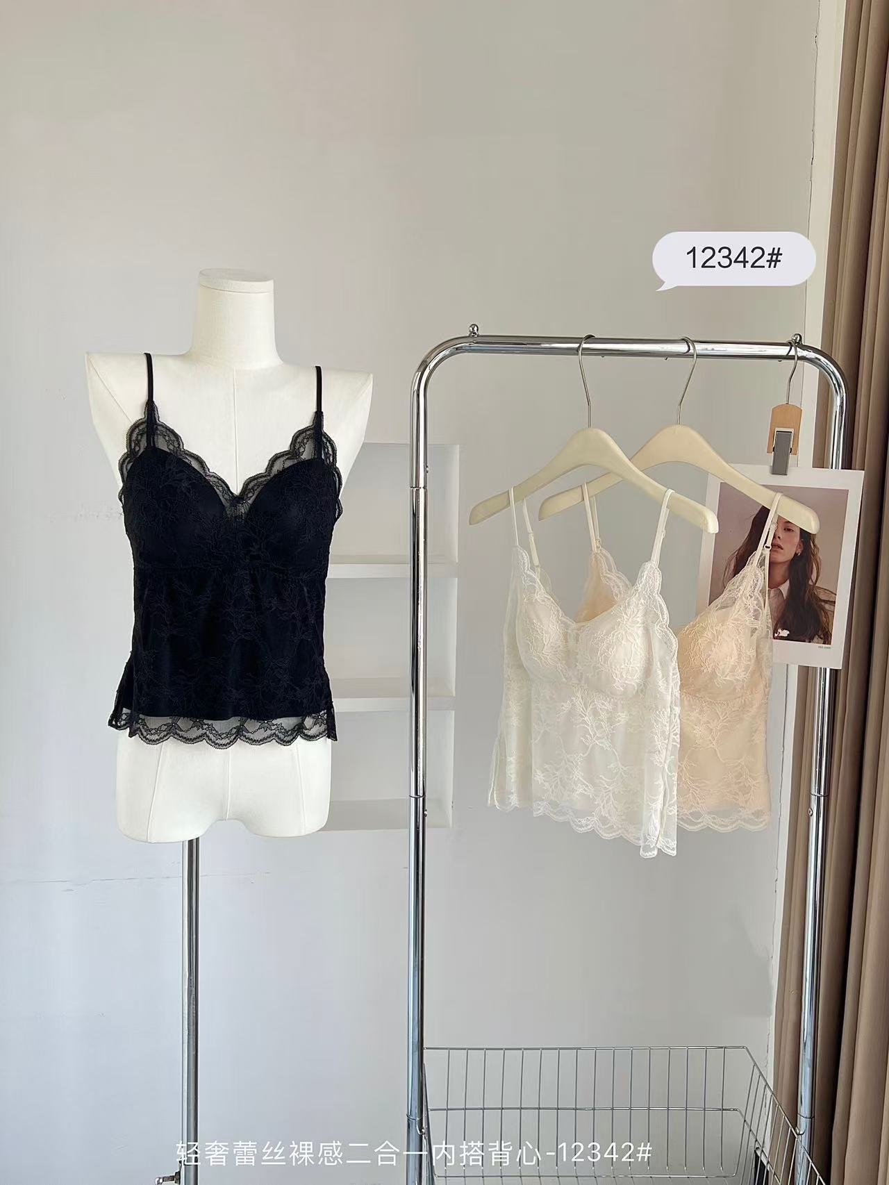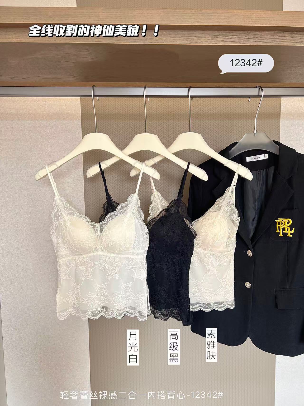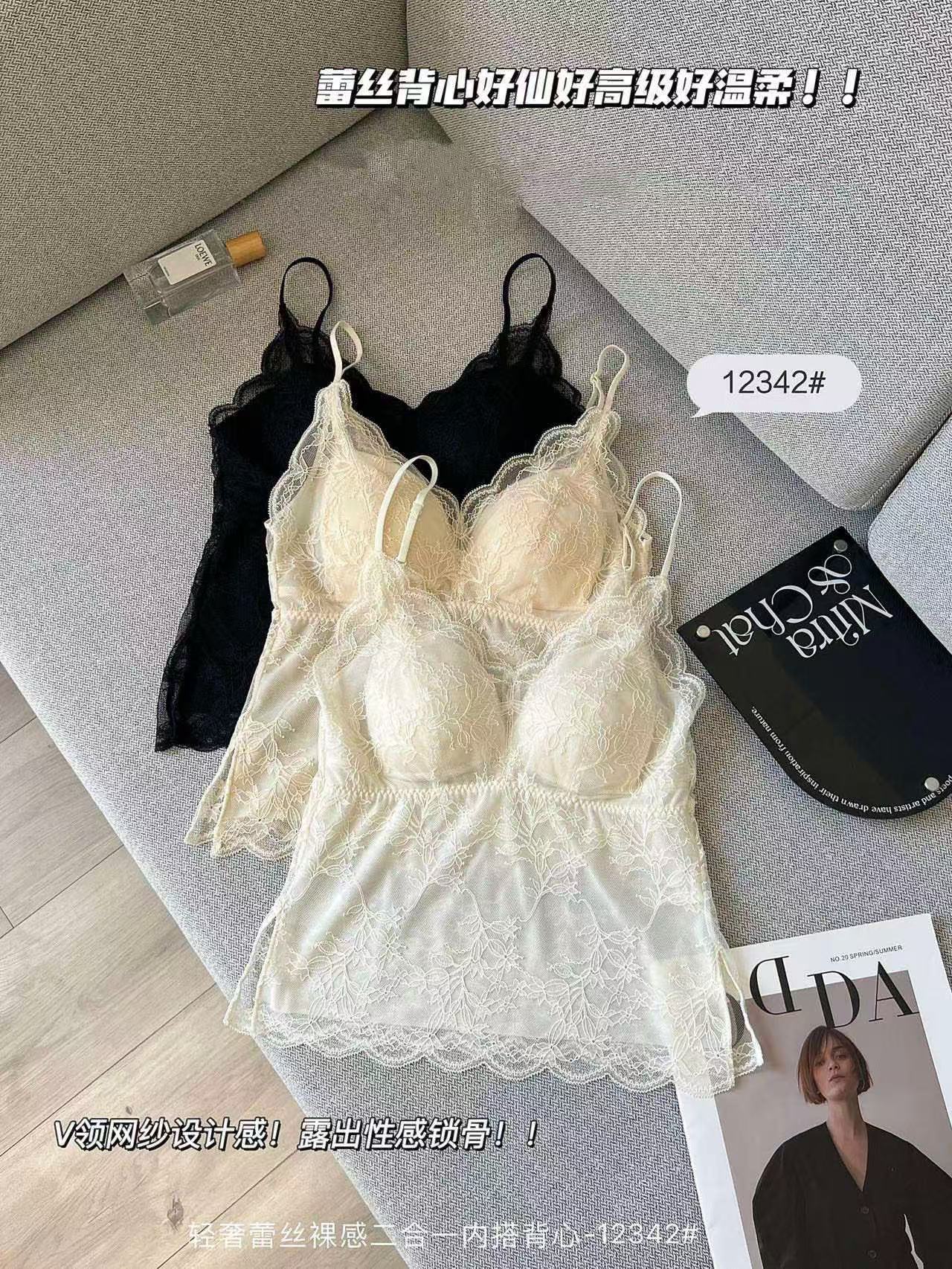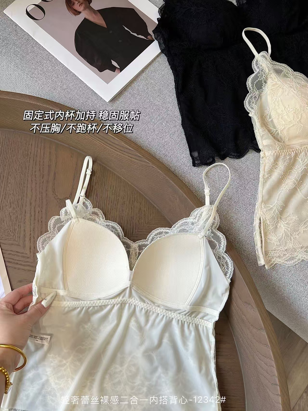 Meiyuexin 12342 프랑스 엔트리 럭셔리 레이스 알몸 고정 원피스 카미솔 경량 통기성 슬림 핏 인테리어 조끼스토어 가기