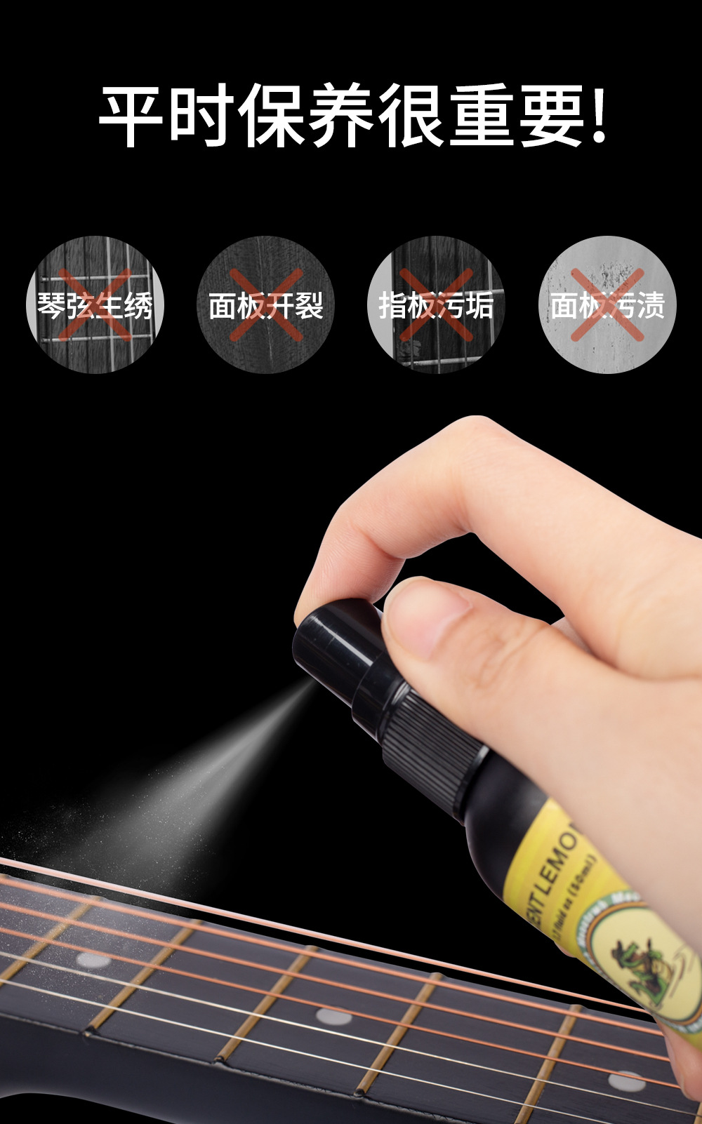 공장 직접 청소 지판 레몬 오일 기타 관리 유지 보수 류트 guzheng 우쿨렐레 현 녹