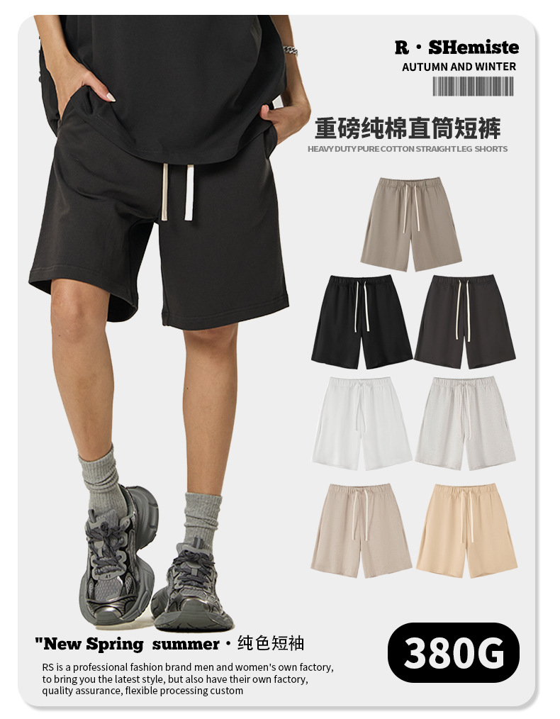 RS 남자 | 2025 국경 380G 코튼 헤비 남자 반바지 FOG 미국 드로우 스트링 스트레이트 배럴 스포츠 반바지