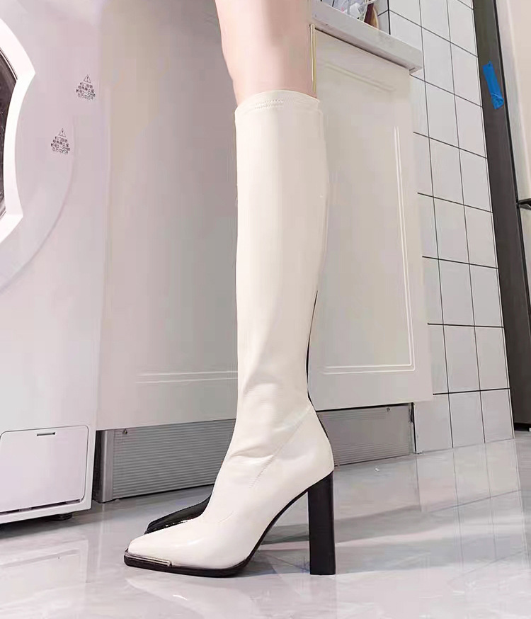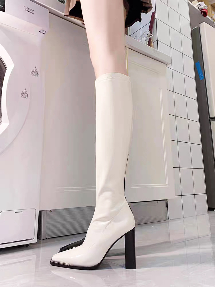 켄도우와 같은 스타일의 2025 가을 겨울 신상 스퀘어토 롱부츠, 가죽 부츠, 여성용 롱부츠, 굽이 두꺼운 신축성 있는 슬림 부츠