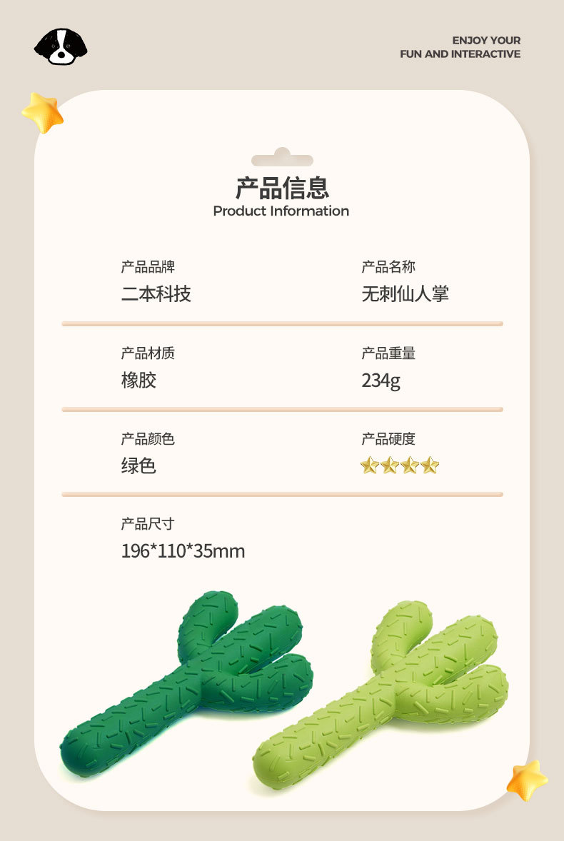 跨境洁齿磨牙狗狗仿真玩具仙人掌自嗨解闷小狗橡胶大型犬宠物用品