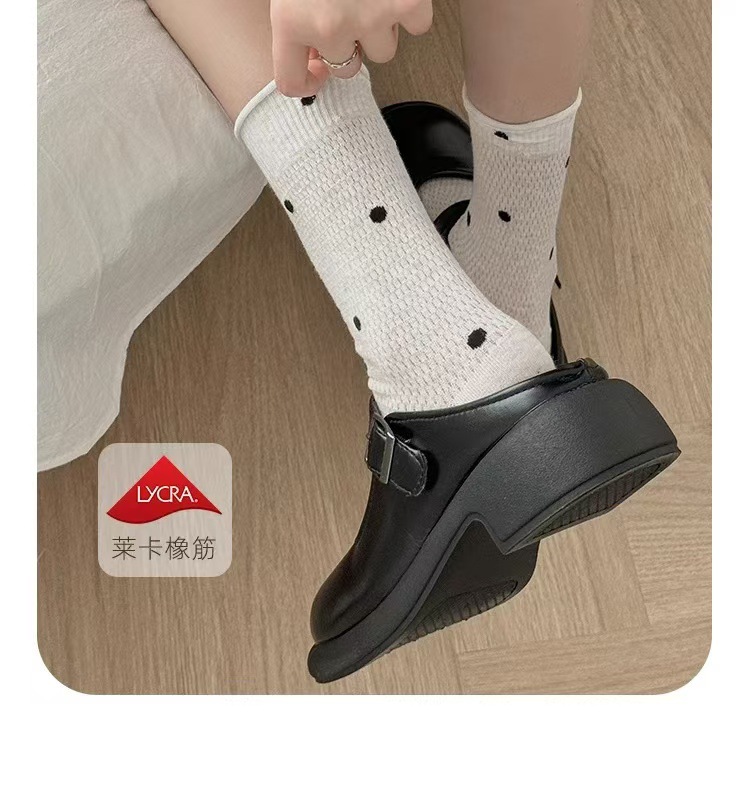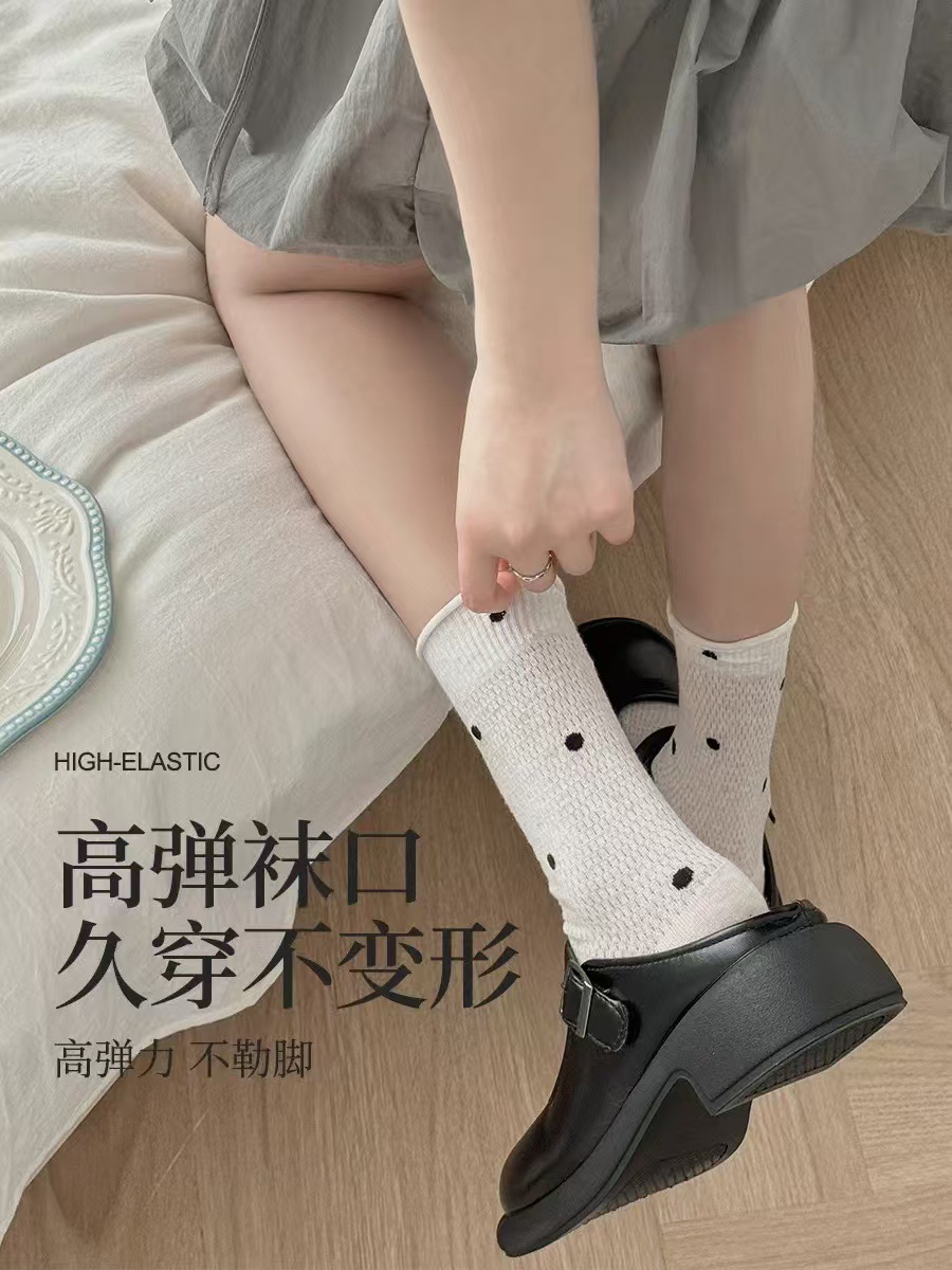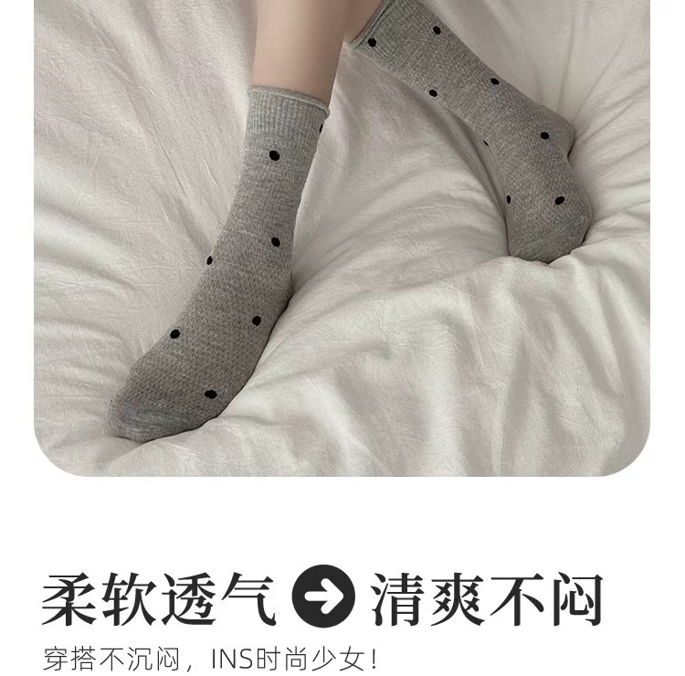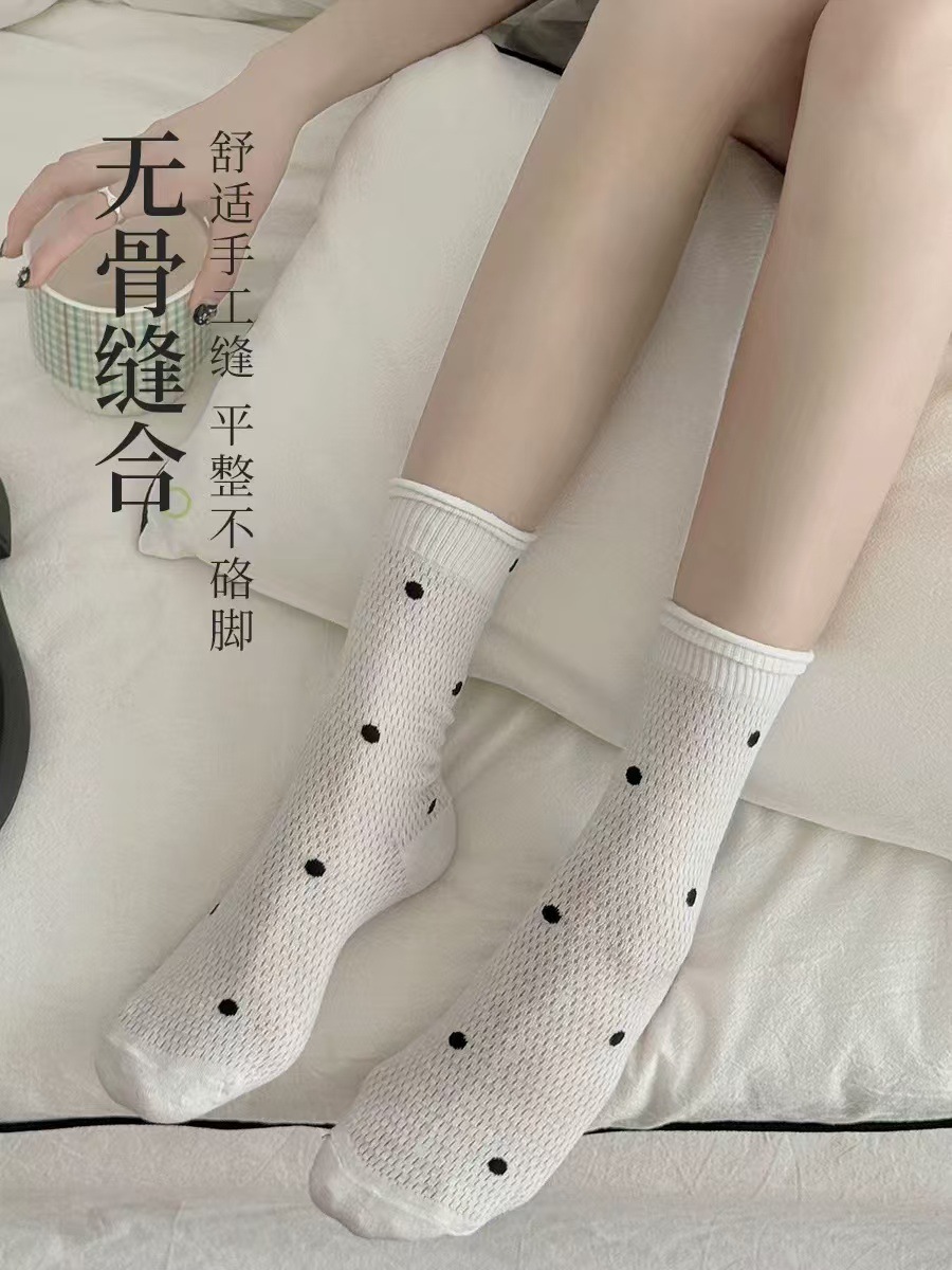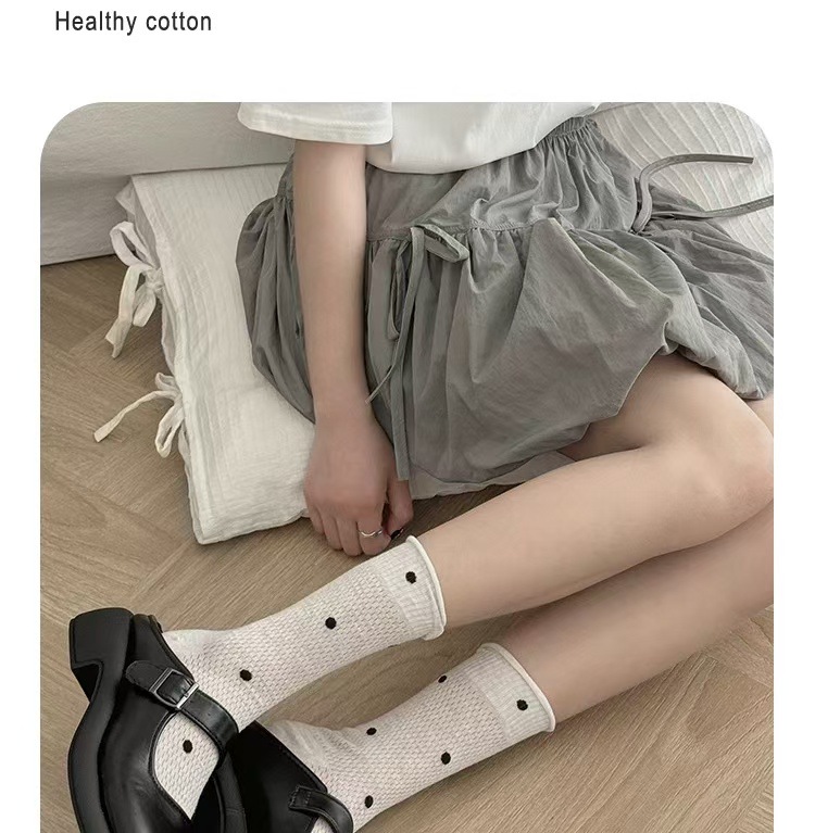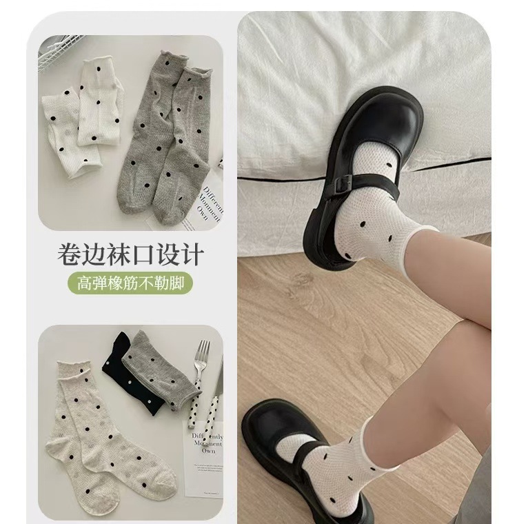 봄과 여름 Ins 스타일 달콤한 미드 튜브 여성용 양말 얇은 할로우 통기성 빗 코튼 커드 웨이브 도트 미드 튜브 스택 양말