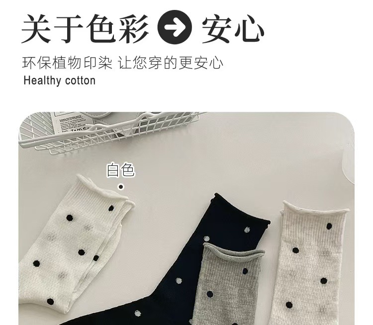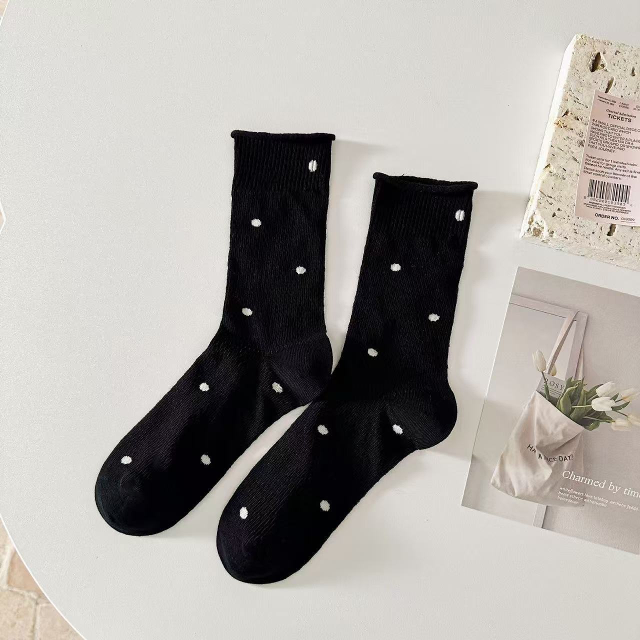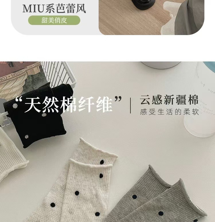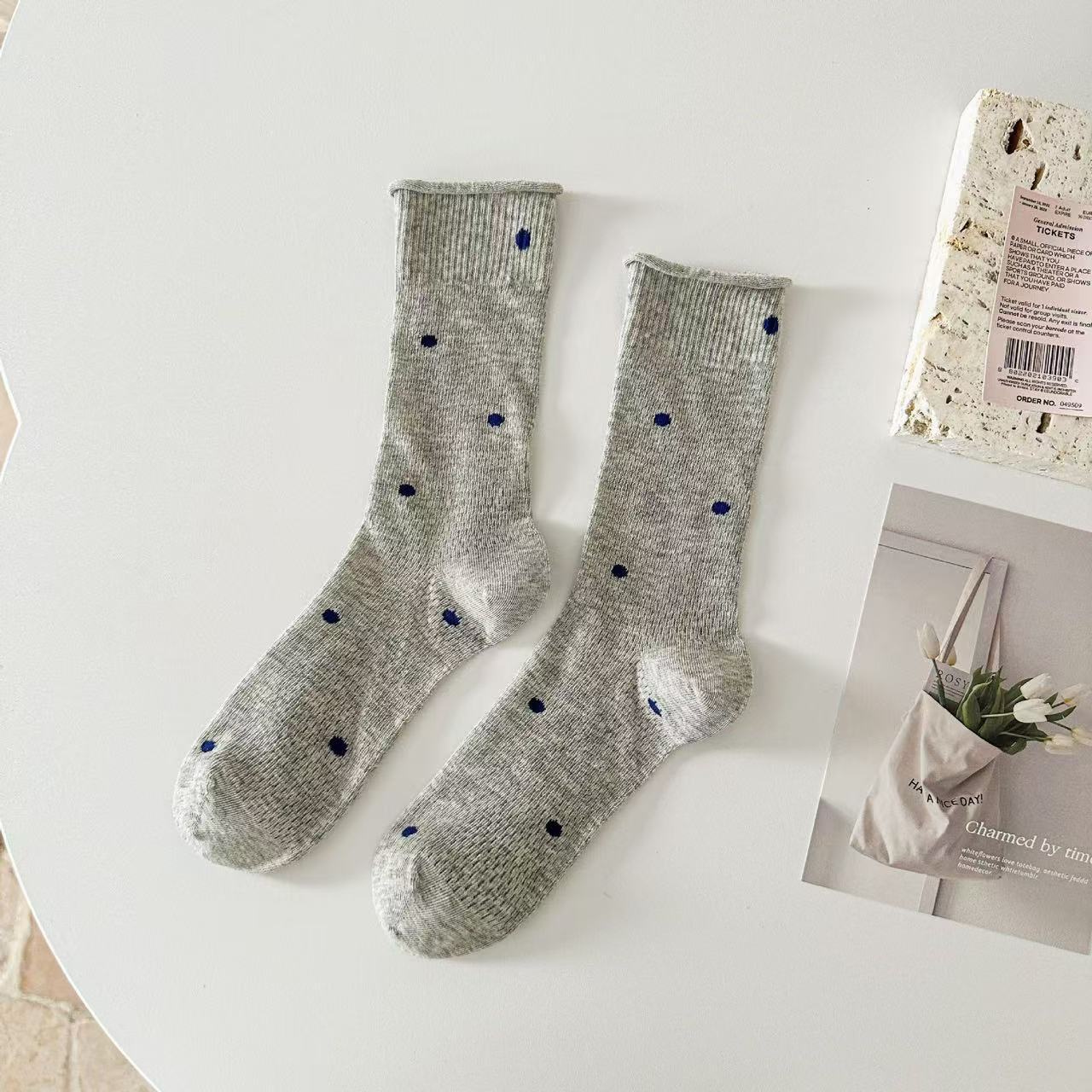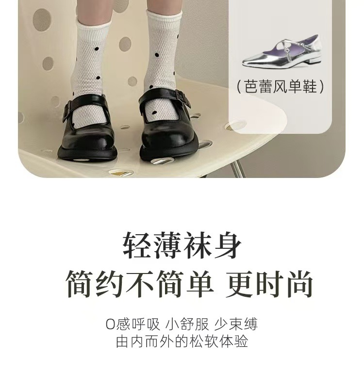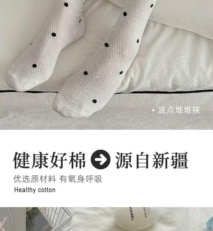 봄과 여름 Ins 스타일 달콤한 미드 튜브 여성용 양말 얇은 할로우 통기성 빗 코튼 커드 웨이브 도트 미드 튜브 스택 양말