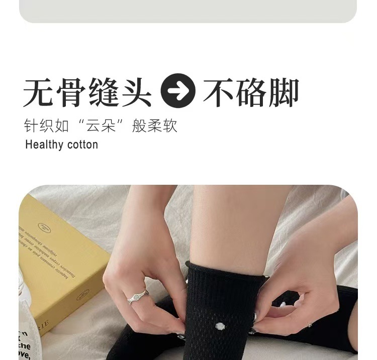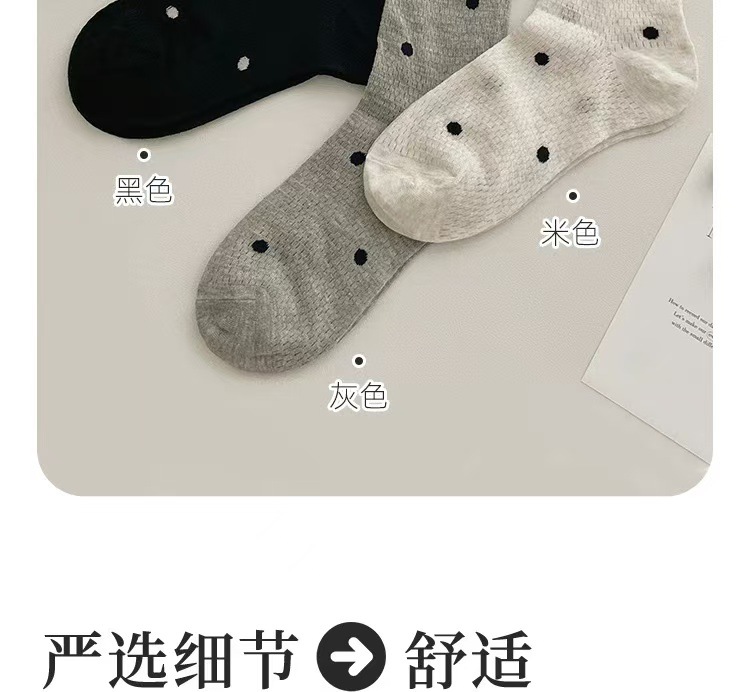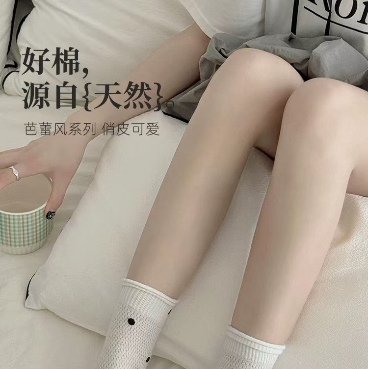 봄과 여름 Ins 스타일 달콤한 미드 튜브 여성용 양말 얇은 할로우 통기성 빗 코튼 커드 웨이브 도트 미드 튜브 스택 양말스토어 가기