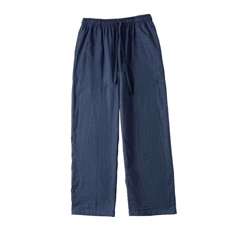 커플 잠옷 순면 가을 더블 레이어 원사 muji 잠옷 바지 남성과 여성 면화 홈 바지 산책 바지 도매